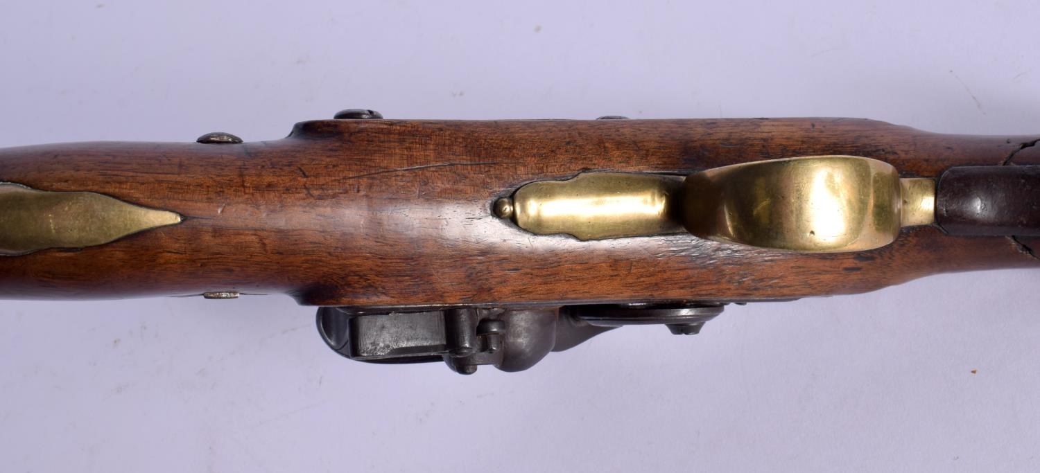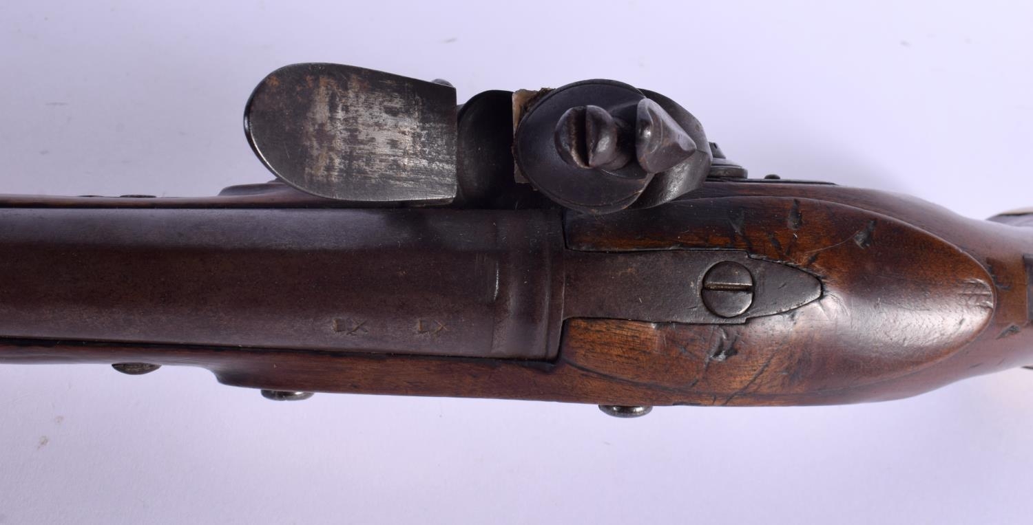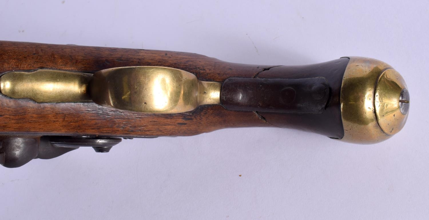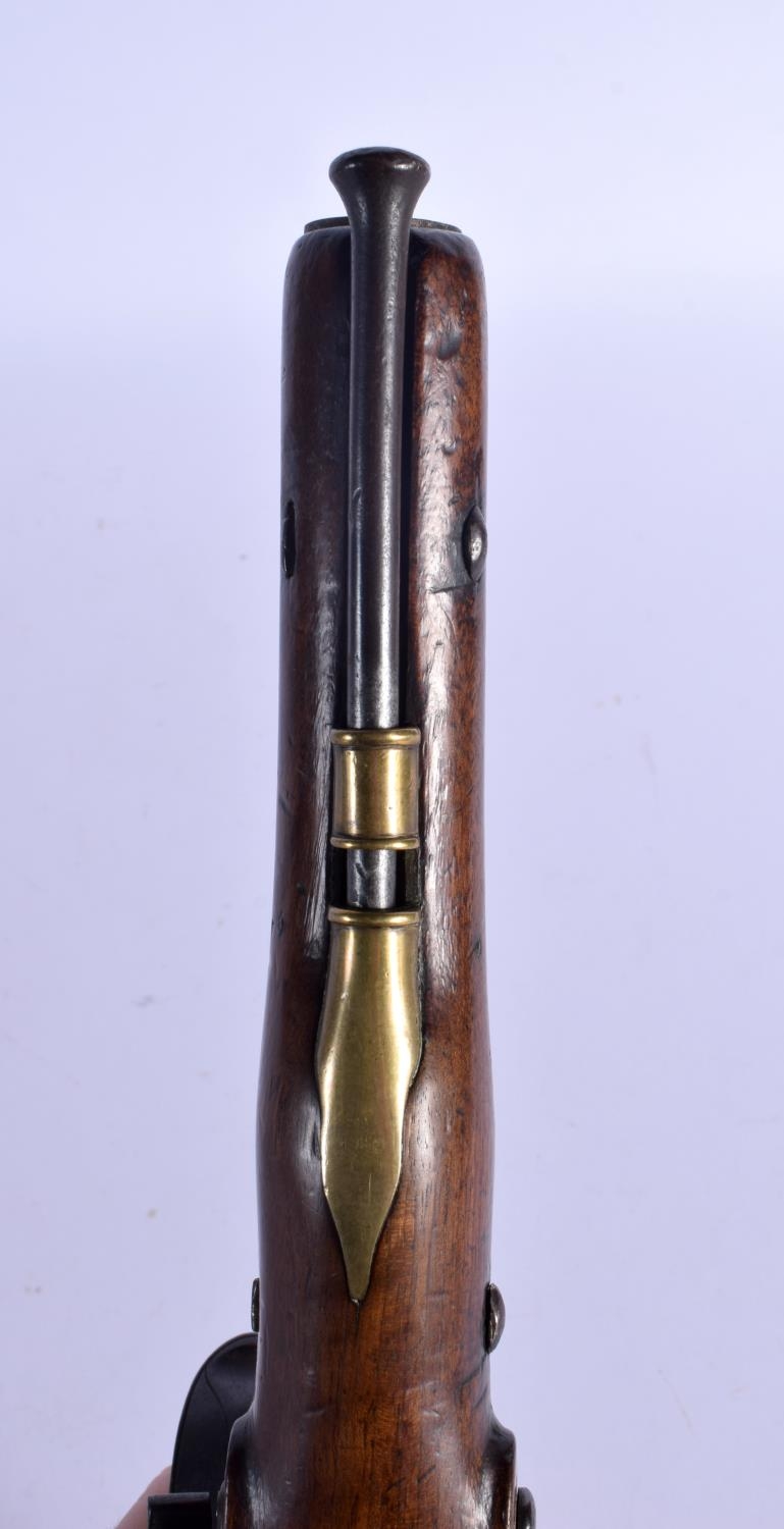AN ANTIQUE FLINT LOCK PISTOL by Spencer. 38 cm wide.