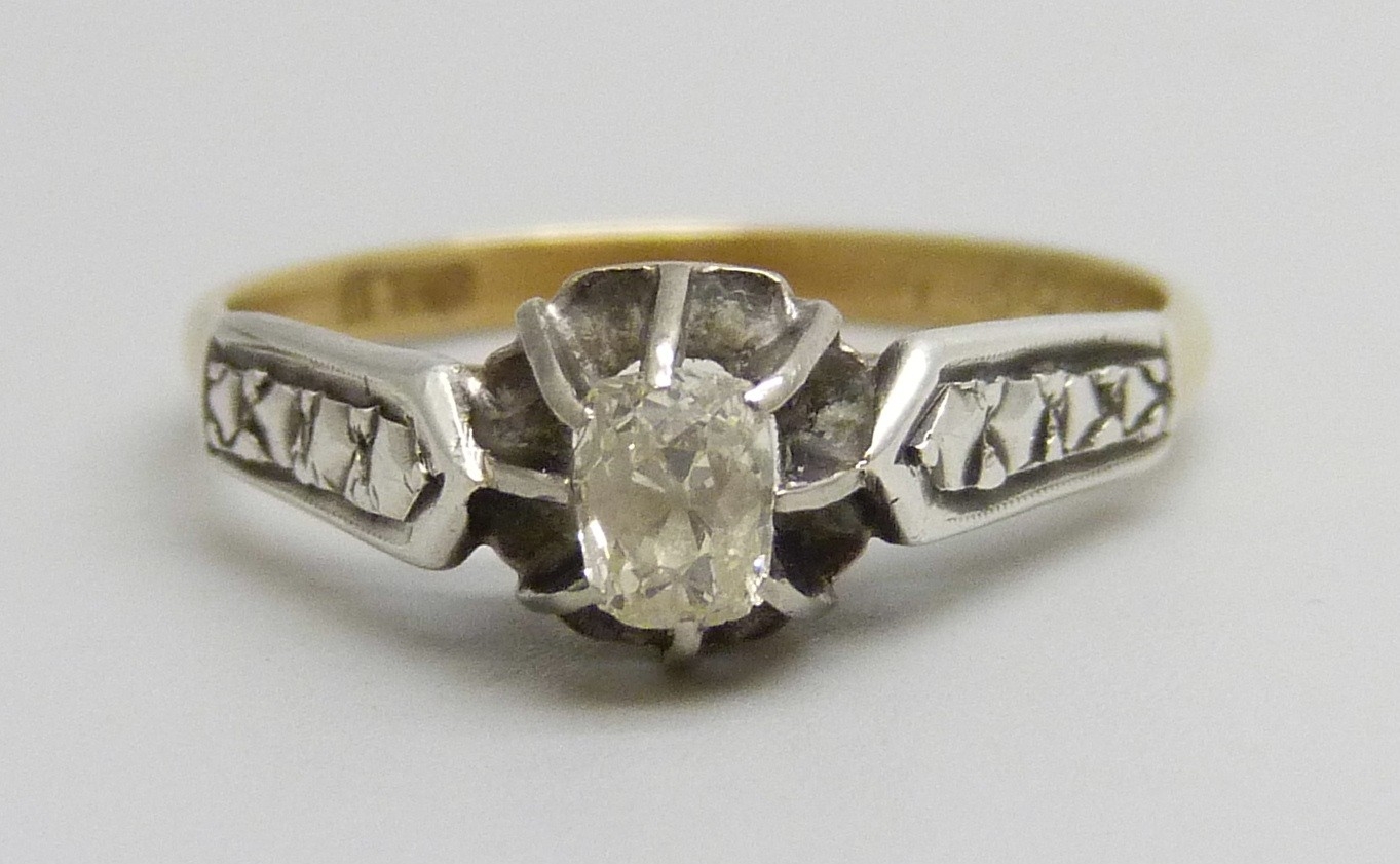 An 18ct gold diamond solitaire ring, 2.4g, N/O