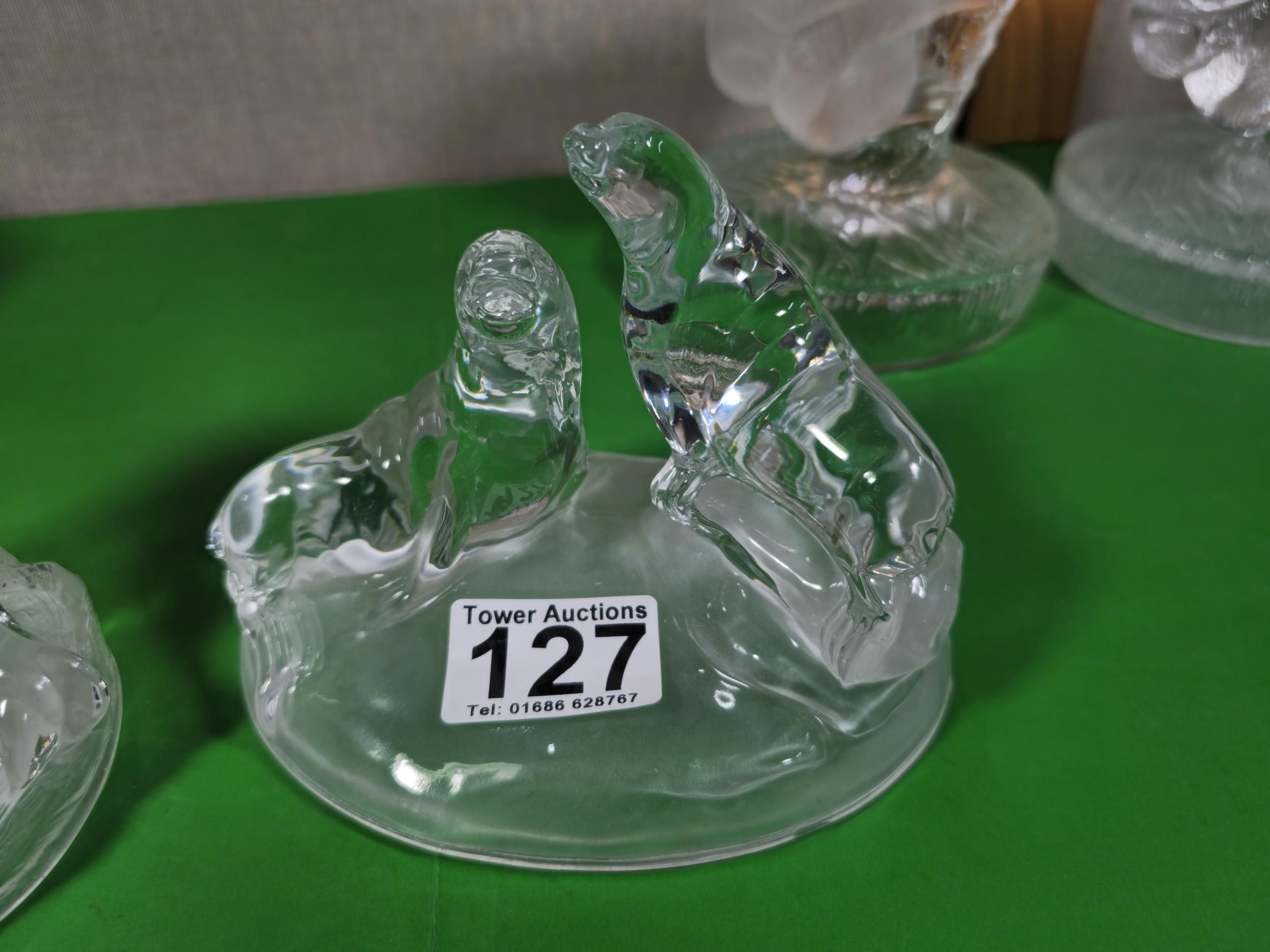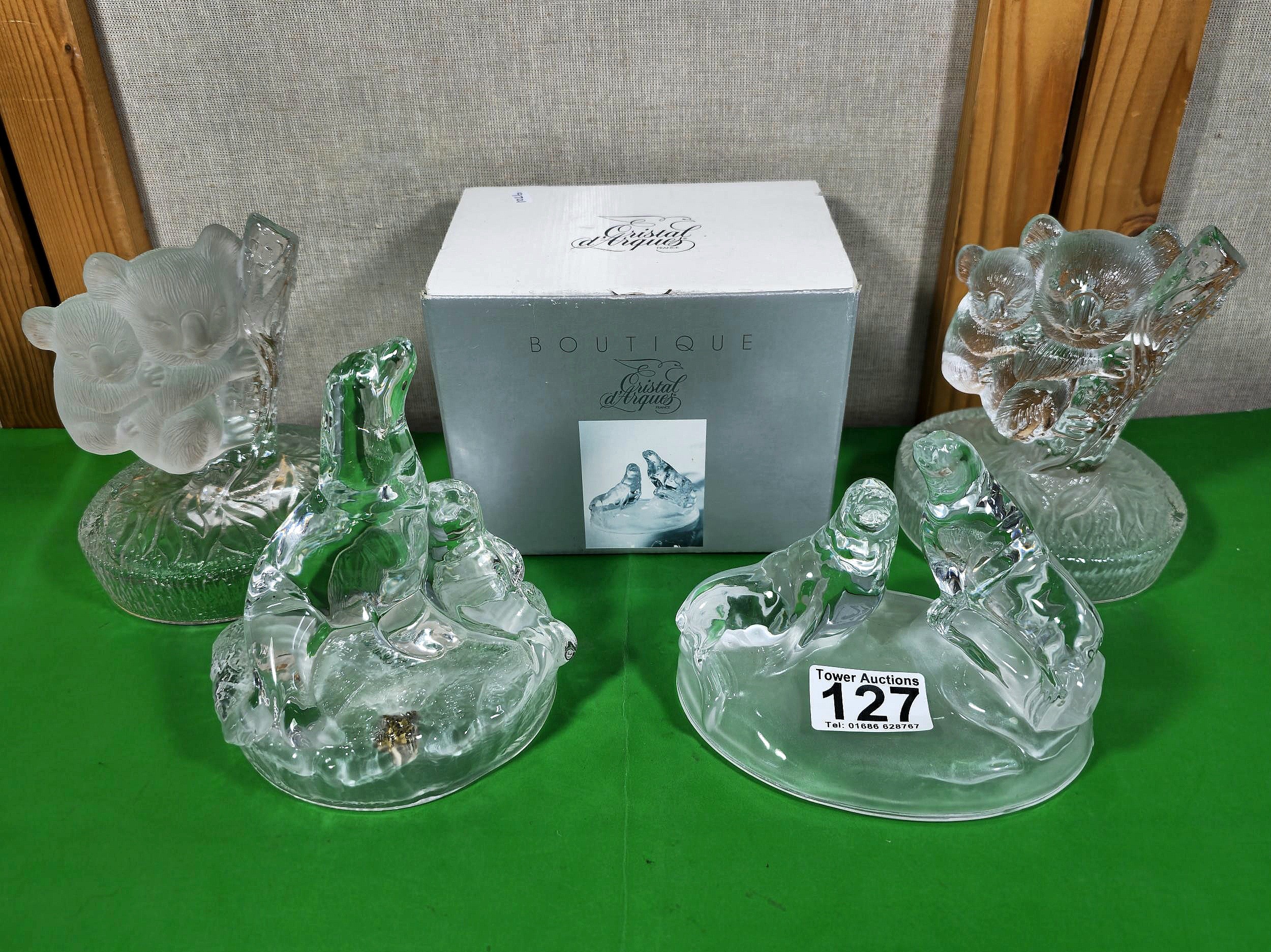 A collection of 4x Cristal D' Arques France glass animal figures to include 2x sea lions and 2x koalas one of which is opaque, all in good order one of the sea lions comes with its box, the tallest piece stands at 15cm high