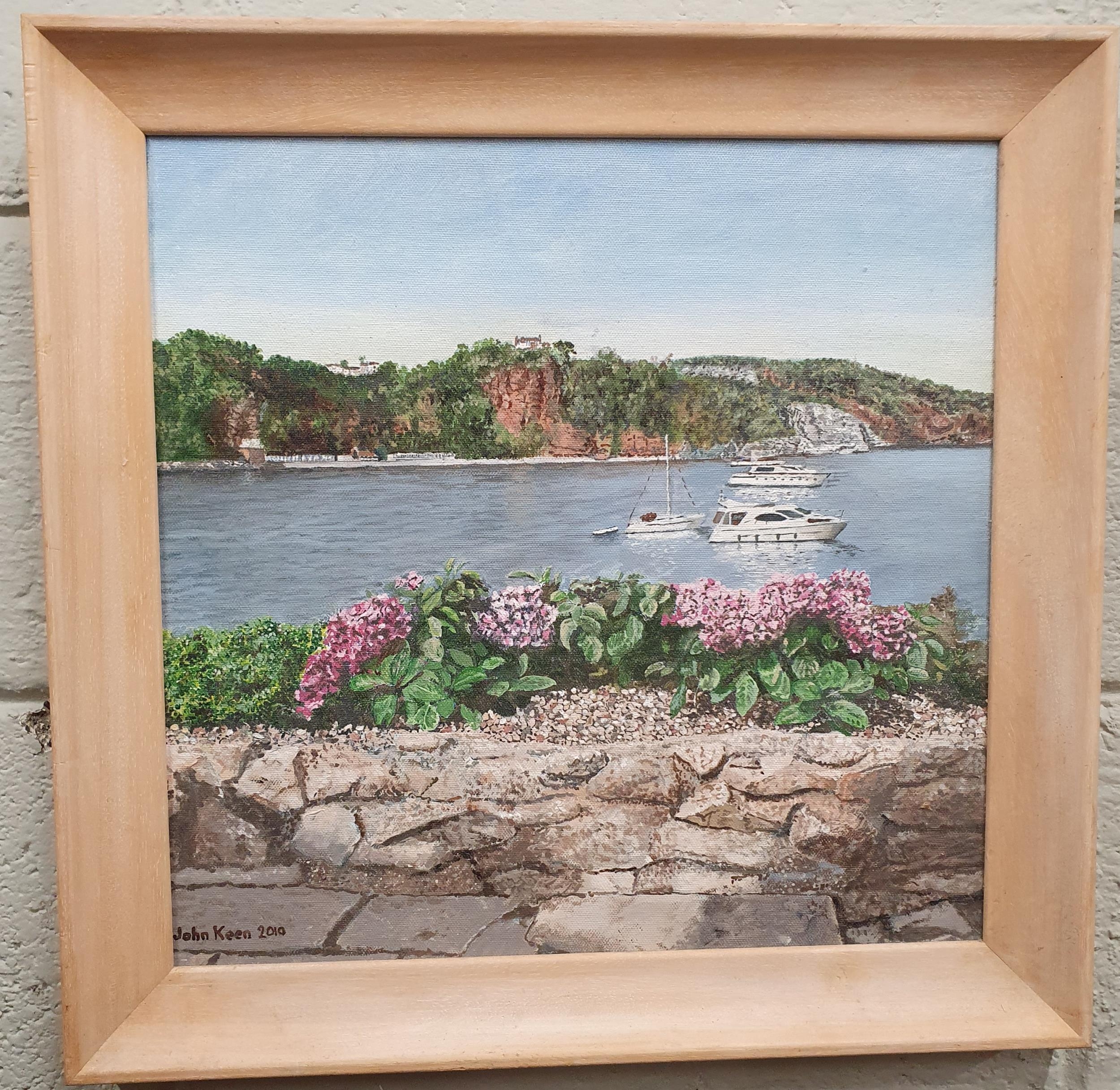 A 20th Century Oil On Board of a lake scene with yachts by John Kean signed LL.