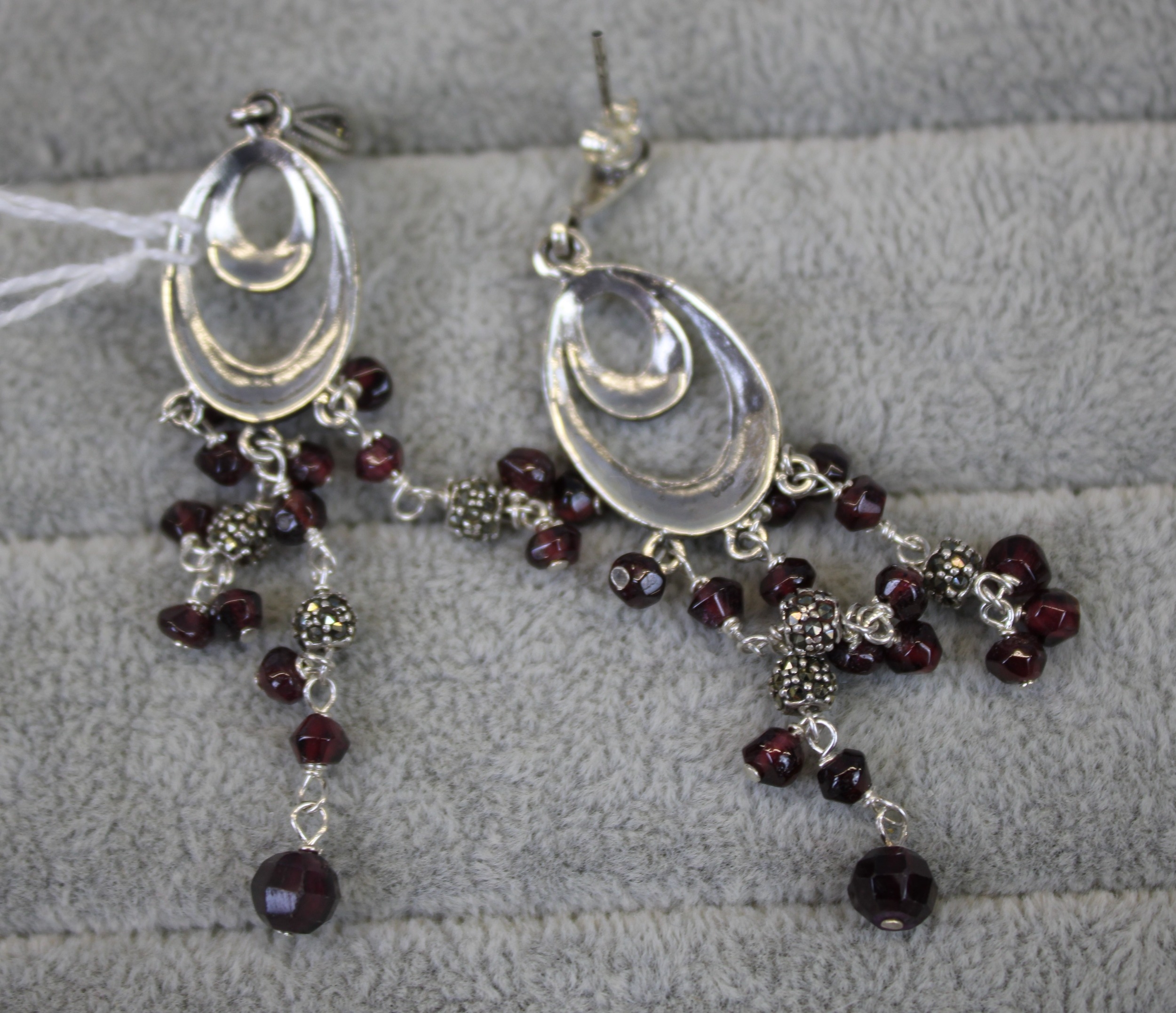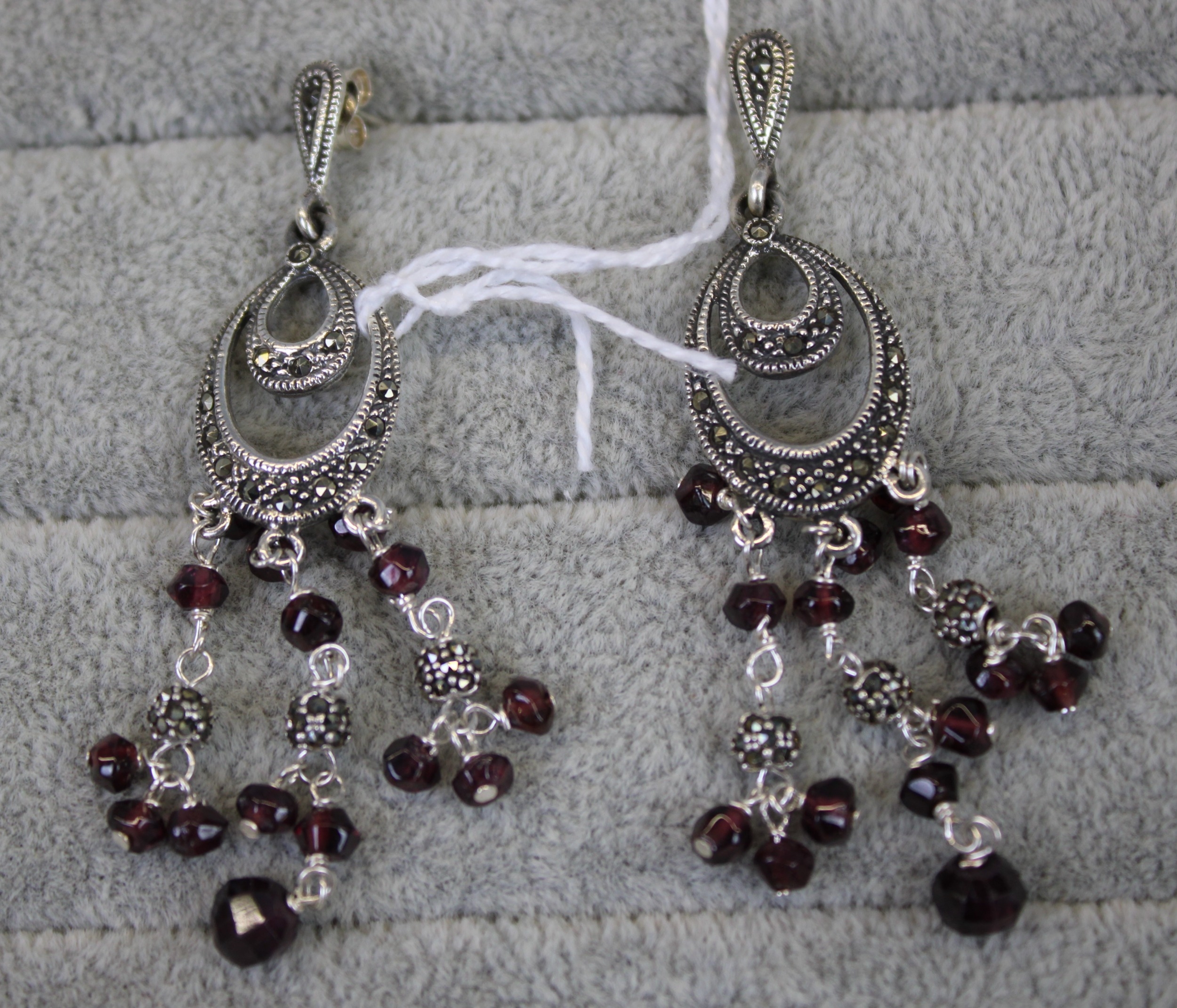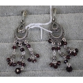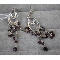 Silver Marcasite & Purple Beaded Drop Earrings