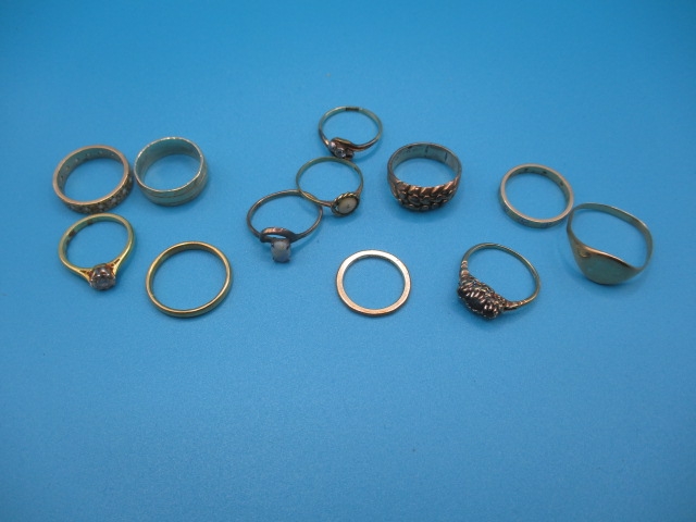 A parcel of gold and yellow metal rings, various types, some with damages, approx gross parcel weight 33.9g