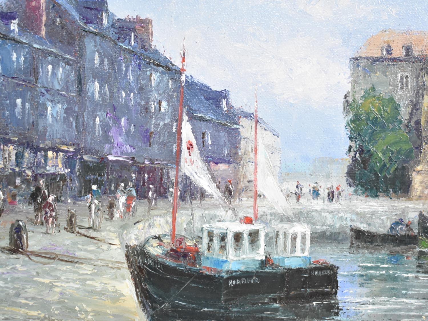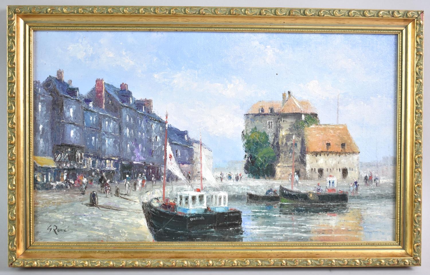 A Framed Oil on Board, "Honfleur", by J Roux, 40x23cms