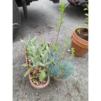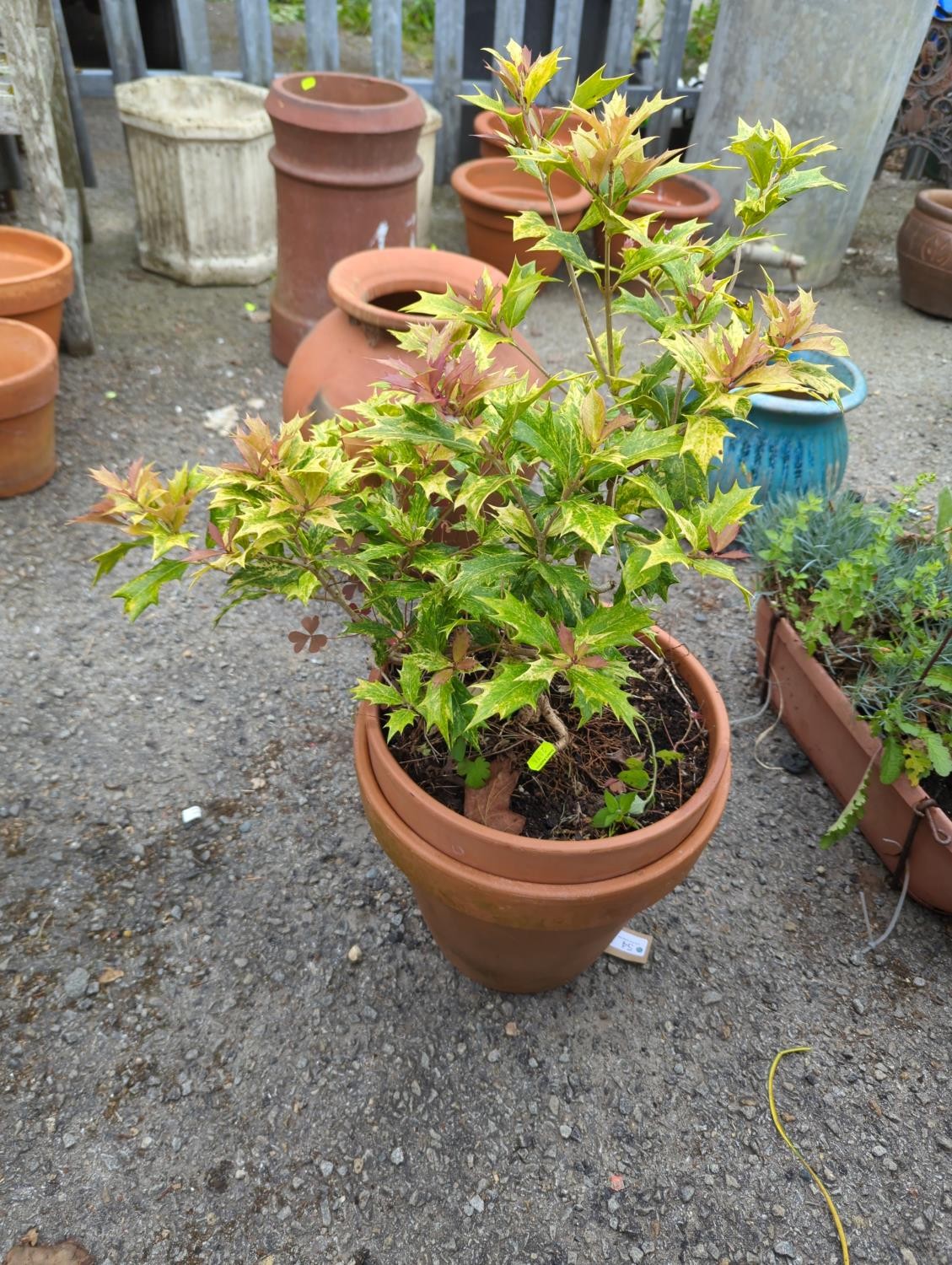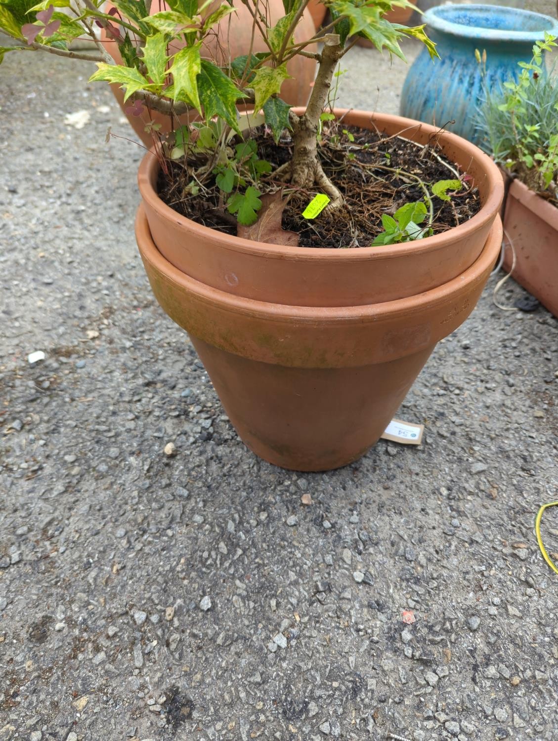 2 x terracotta pots, currently stuck together! 1 with holly contents. Overall pot height (currently) 31cm.