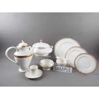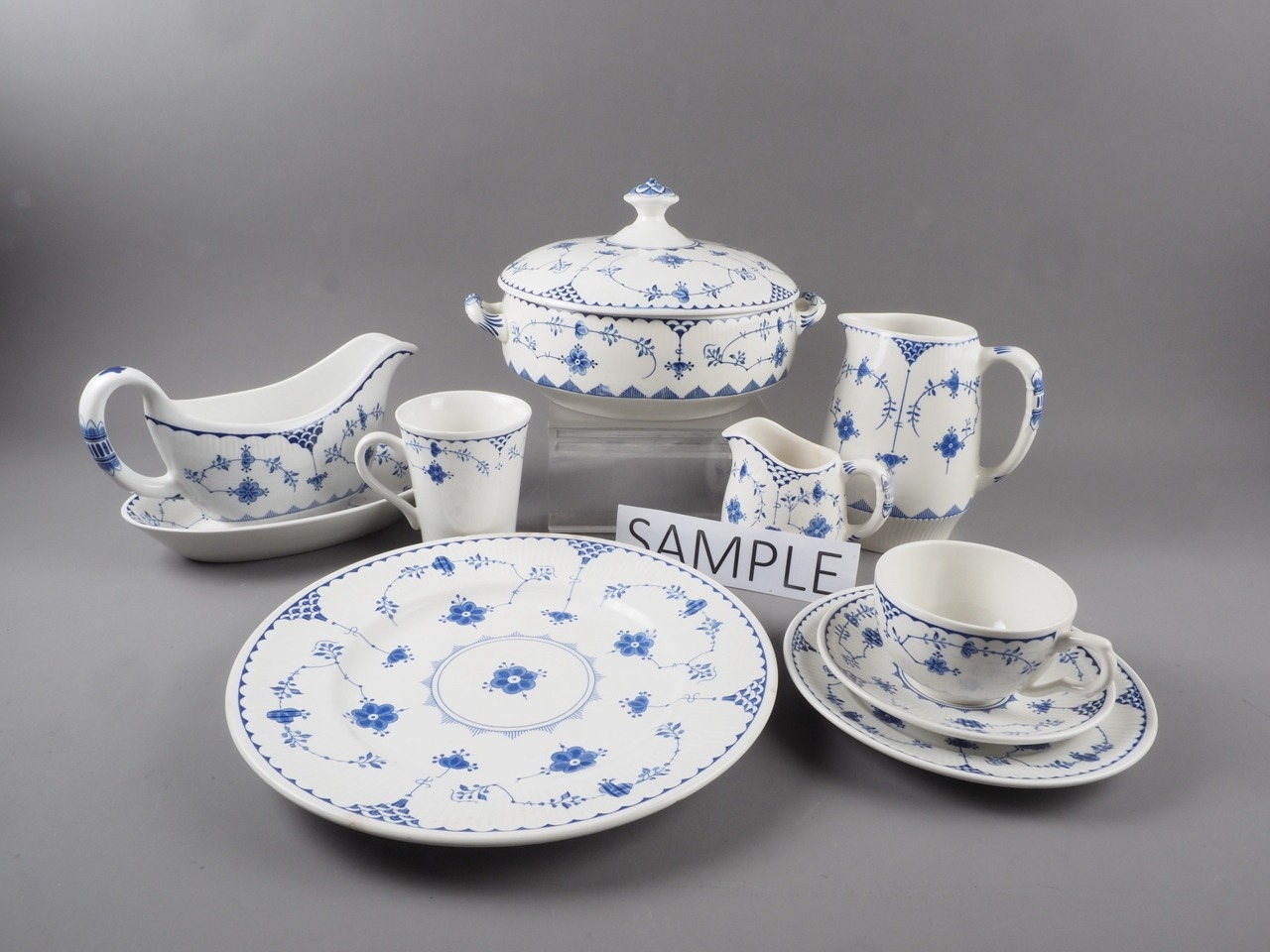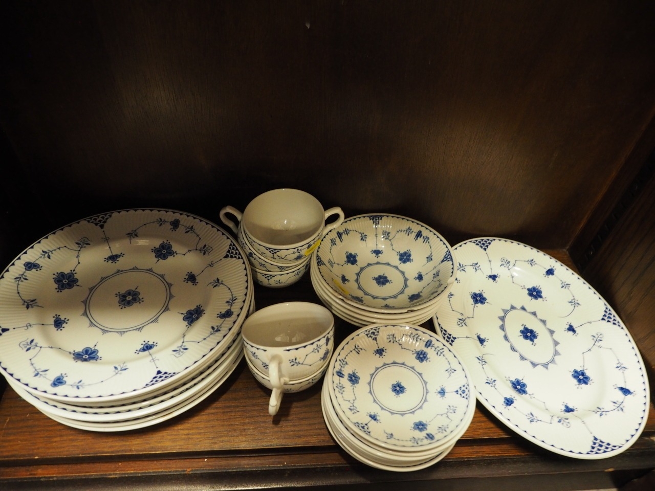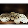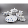 A white and blue glazed combination service comprising of Furnivals Denmark, Franciscan Denmark and Masons Denmark (some damages)