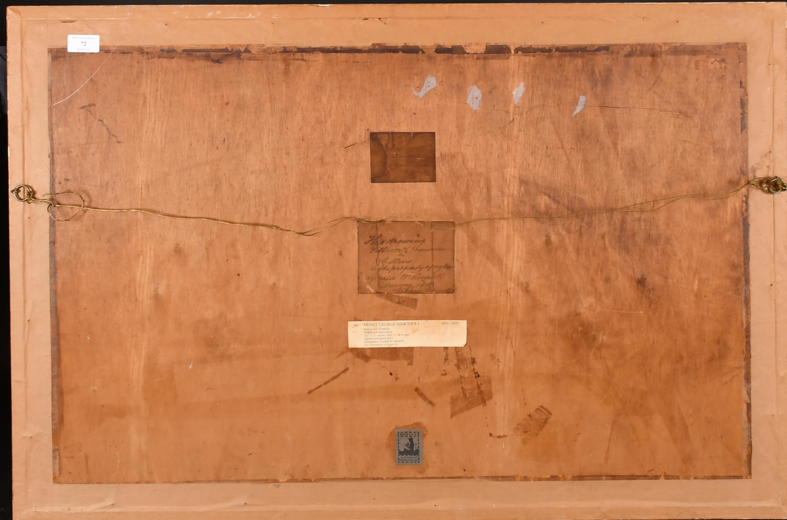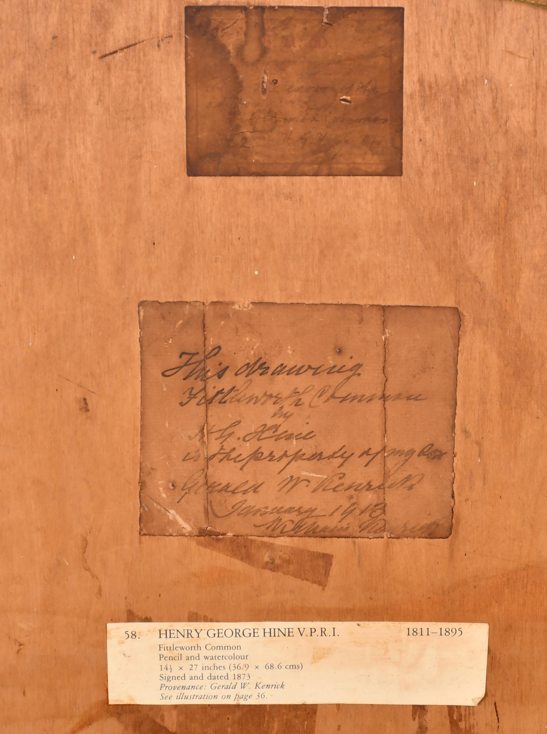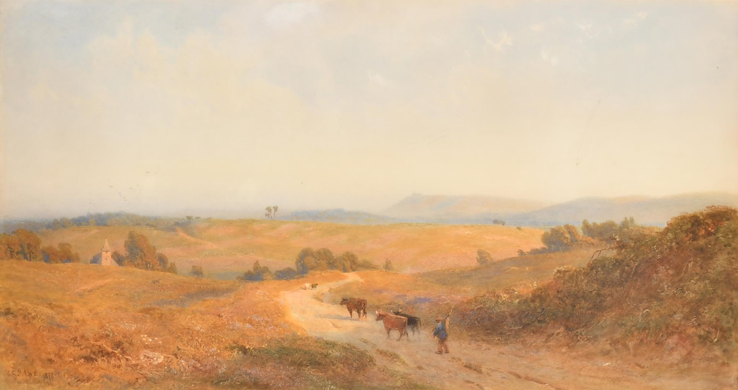 Henry George Hine (1811-1895) British. "Fittleworth Common", Watercolour, Signed and dated 1873, and inscribed on labels verso, 14.5" x 27" (36.9 x 68.6cm). Provenance: Gerald W. Kenrick
