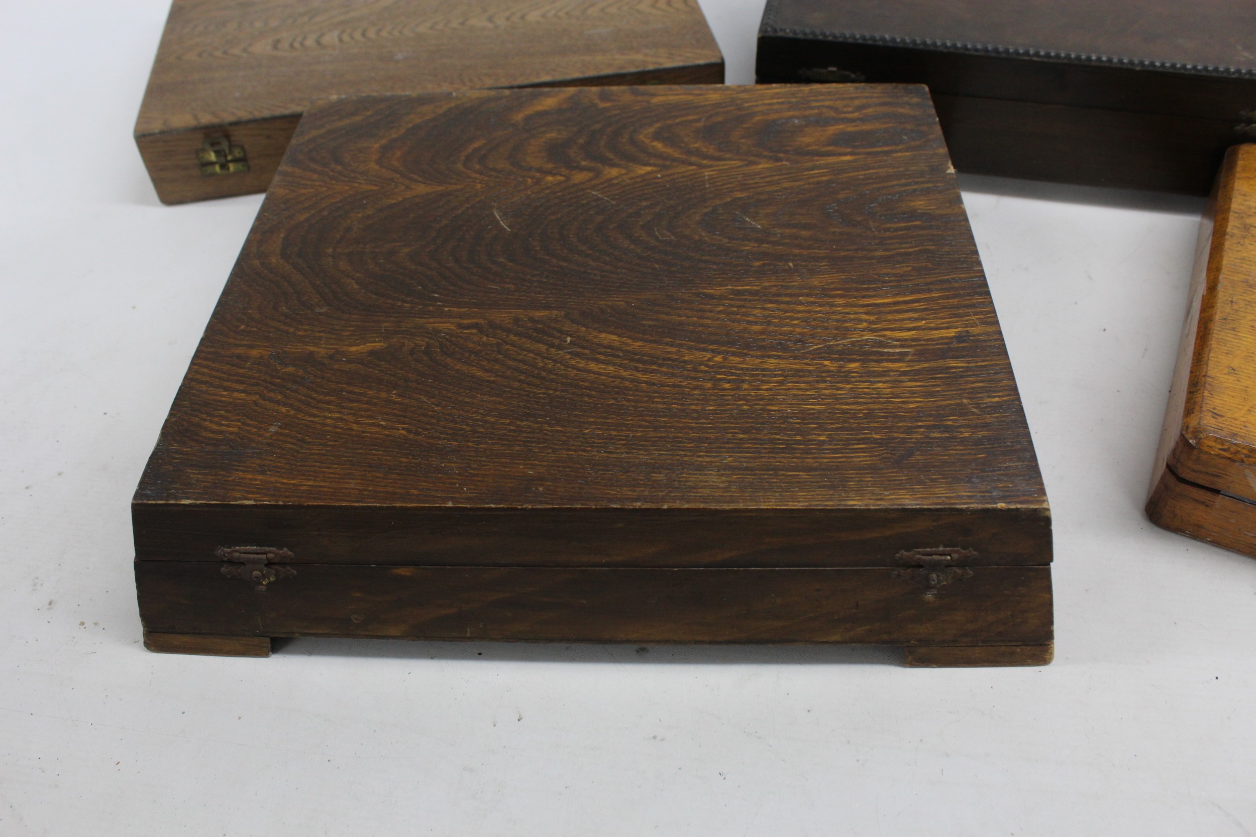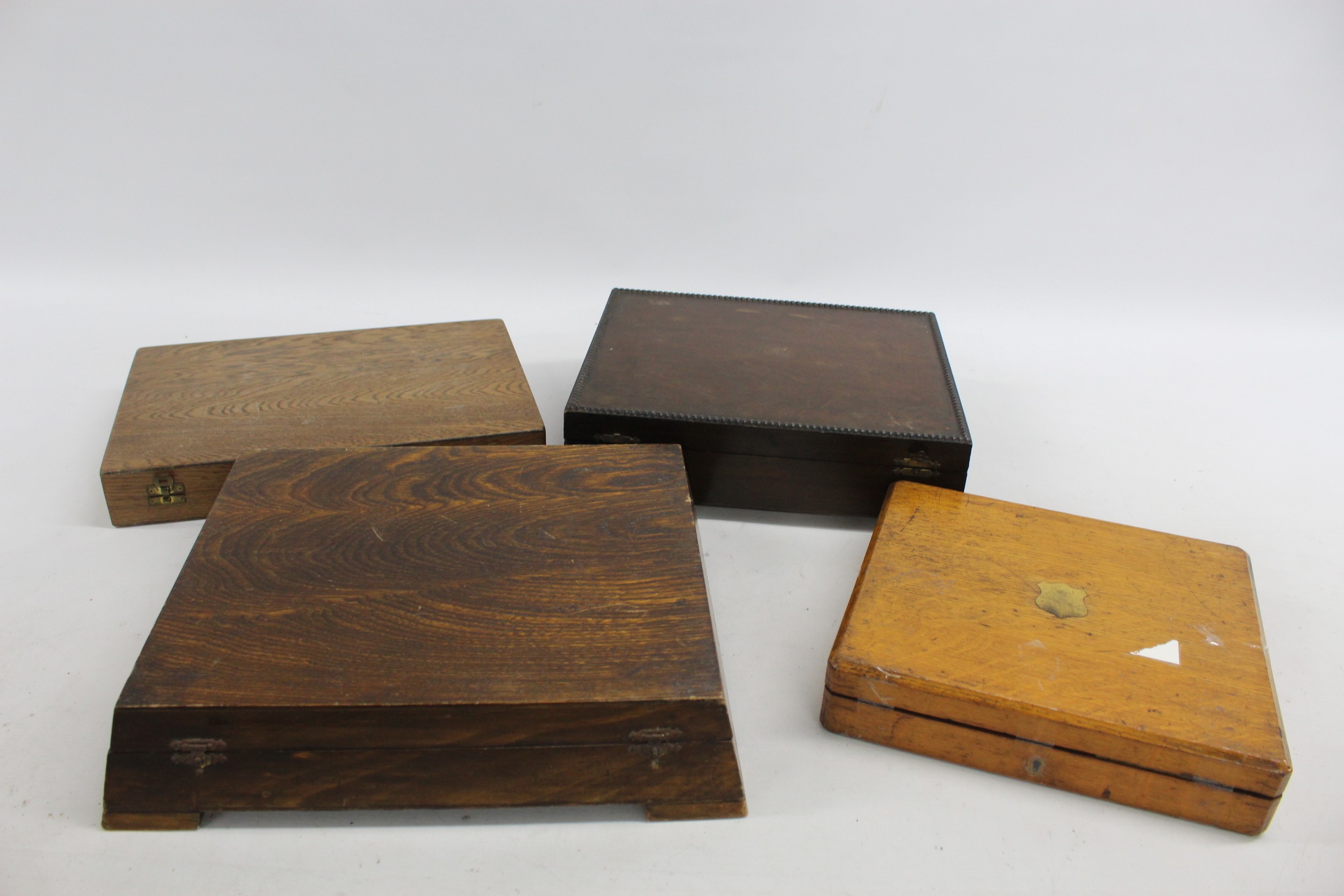 4 x Assorted Vintage Wooden CUTLERY / CANTEEN Boxes Inc Mappin & Webb, Etc
