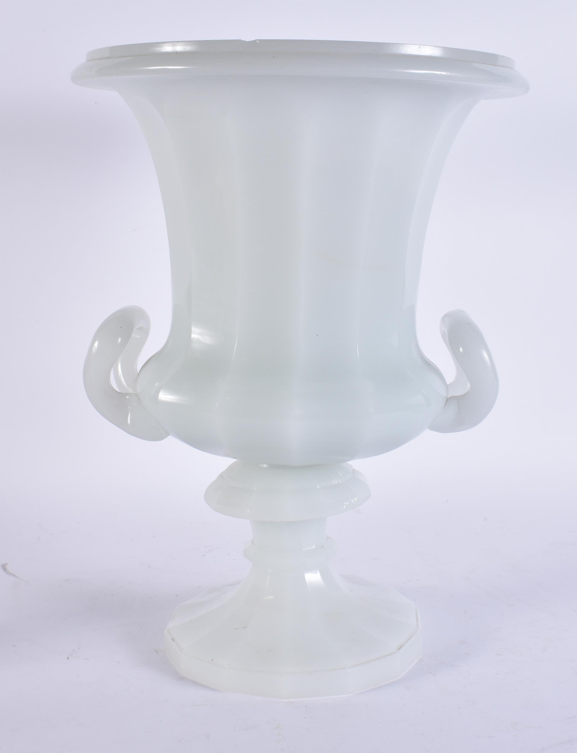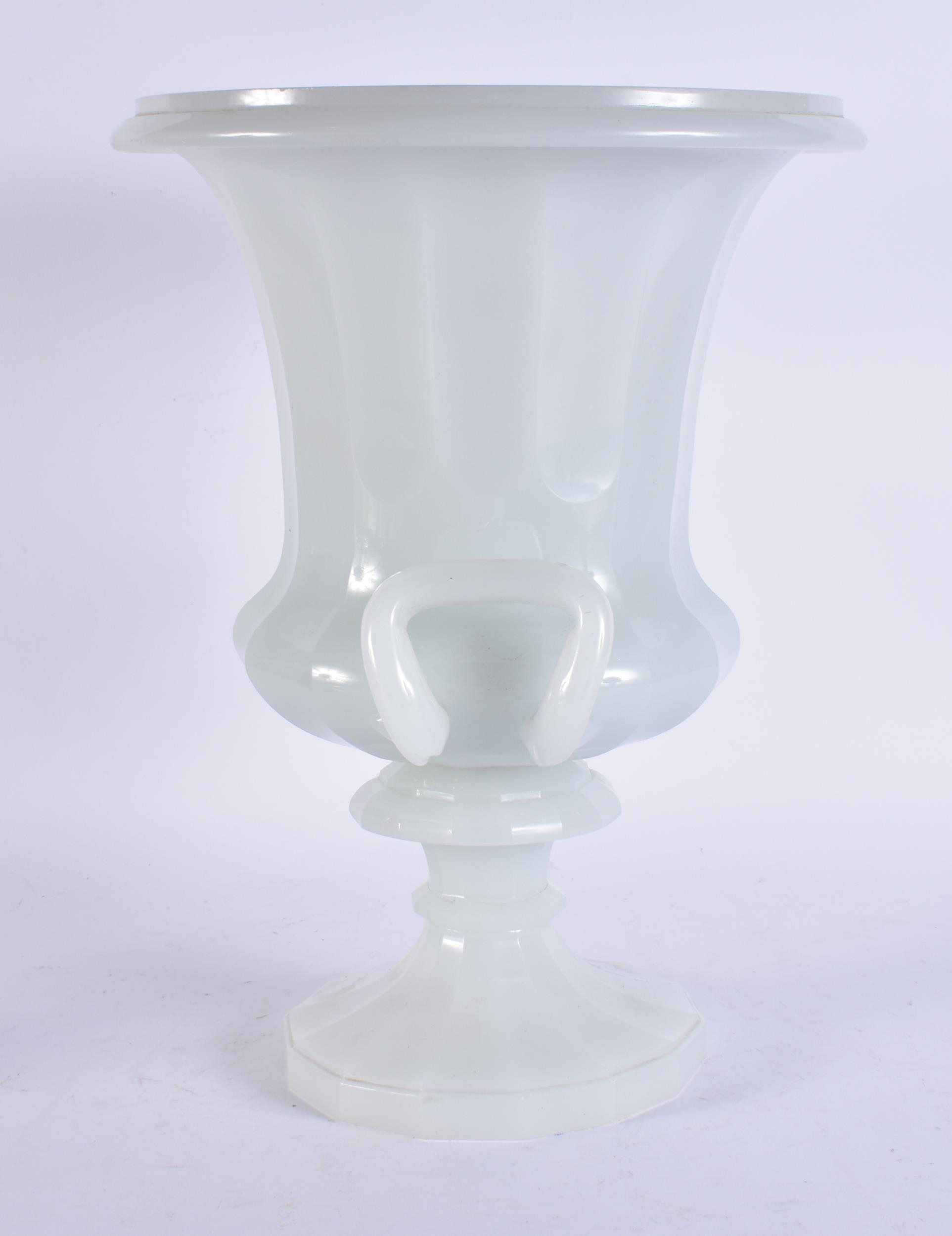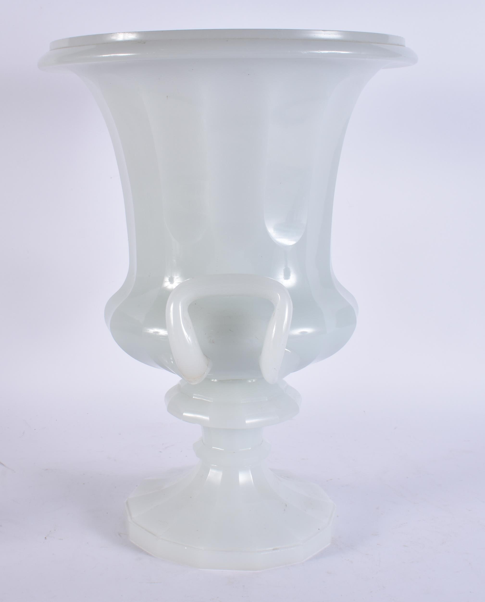 A RARE LARGE 19TH CENTURY OPALINE GLASS CAMPAGNA URN of facetted form. 37 cm x 25 cm.