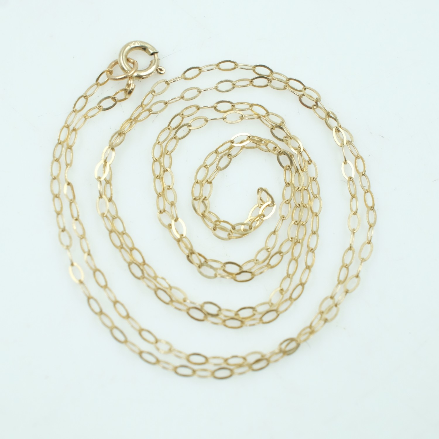 9ct gold very fine link chain necklace, L: 40 cm, 0.5g. UK P&P Group 0 (£7+VAT for the first lot and £1+VAT for subsequent lots)