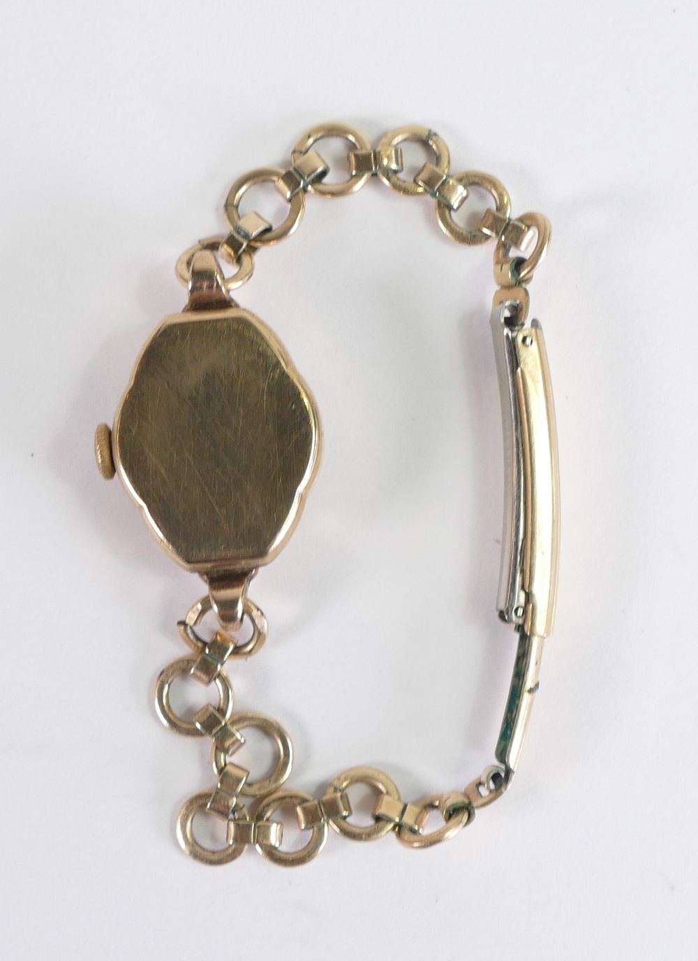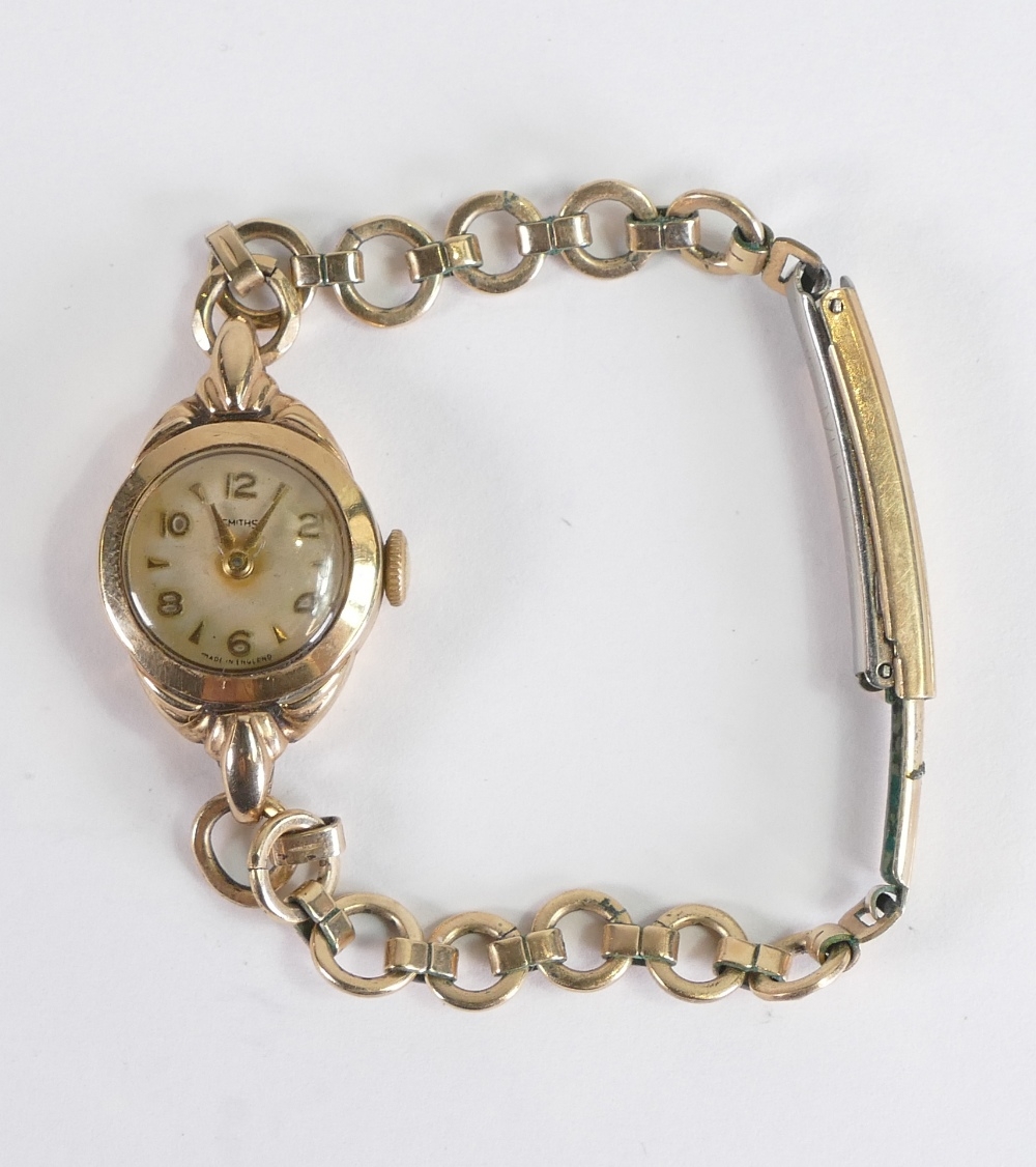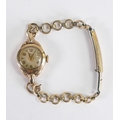 Ladies 9ct gold wrist watch with gold plated bracelet.