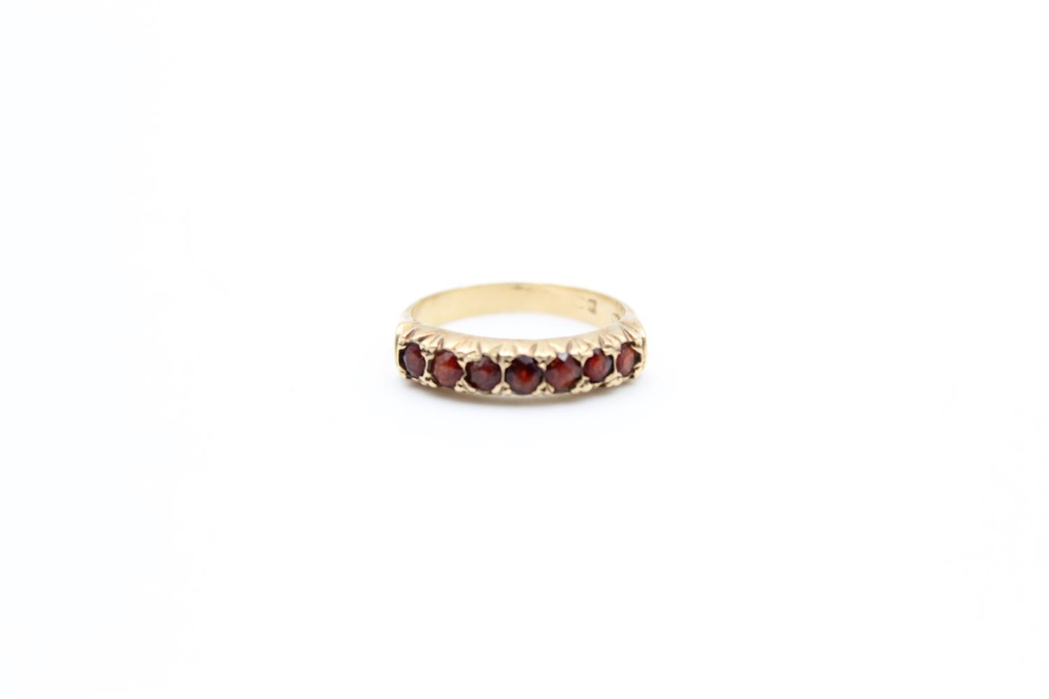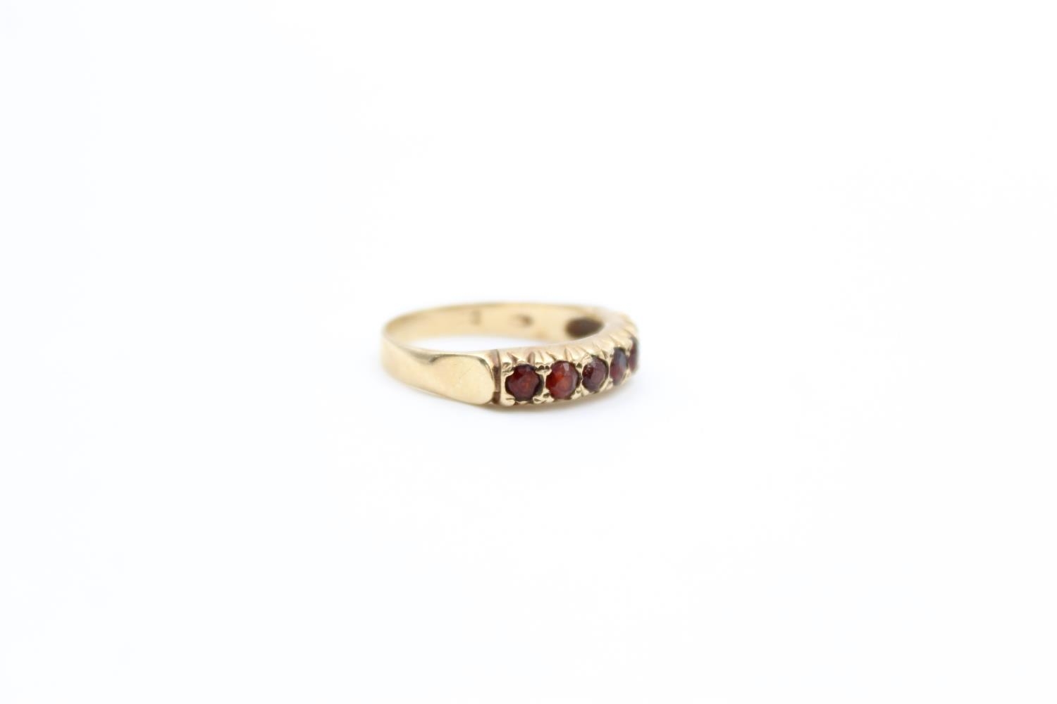A 9ct gold garnet set half eternity ring, size O - approx. gross weight 2.7 grams