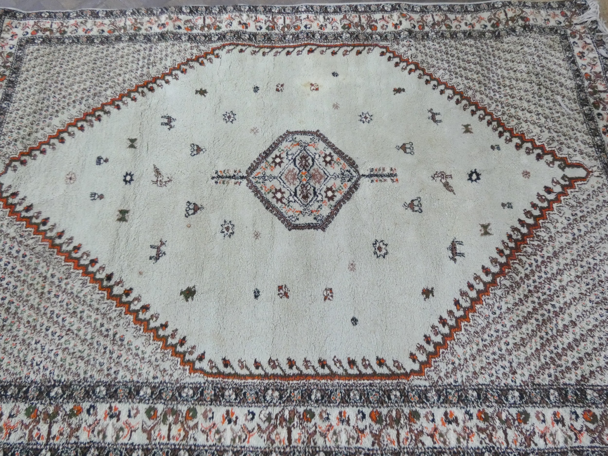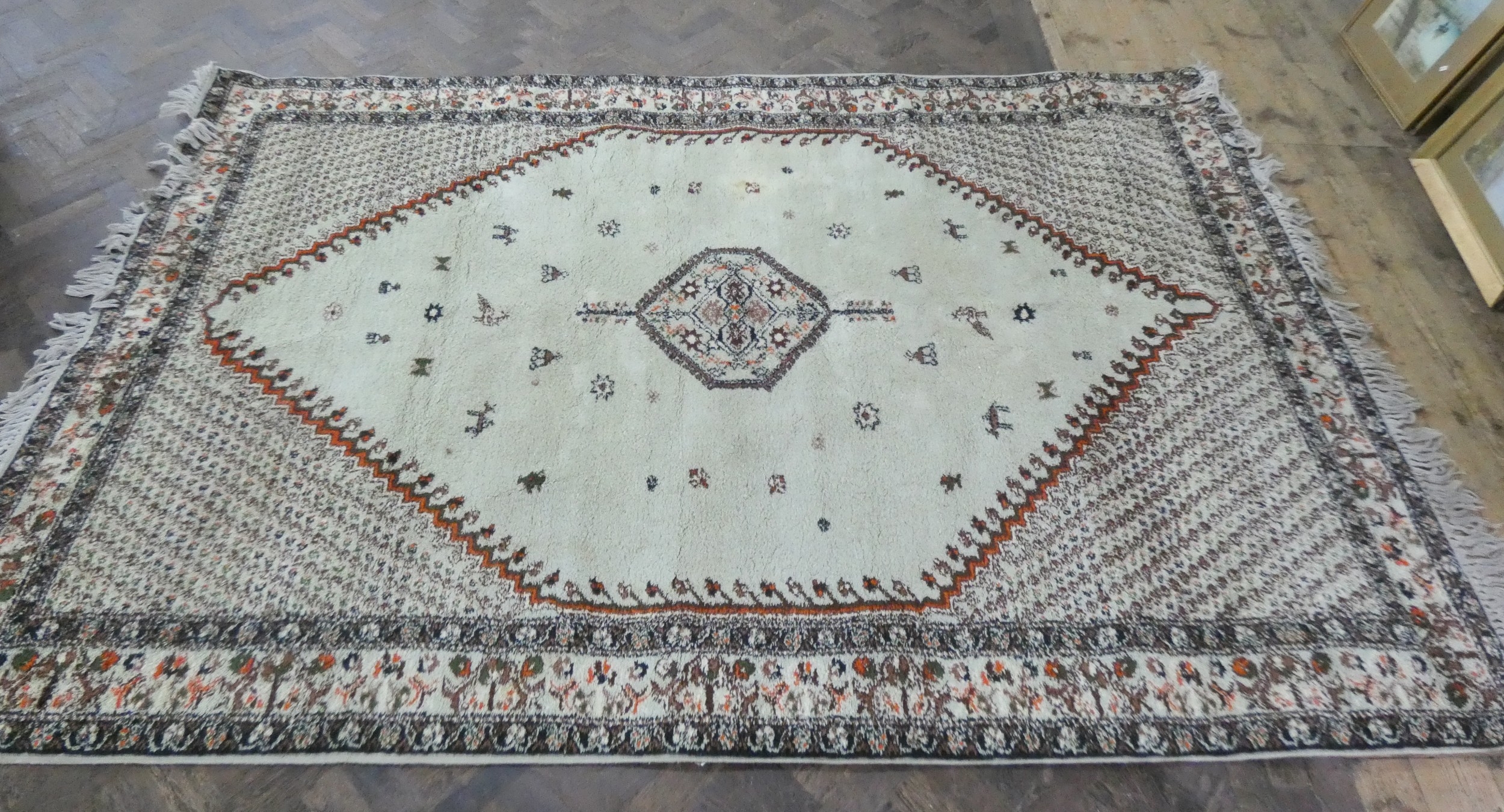 A Moroccan figured wool pile rug depicting Mohammad's rise into heaven, 9'8" x 6'8"