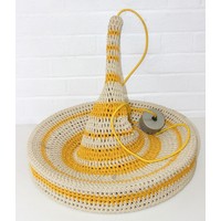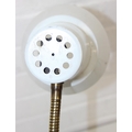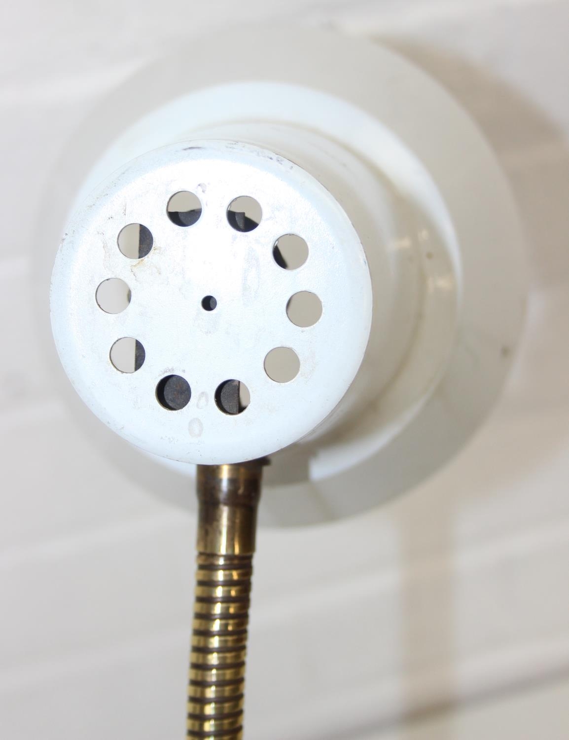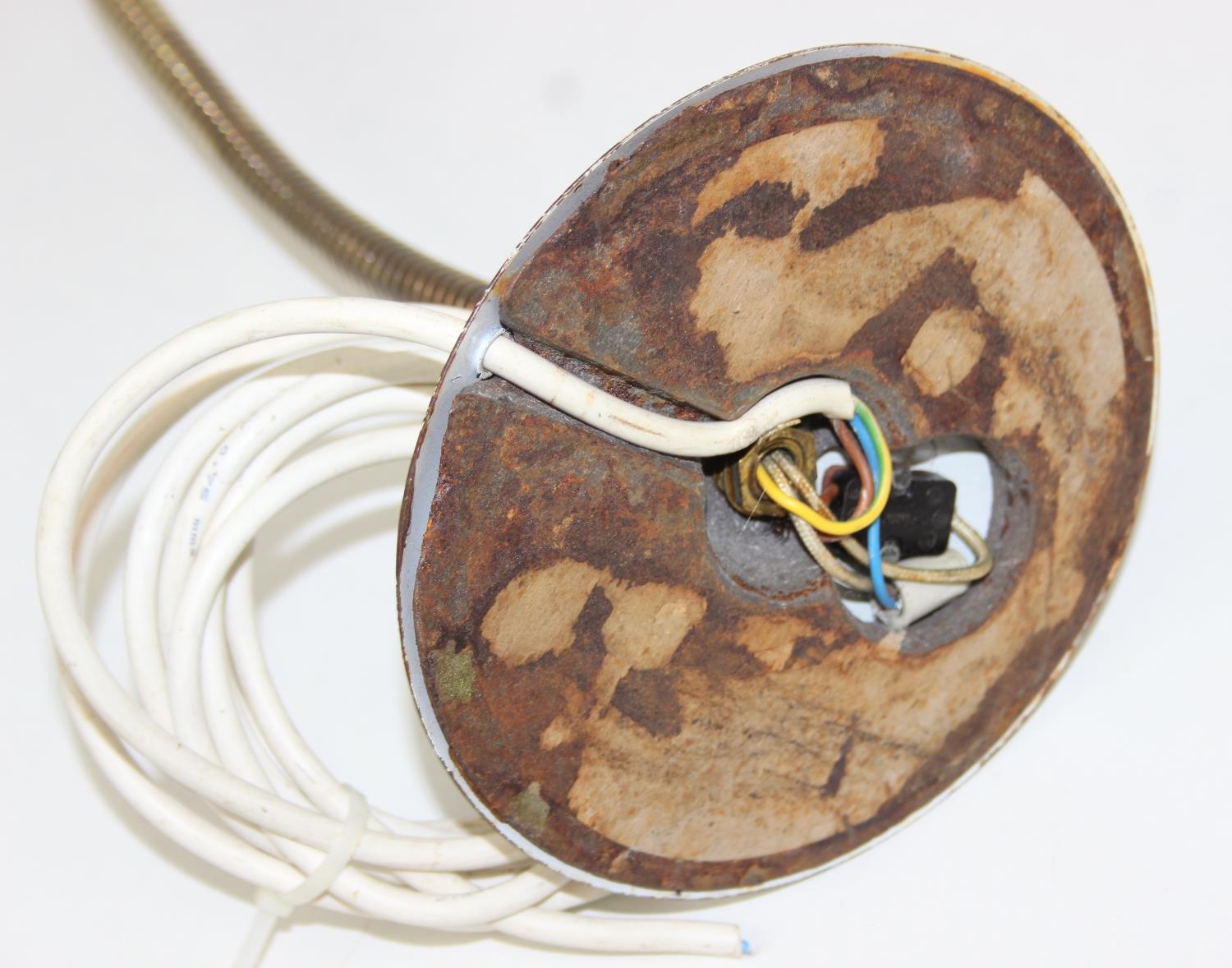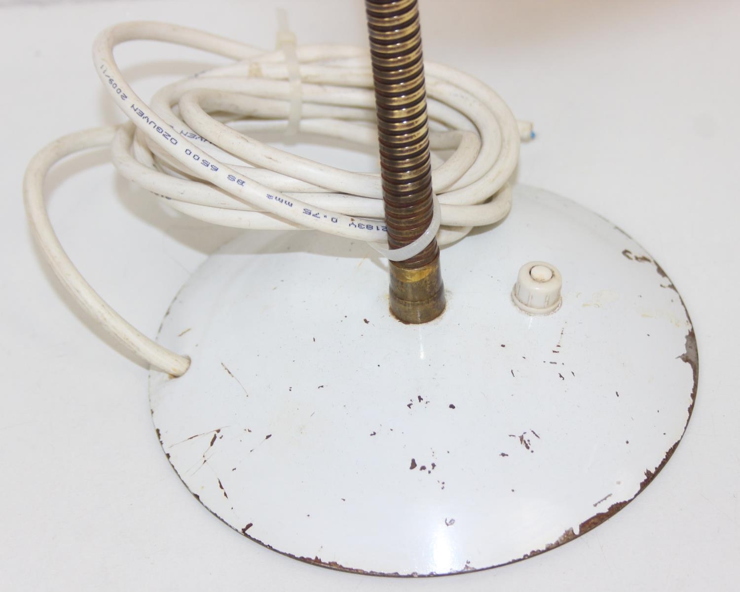 A retro desk lamp with white metal shade and adjustable swan neck support, mid-century, 52cm tall in photo