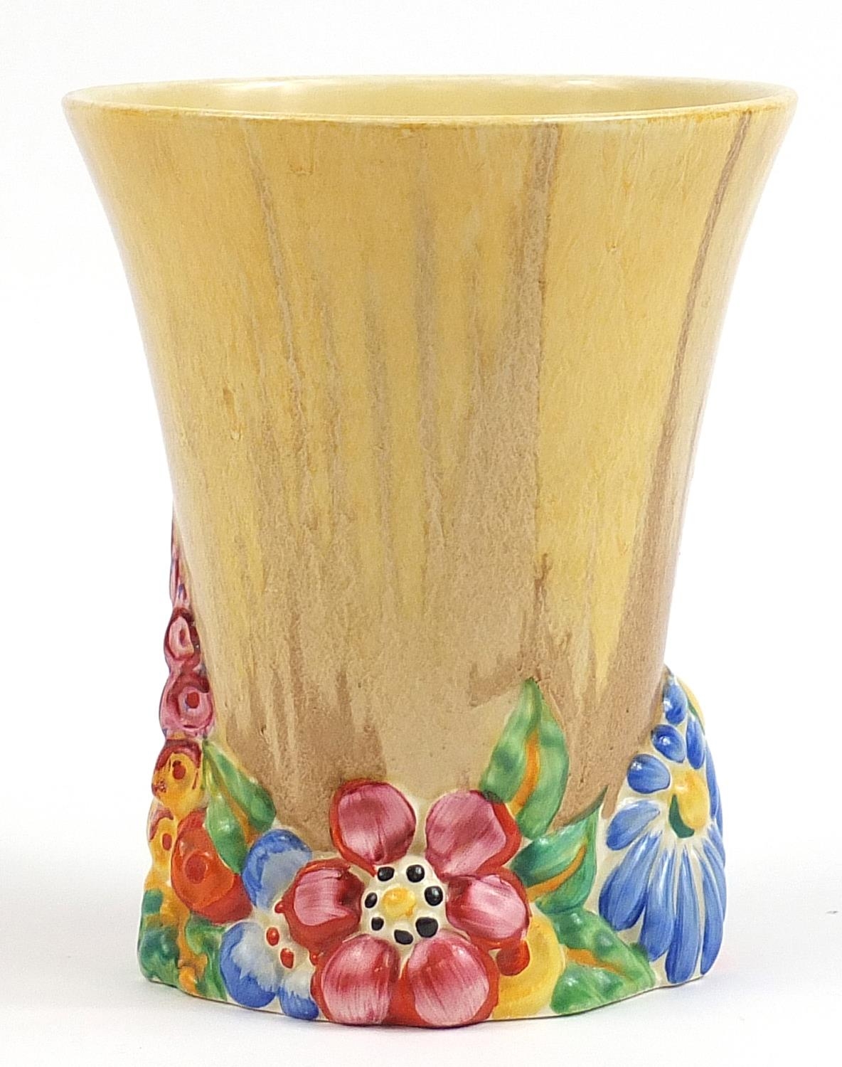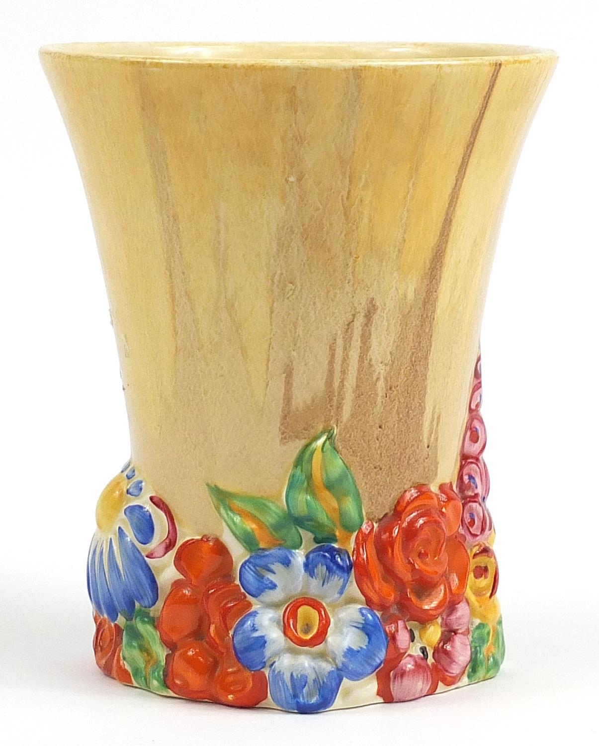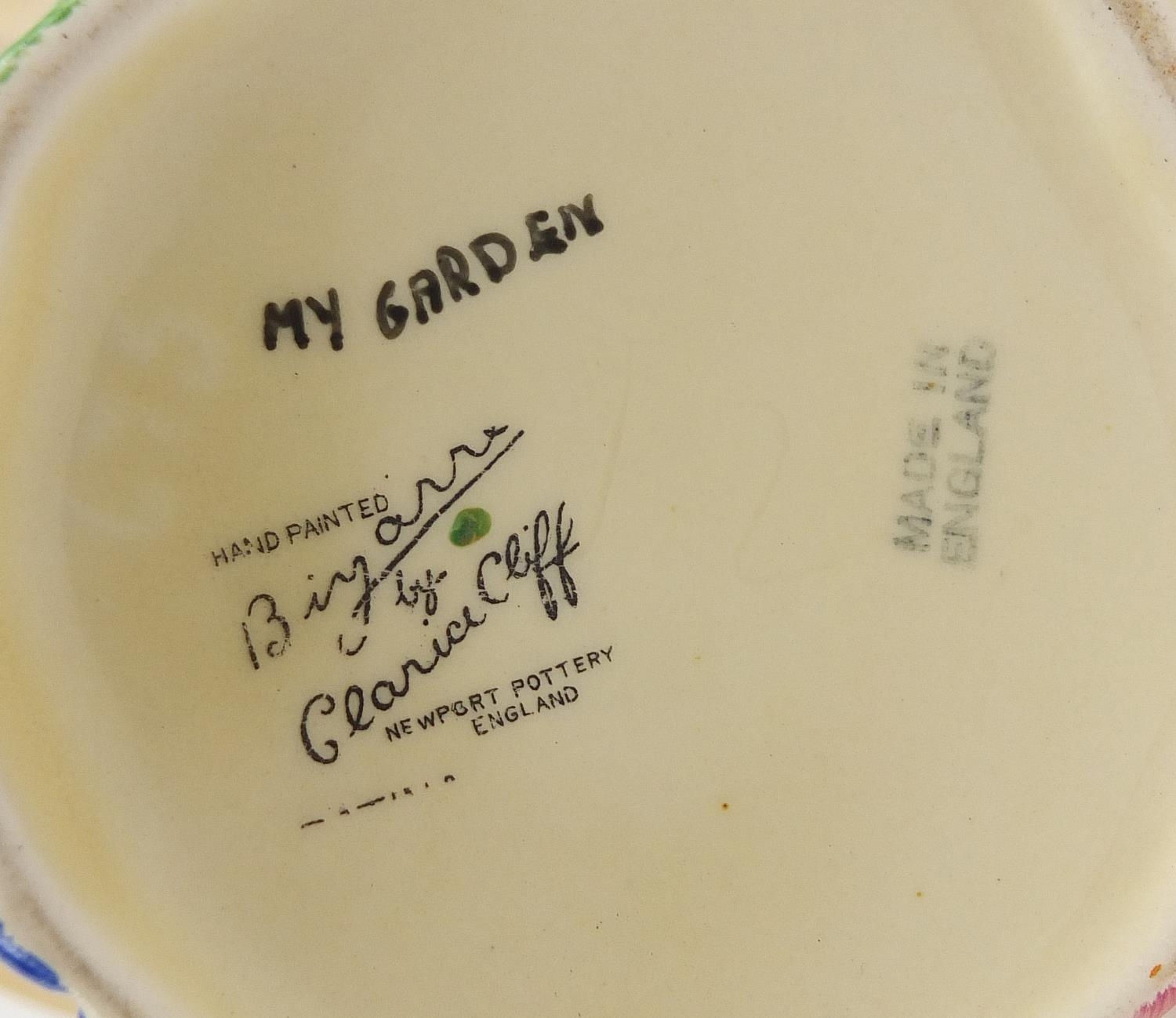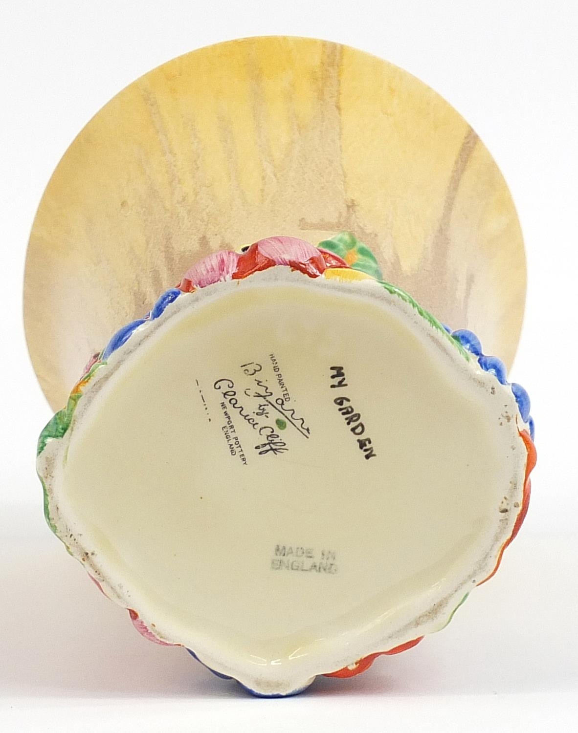 Clarice Cliff Bizarre vase hand painted in the My Garden pattern, 17.5cm high