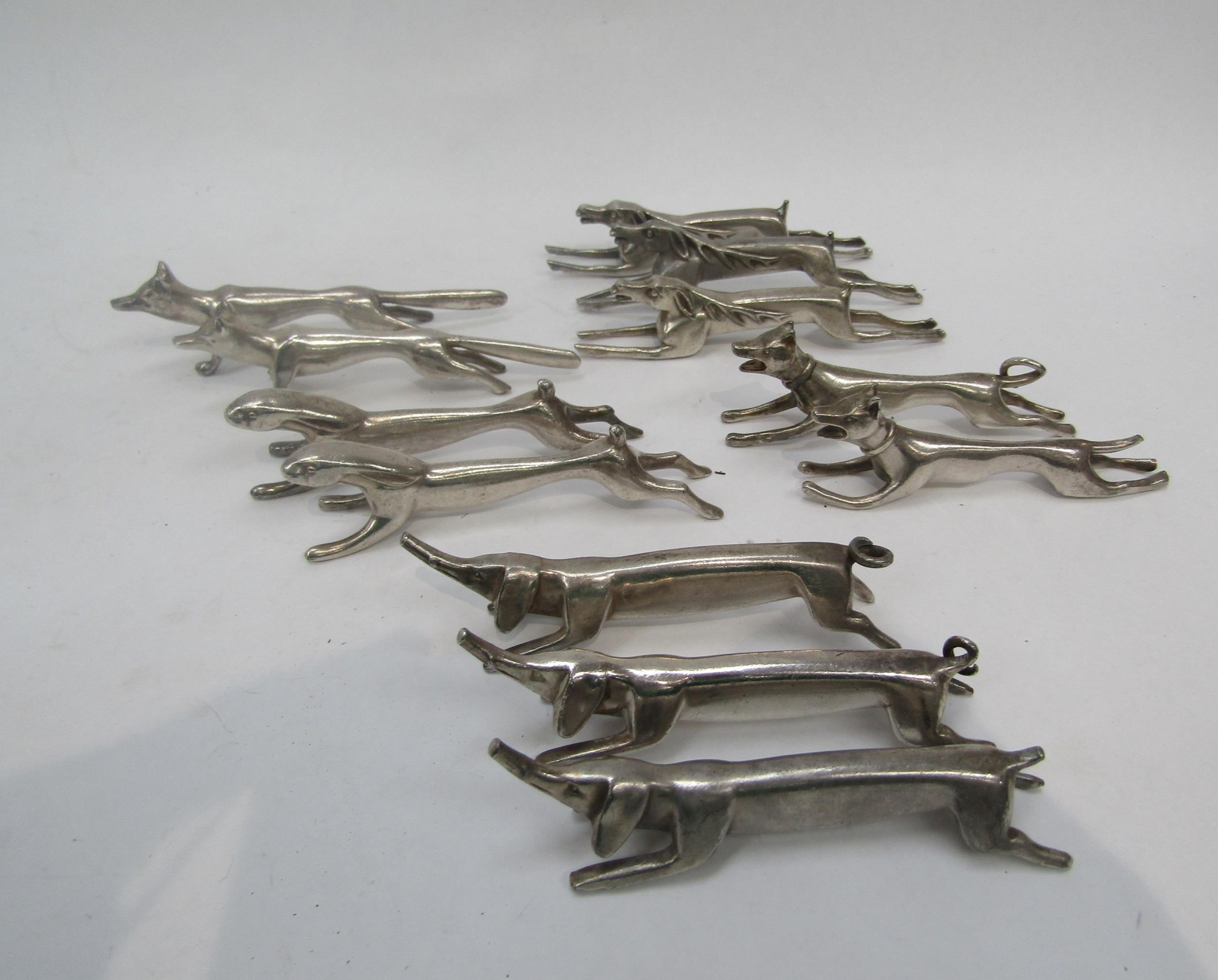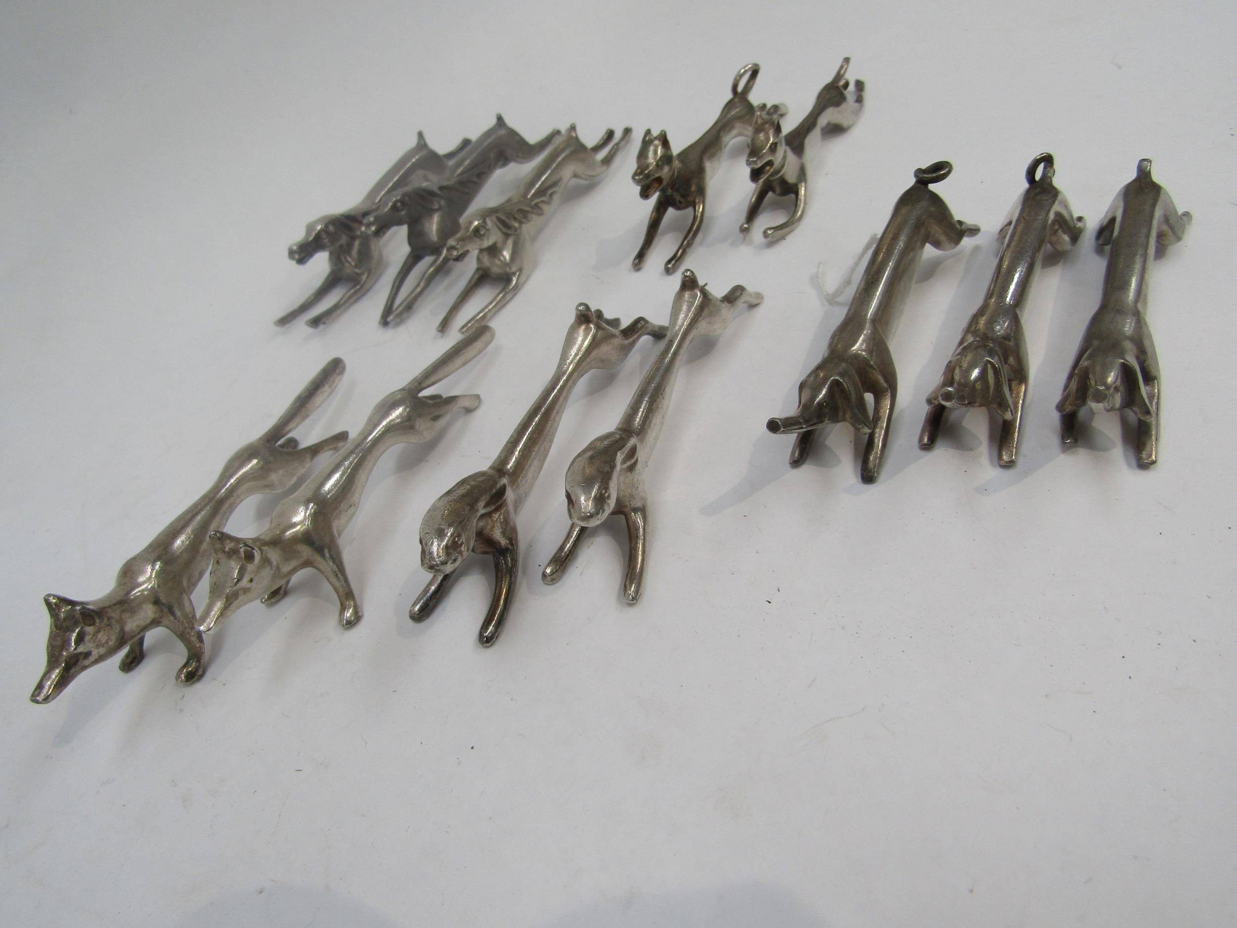 A set of twelve anamorphic knife rests including pigs, hares, stags and dogs (C)
