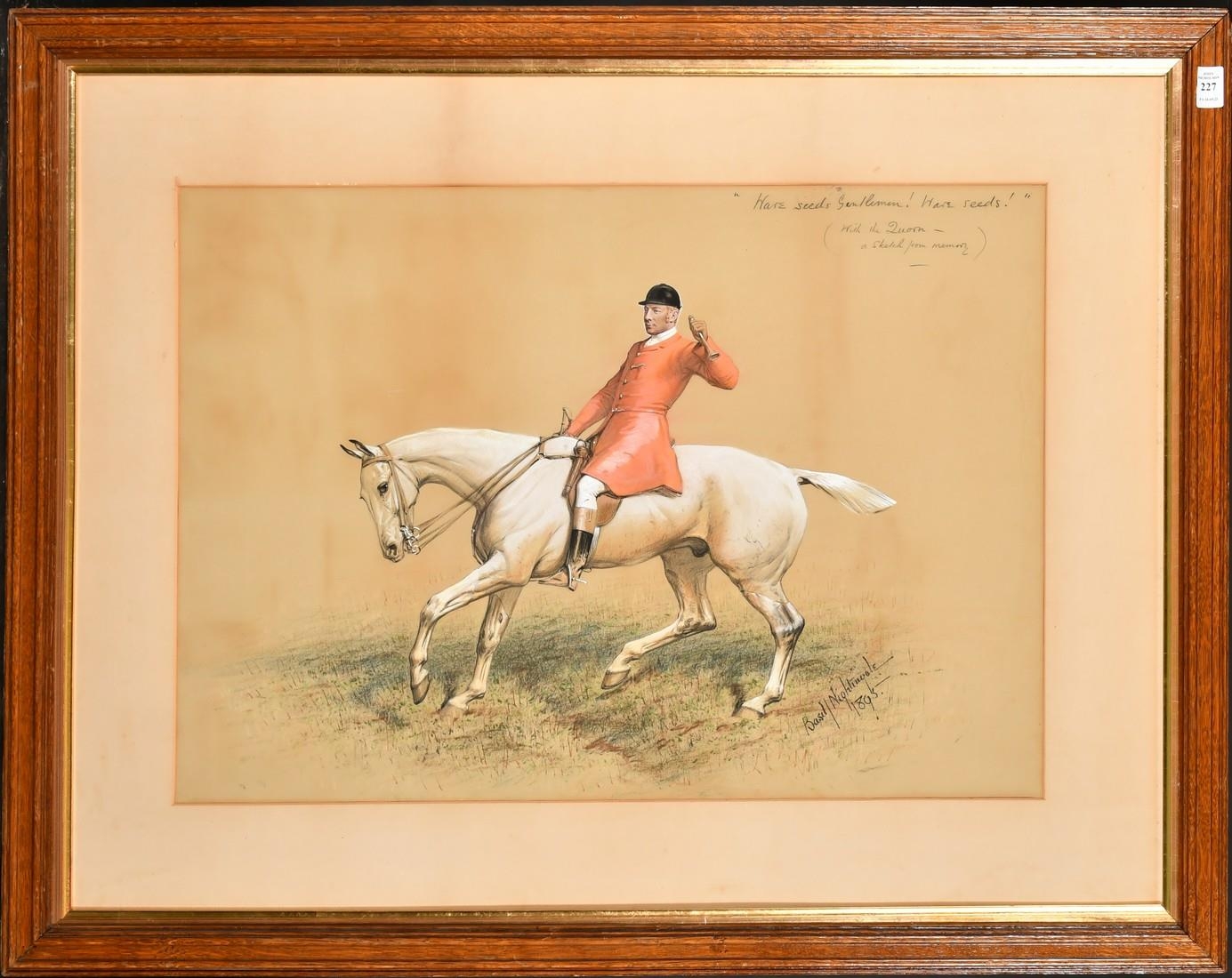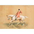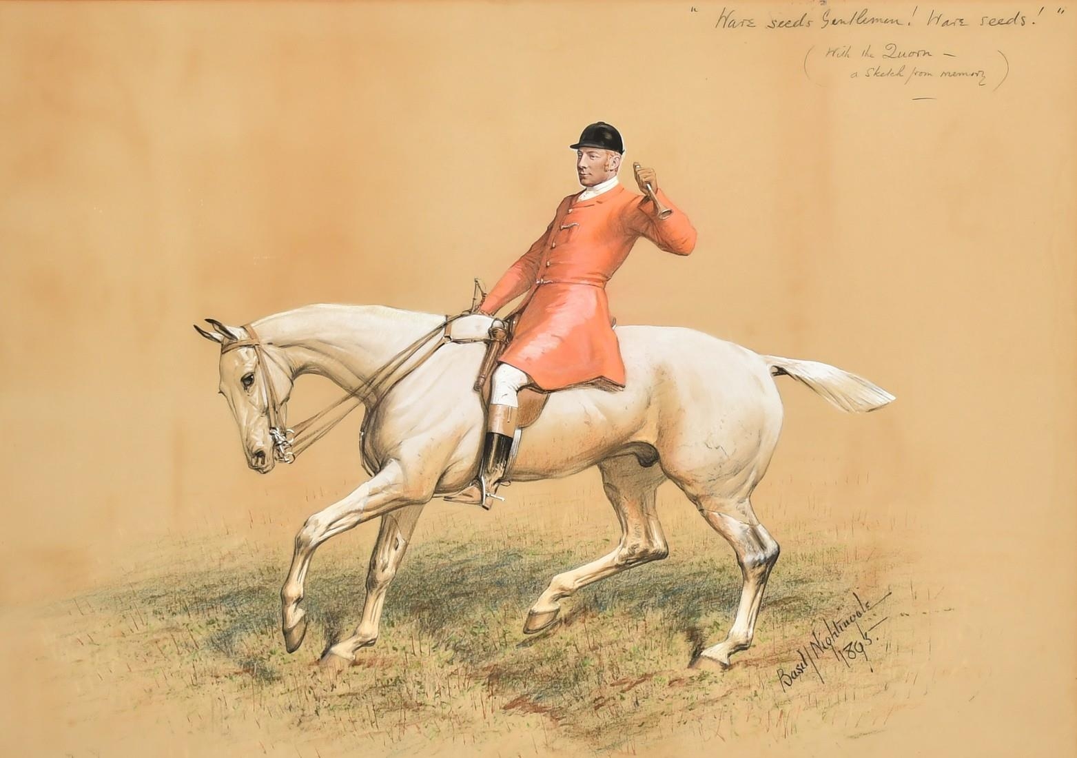Basil Nightingale, A huntsman from the Quorn, watercolour and gouache, the face possibly over a print base, signed, inscribed and dated 1895, 18.5" x 26", (47x66cm).