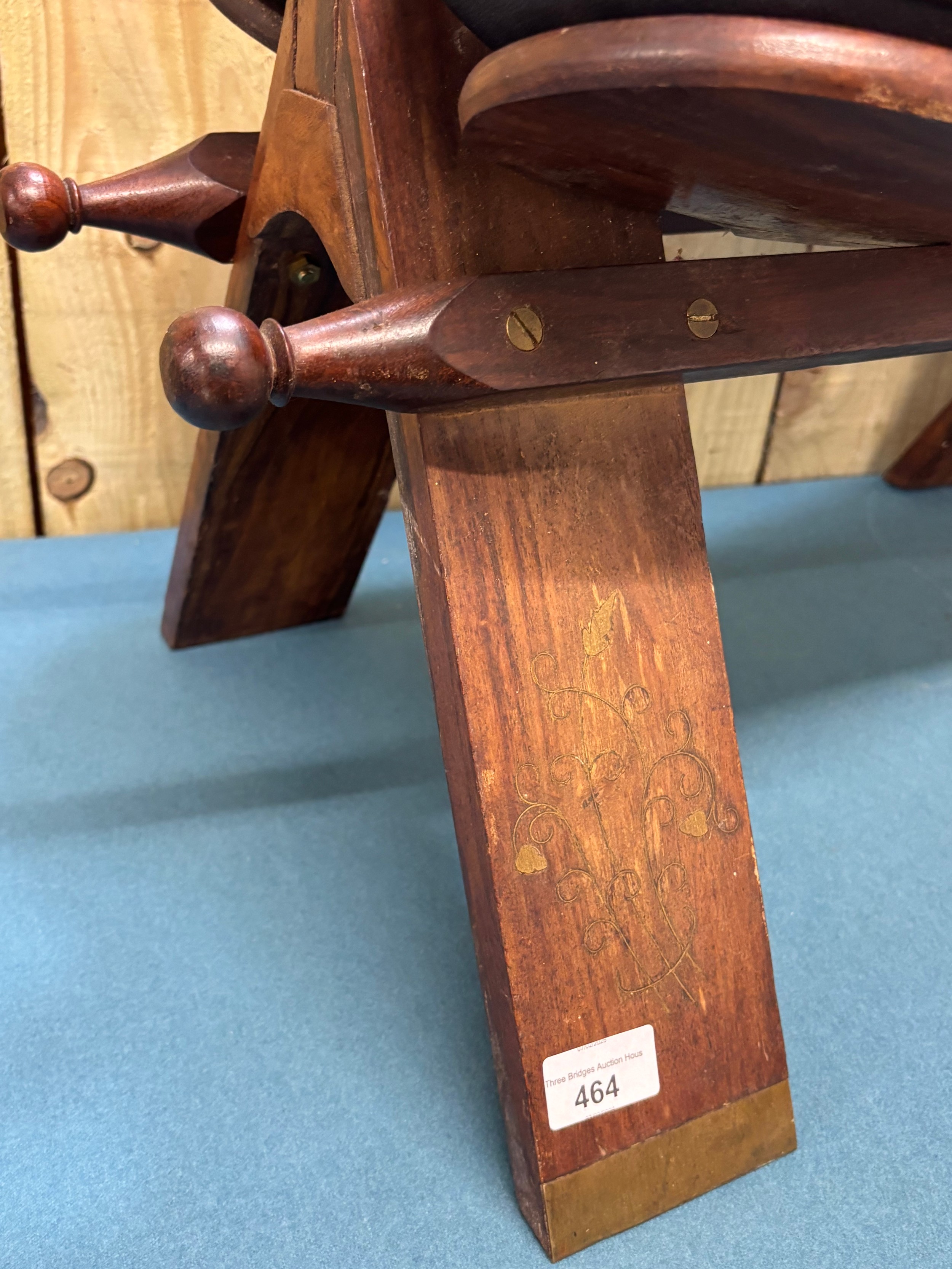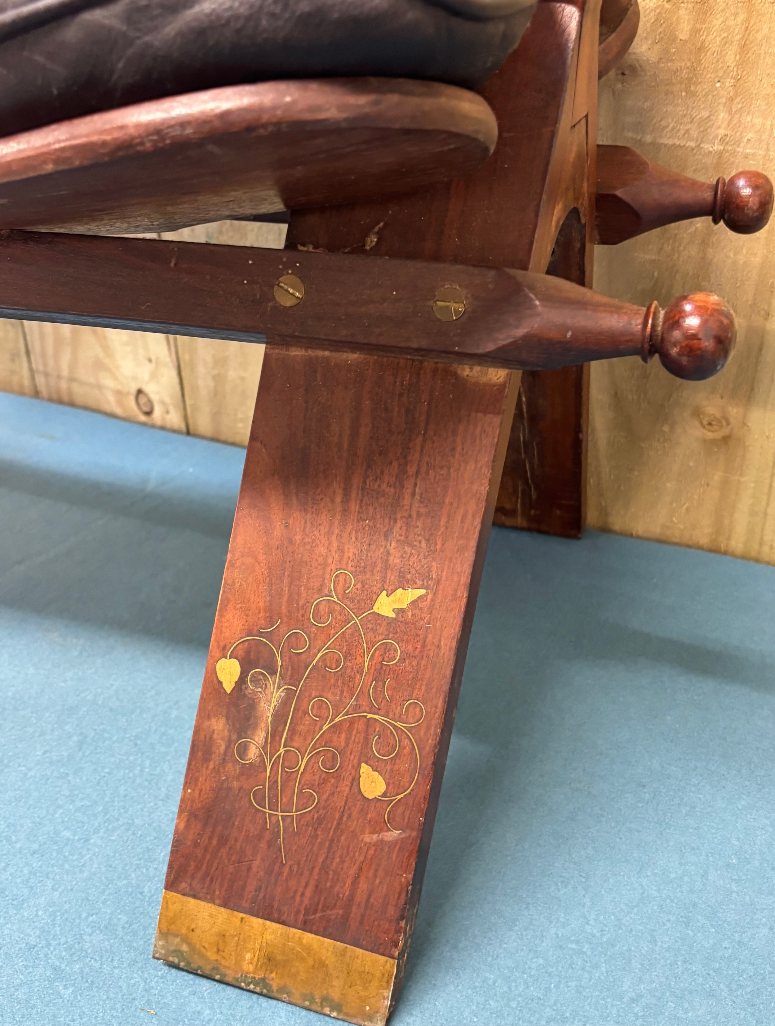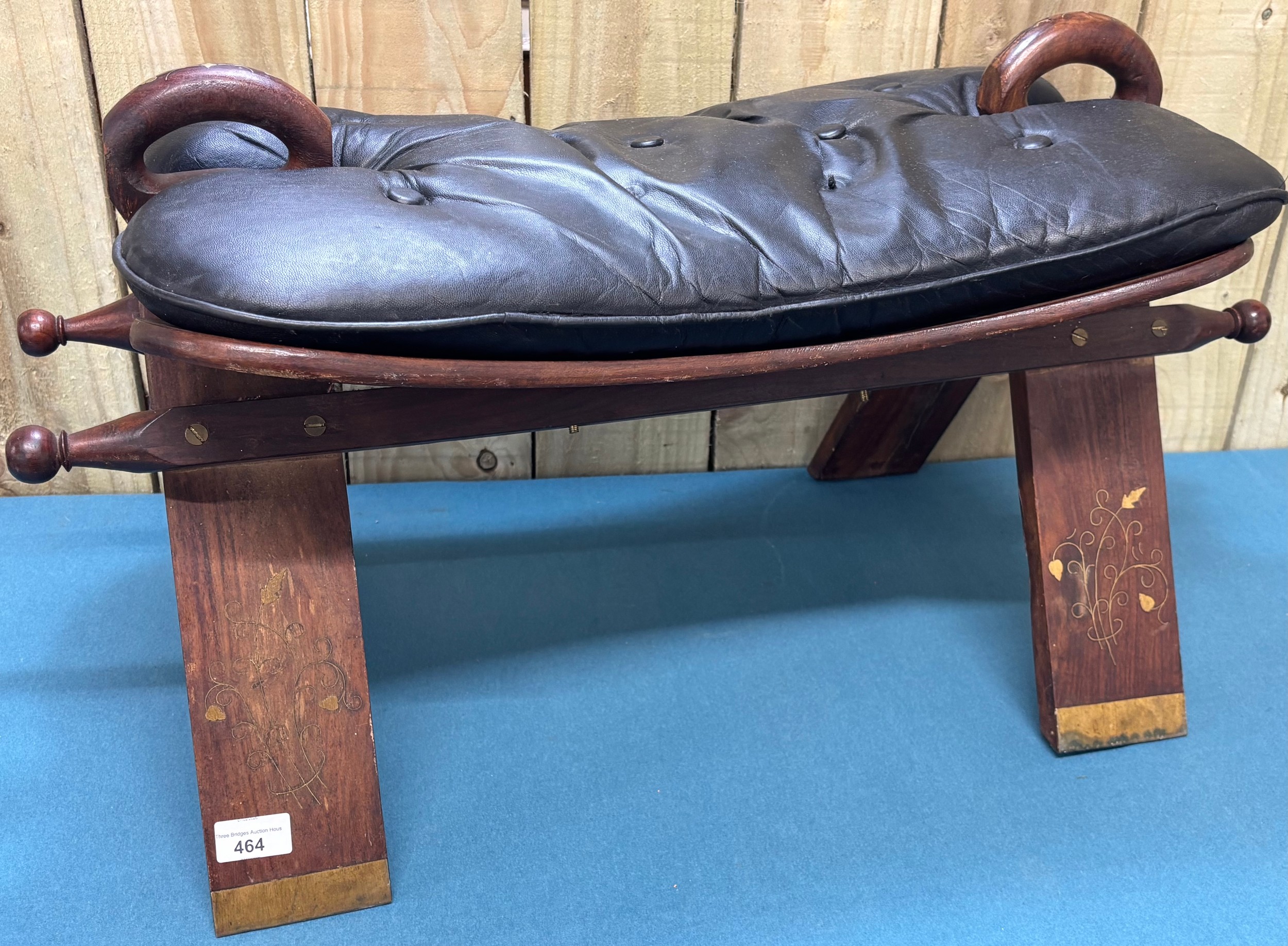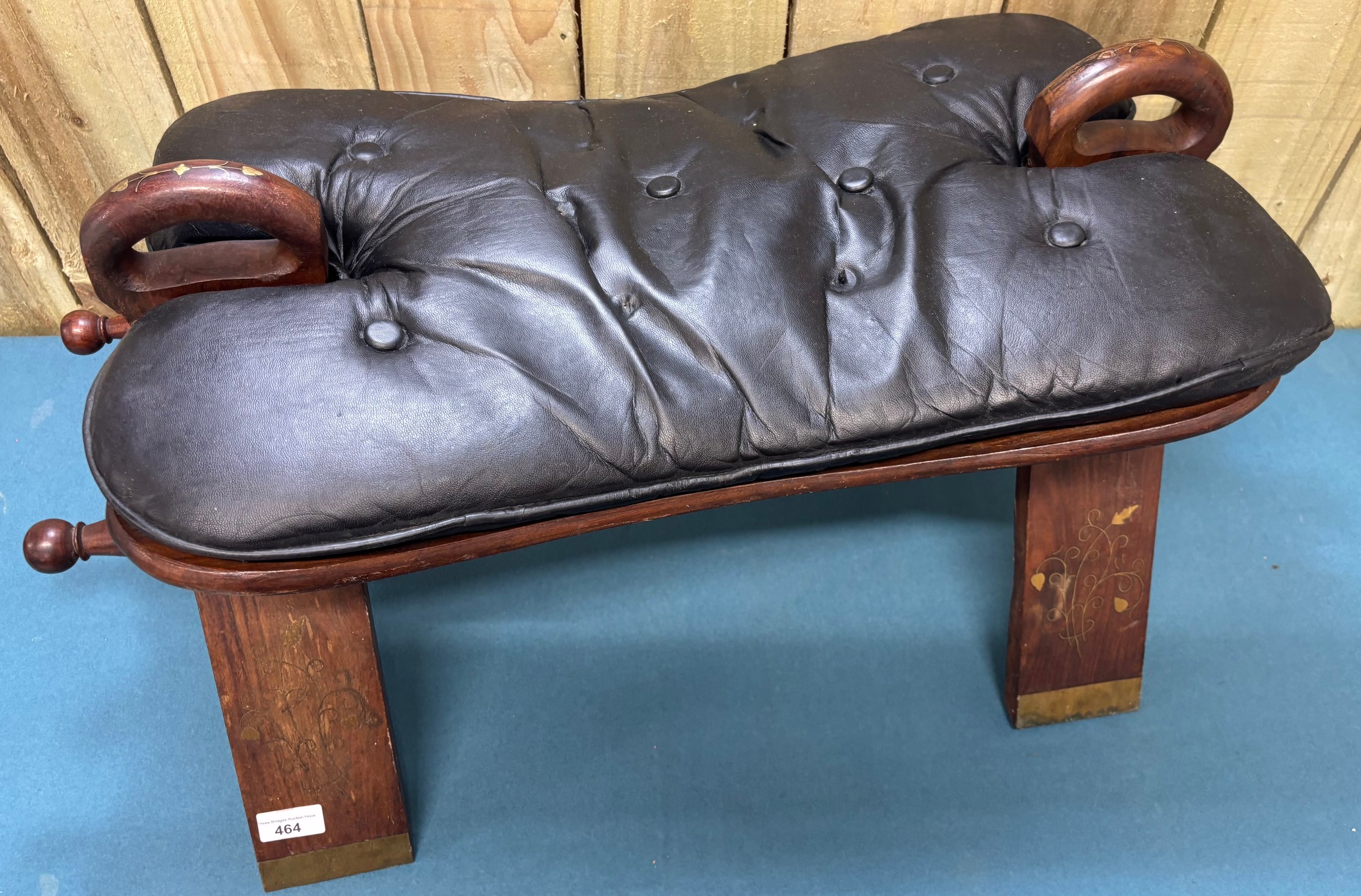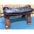 Vintage Indian Rosewood and leather camel stool. Having brass inlays.