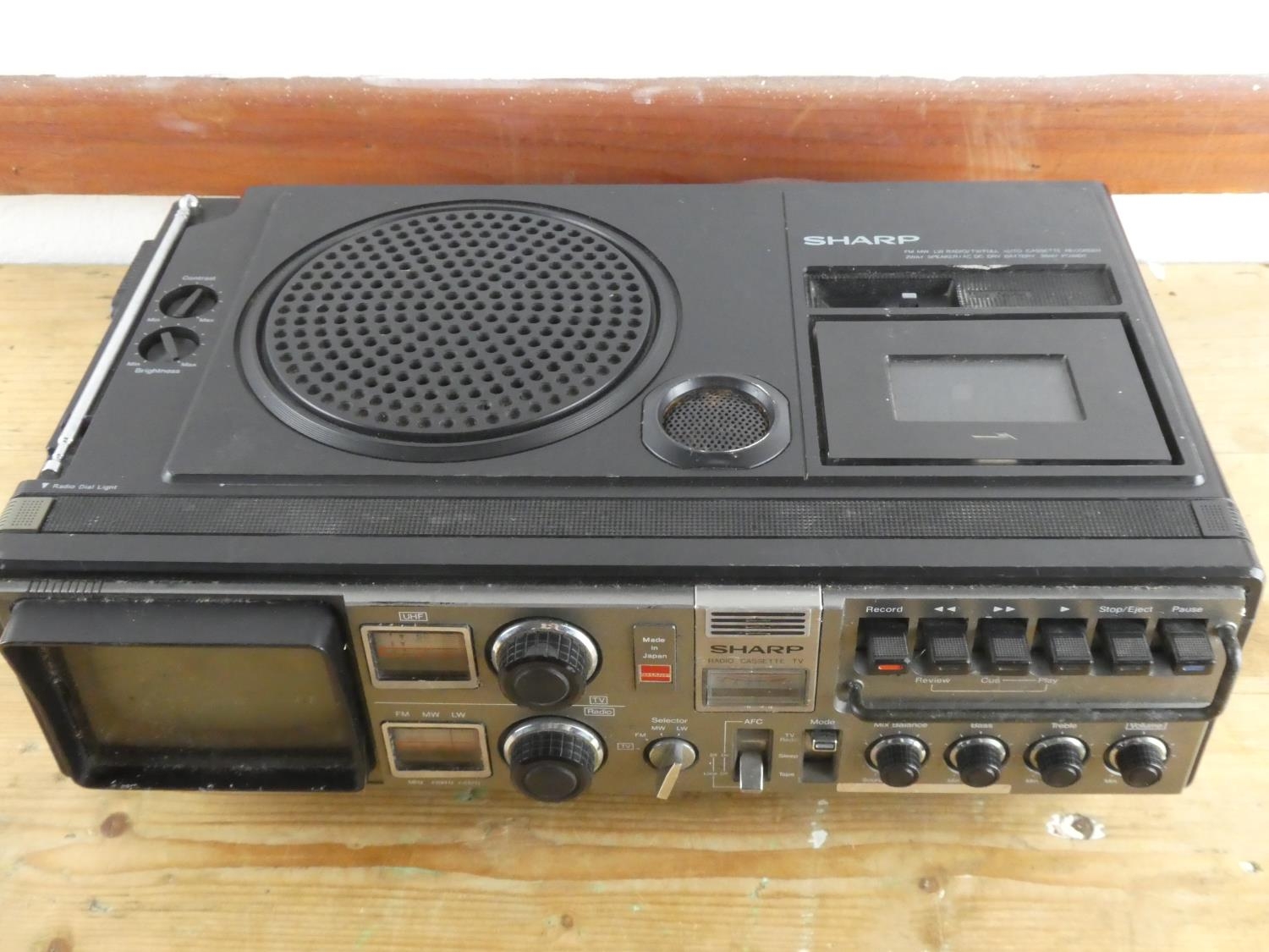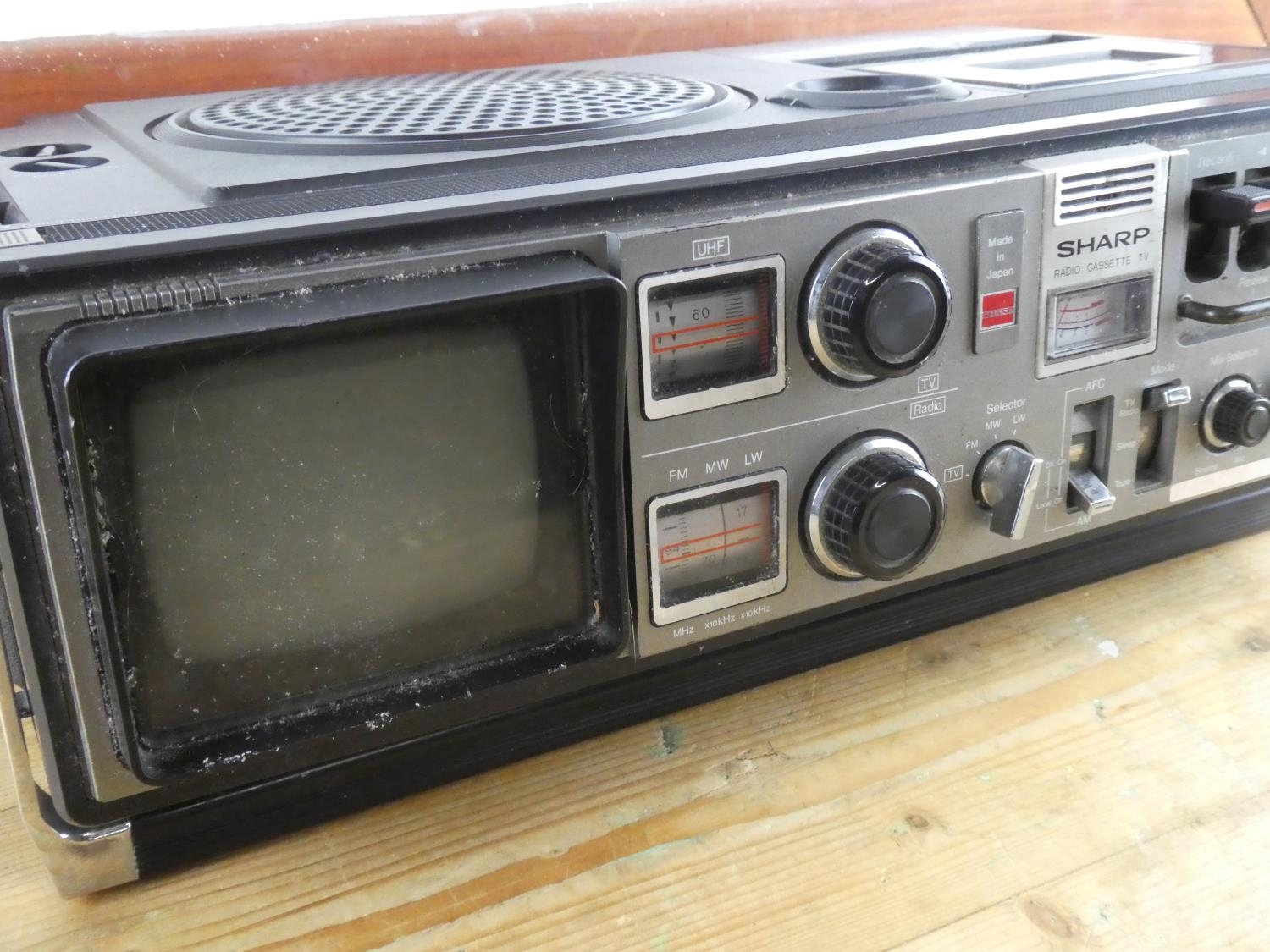 A vintage Sharp radio, cassette and tv.