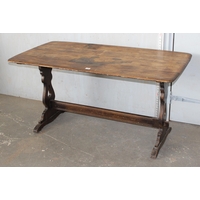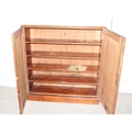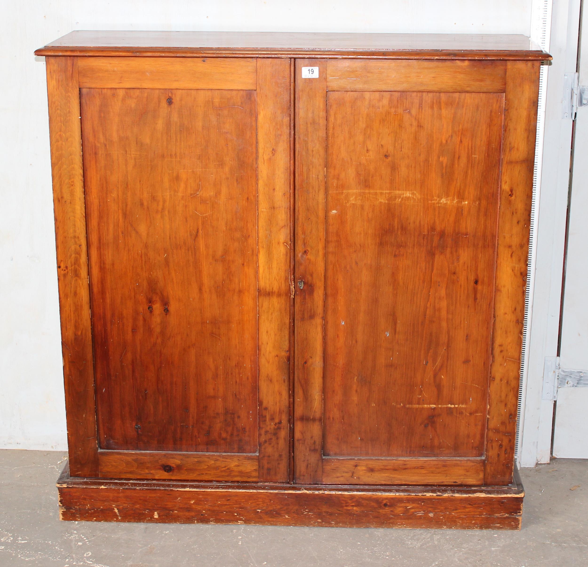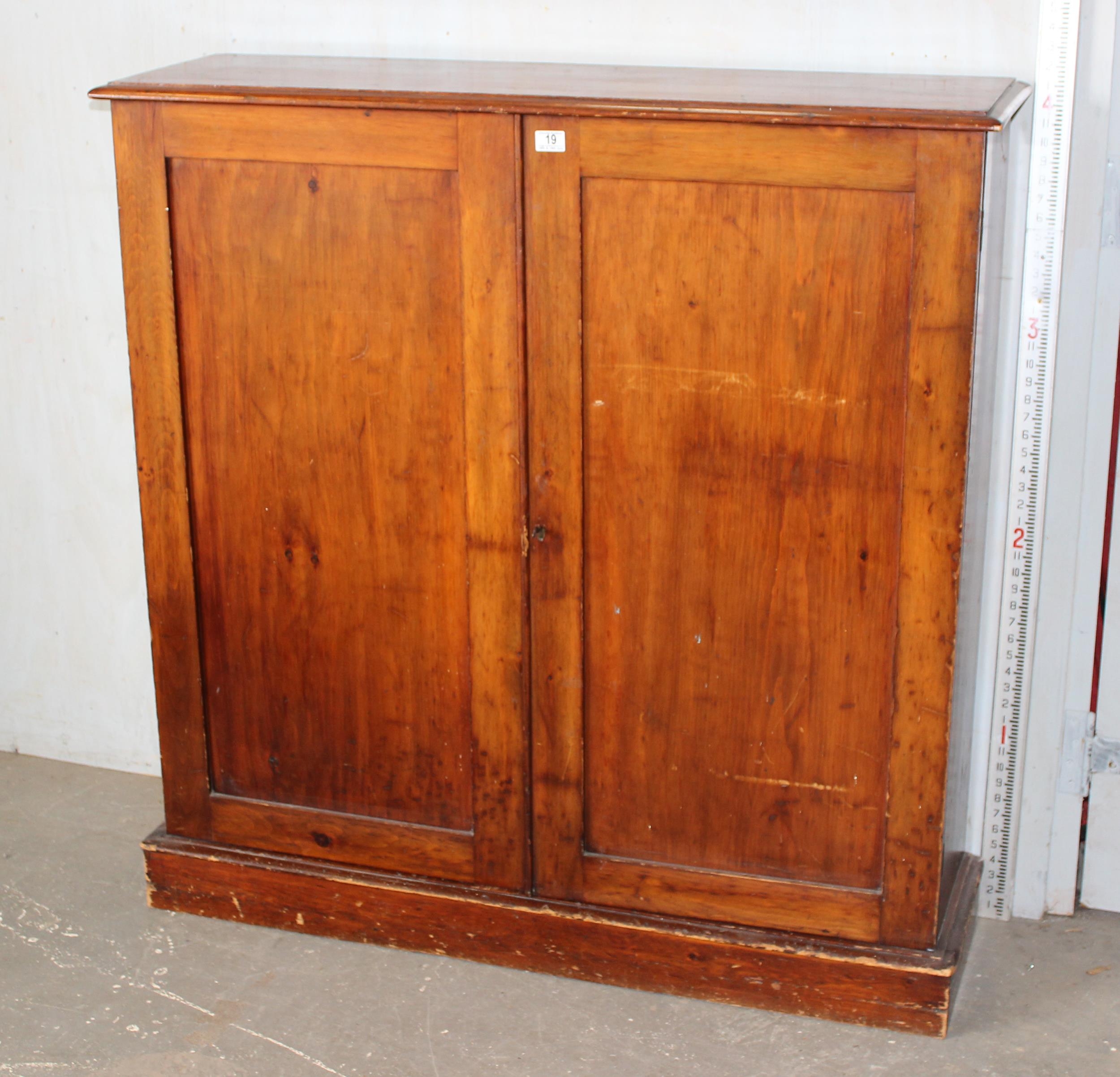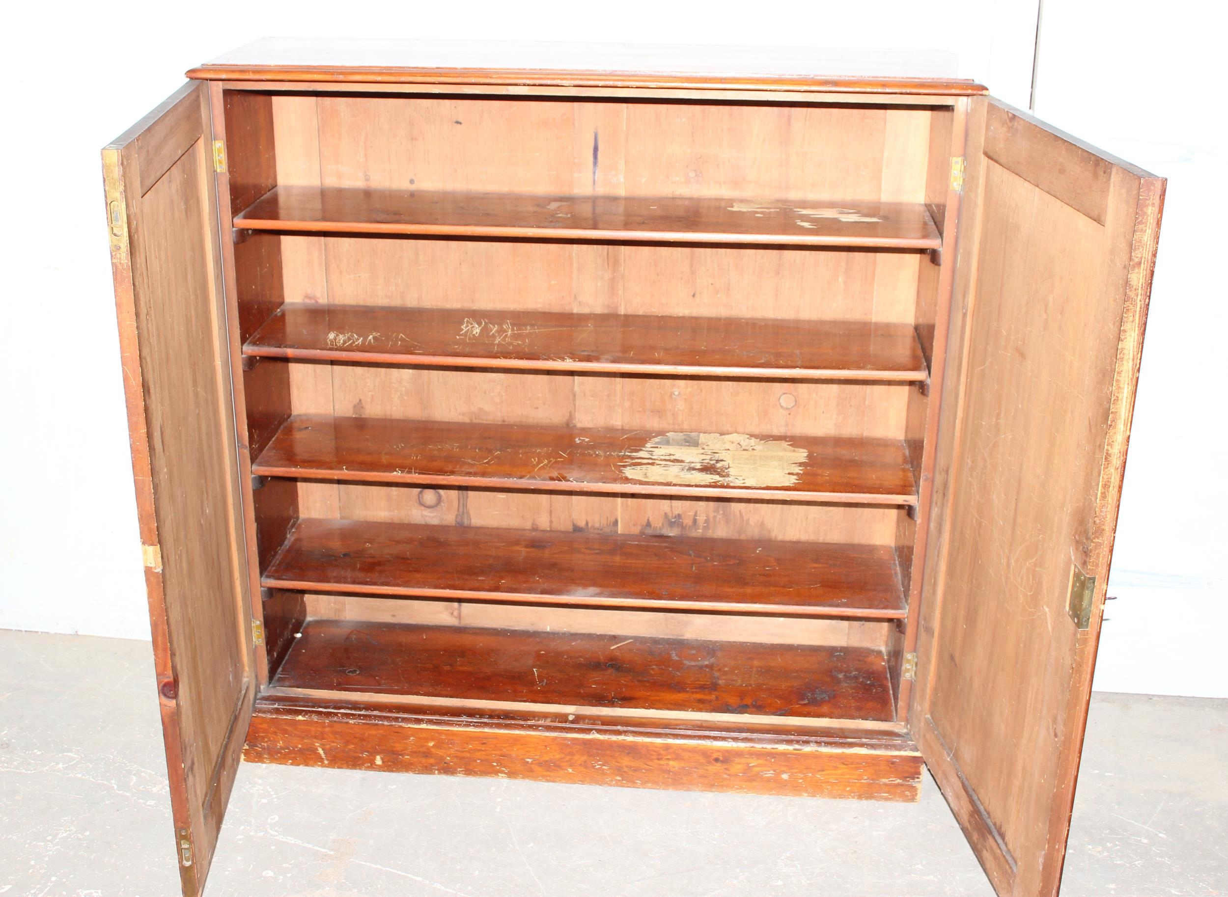 A large antique stained wooden cupboard with interior shelves, approx 121cm wide