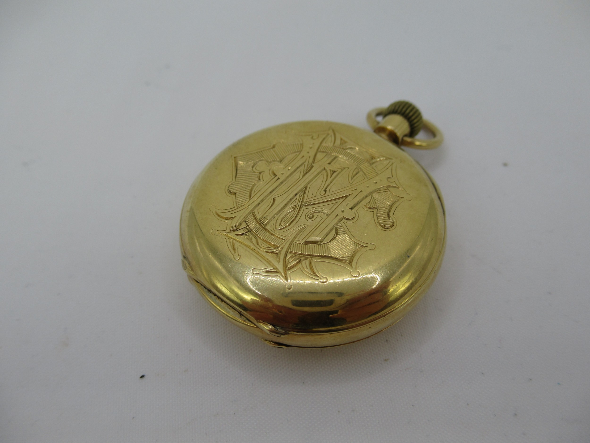 Is currently running but cannot guarantee for any period of time. Inner case is 18ct marked. Inscription to outer back cover only.
