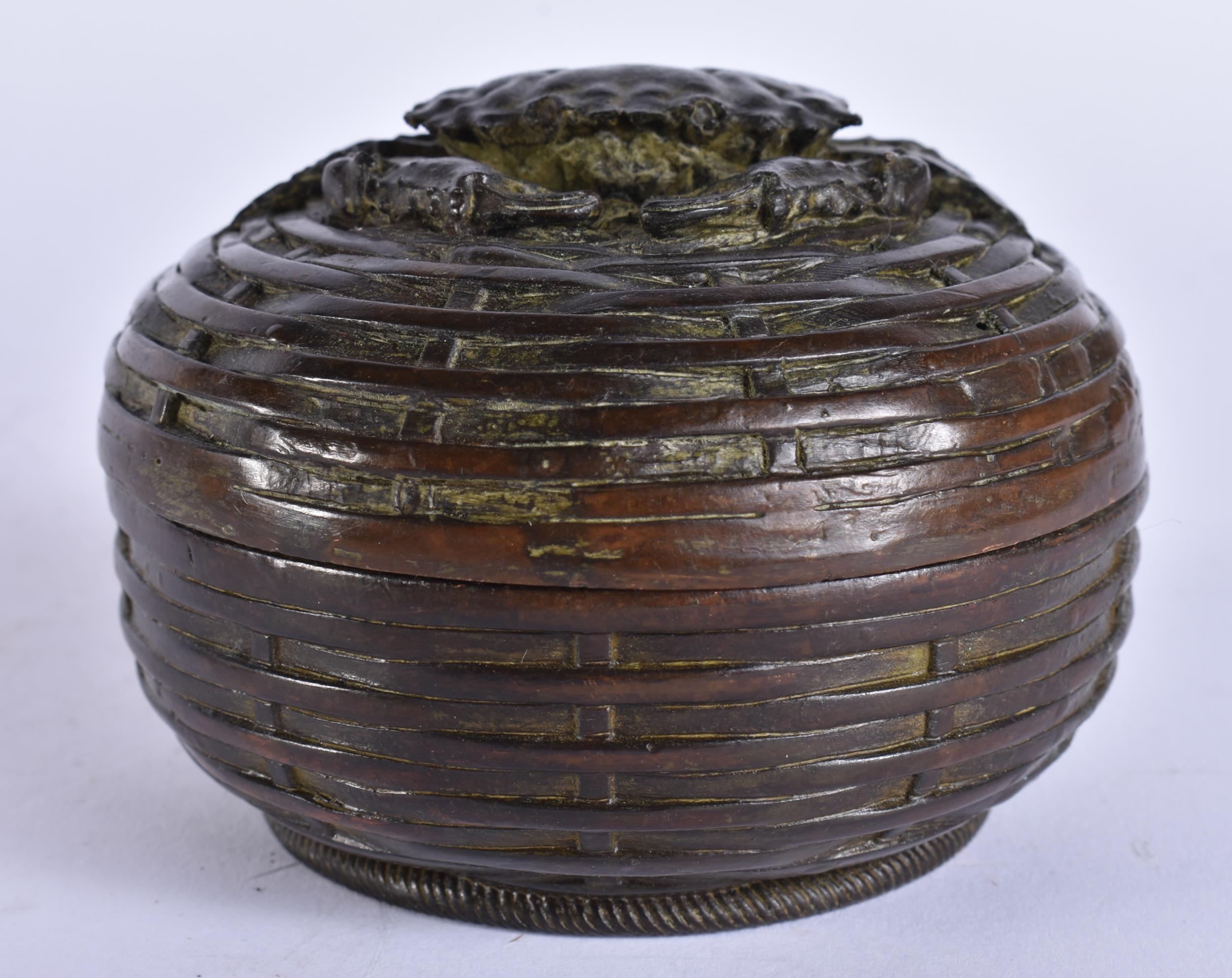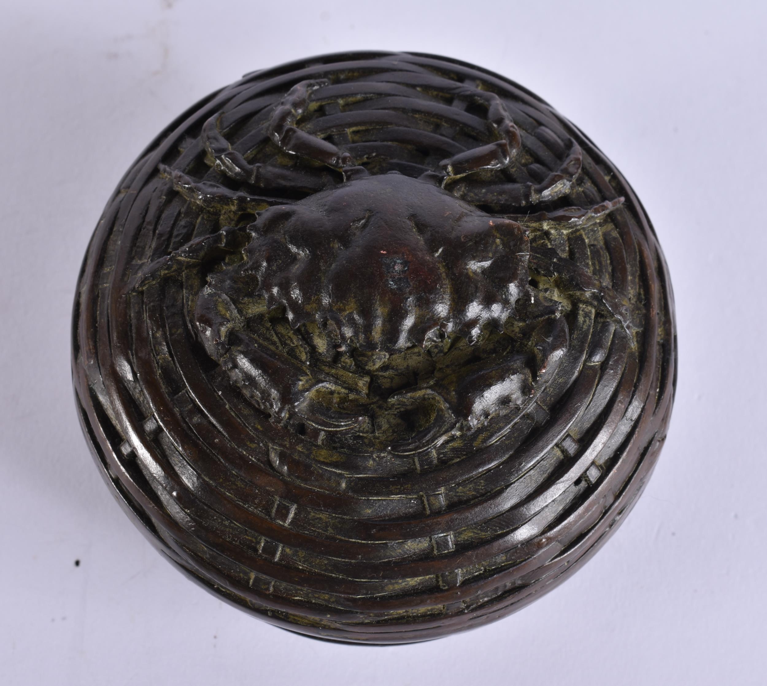 A JAPANESE BRONZE CRAB BOX AND COVER. 8 cm diameter.