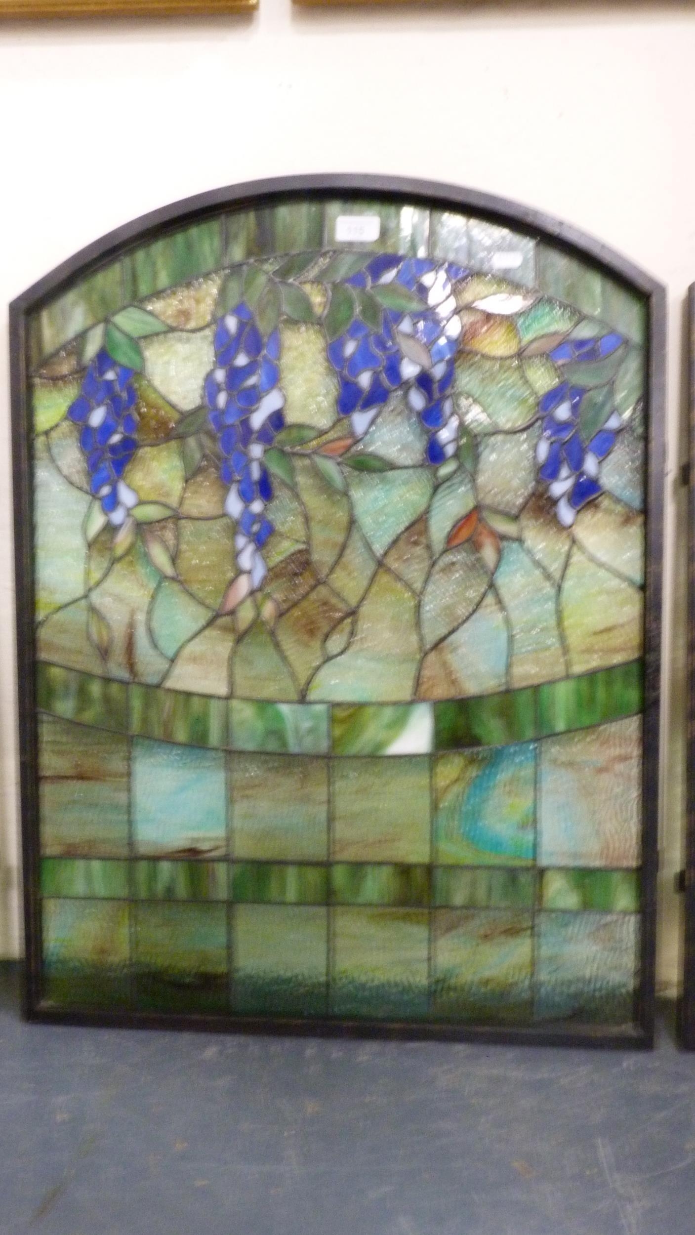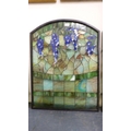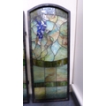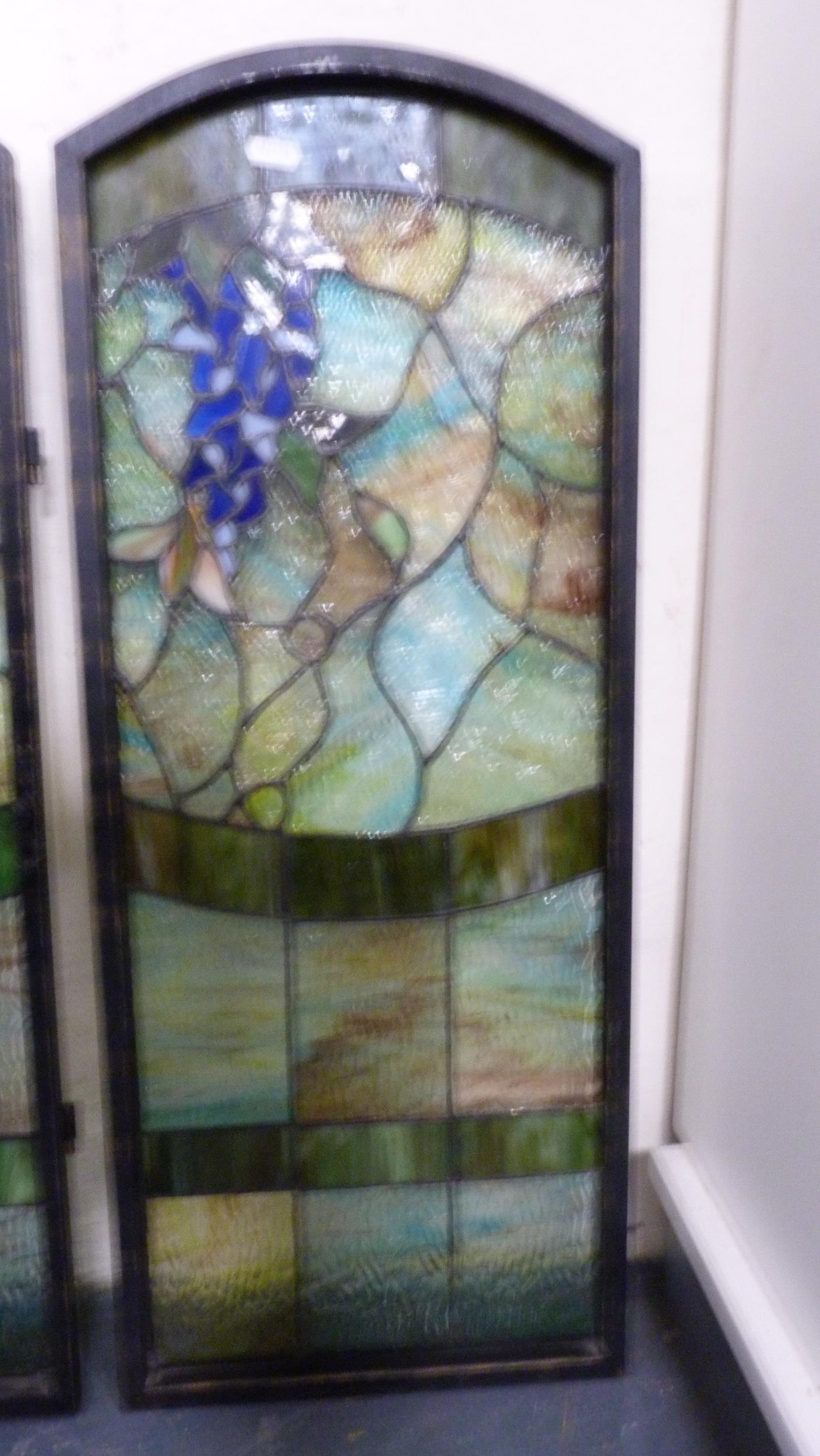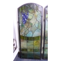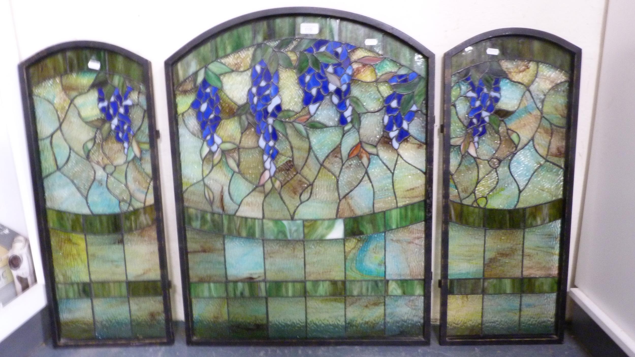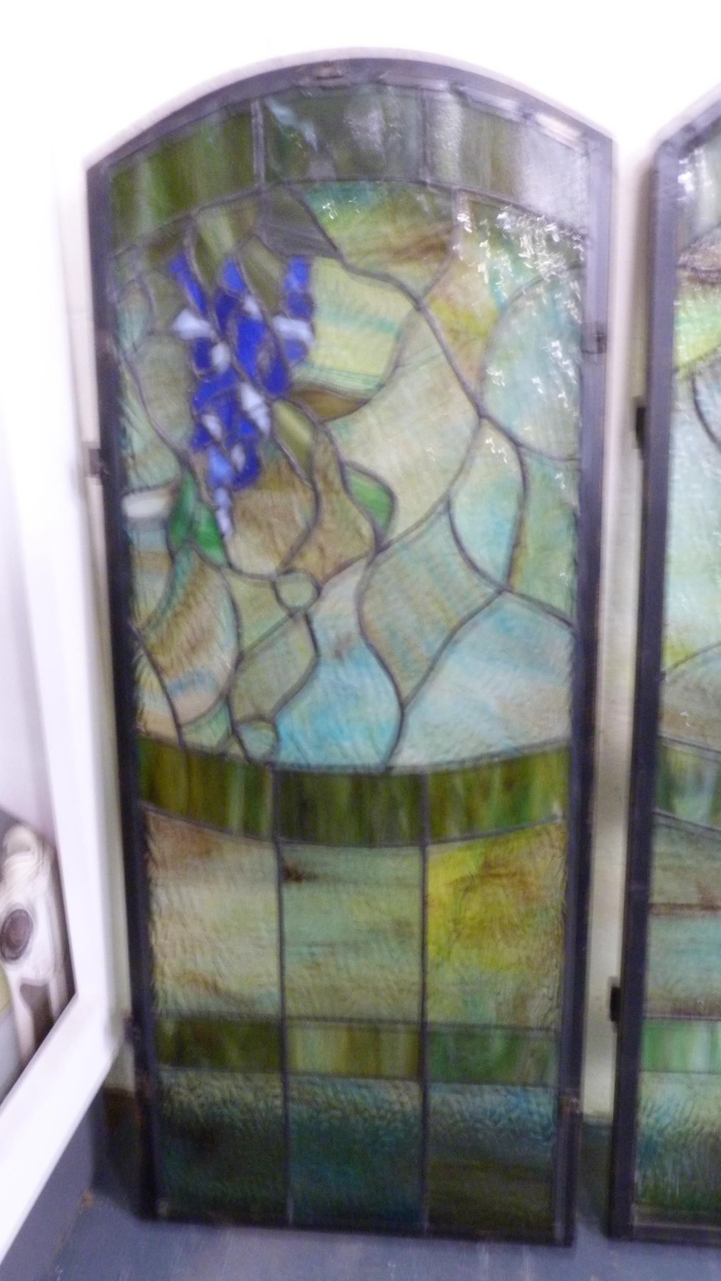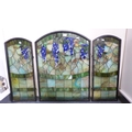 Three painted stained glass panels.