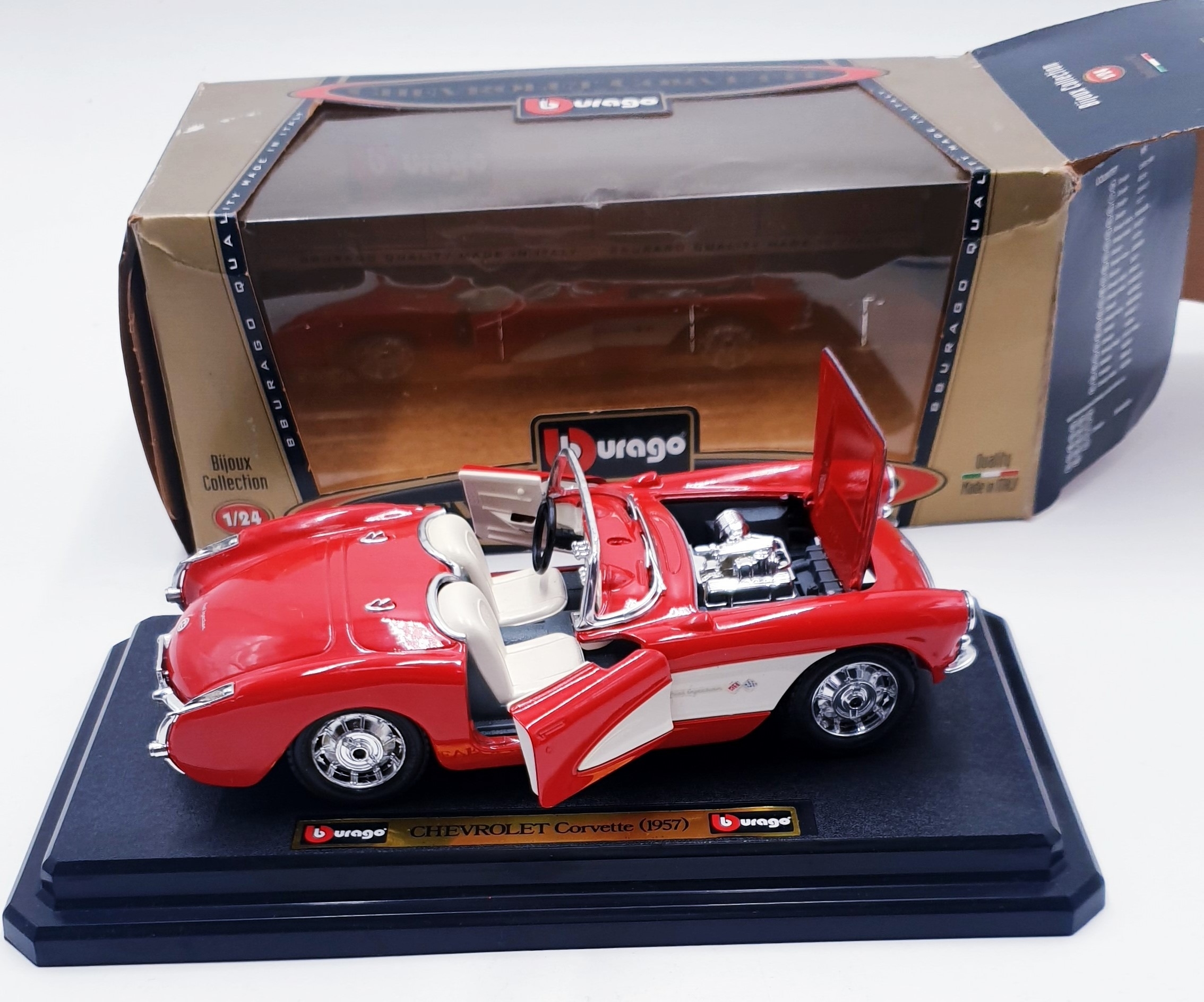 BBURAGO Large 1:24 SCALE DIE CAST MODEL OF A CHEVROLET CORVETTE 1957 FROM THE BIJOUX COLLECTION (Original Box)
