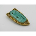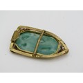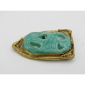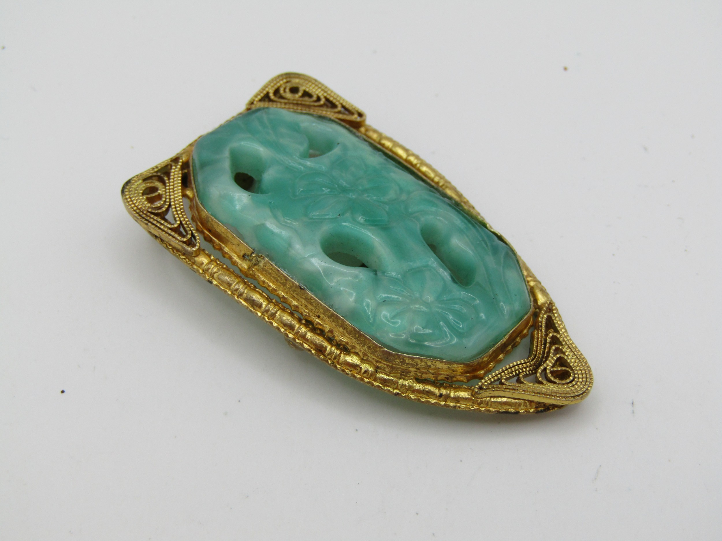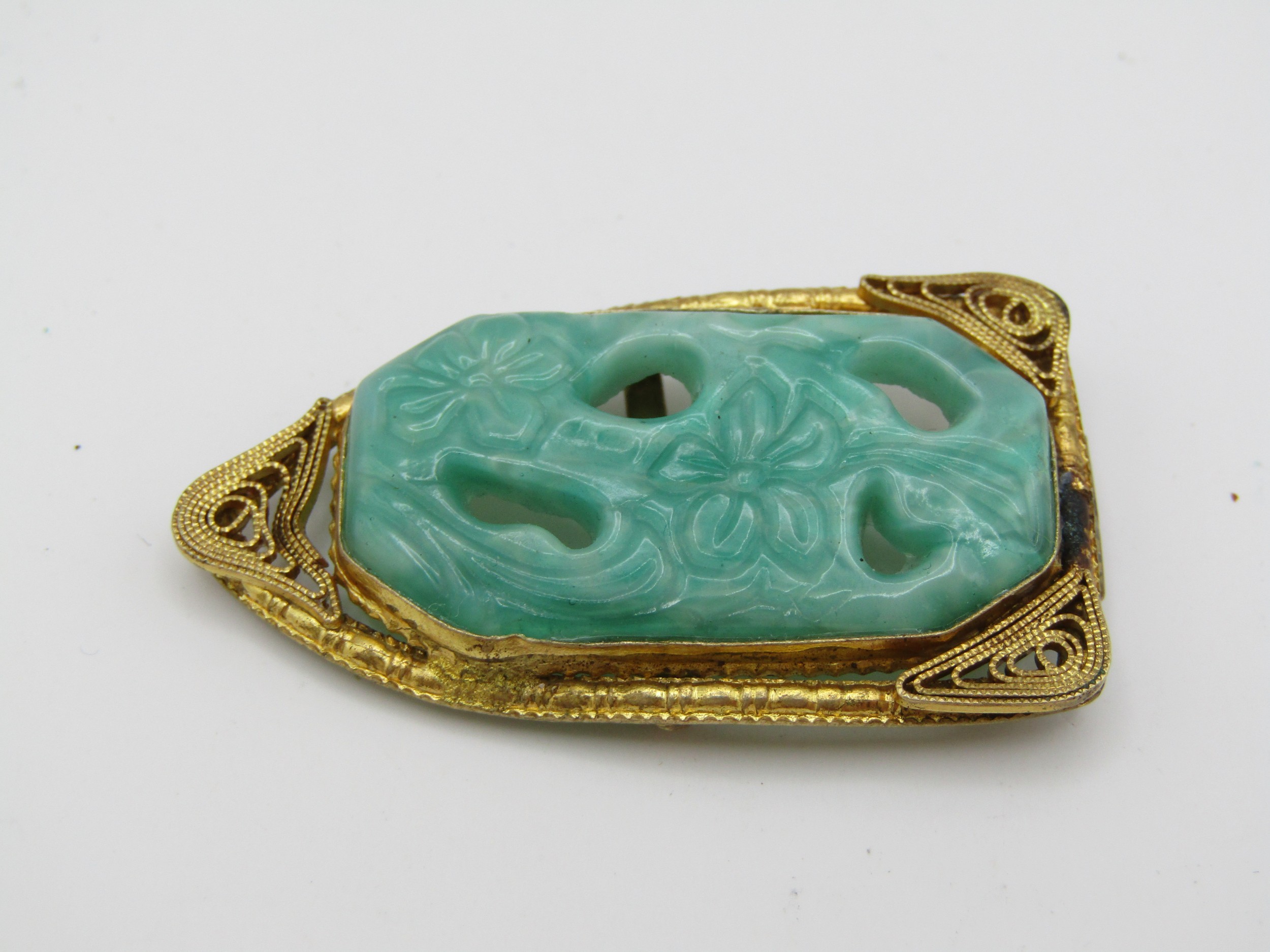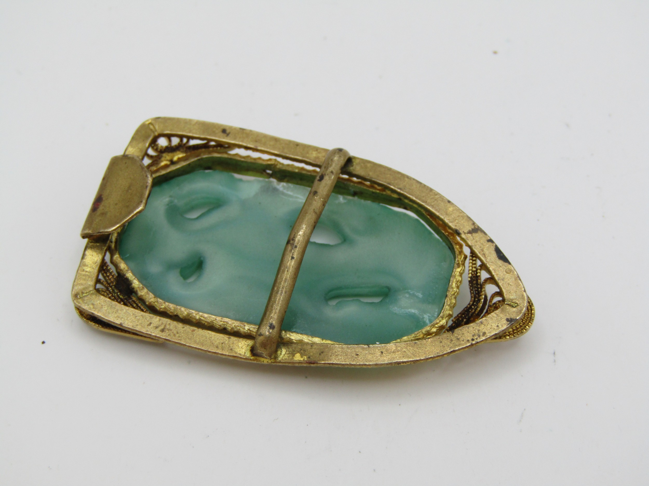 Antique carved Jade part buckle, set in gold colour filigree frame.