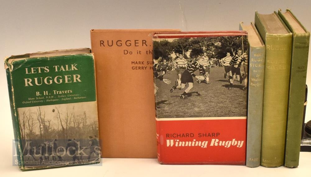 Rugby Book Selection C, Vintage (6): Rugby Recollections, Townsend Collins, great; Rugger, Wakefield & Marshall; Rugger, Do It This Way, Sugden & Hollis; Lets Talk Rugby, BH Travers; Winning Rugby, Richard Sharp; and Best Rugby Stories, W Reyburn. Good