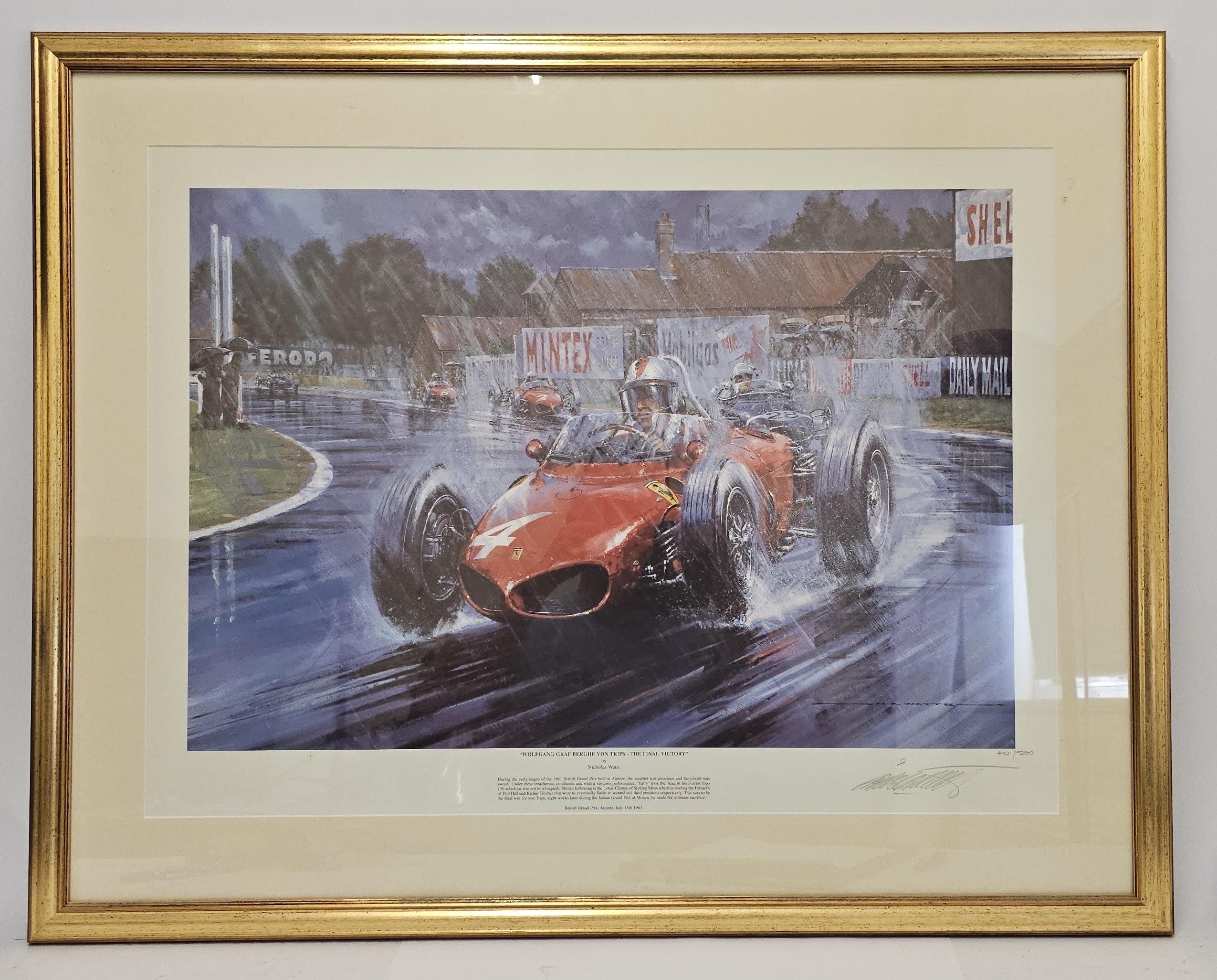 Nicholas Watts, "Wolfgang Graf Berghe Von Trips - the Final Victory", limited edition print 401/500, signed in pencil by the artist, 72 x 80 overall framed size.