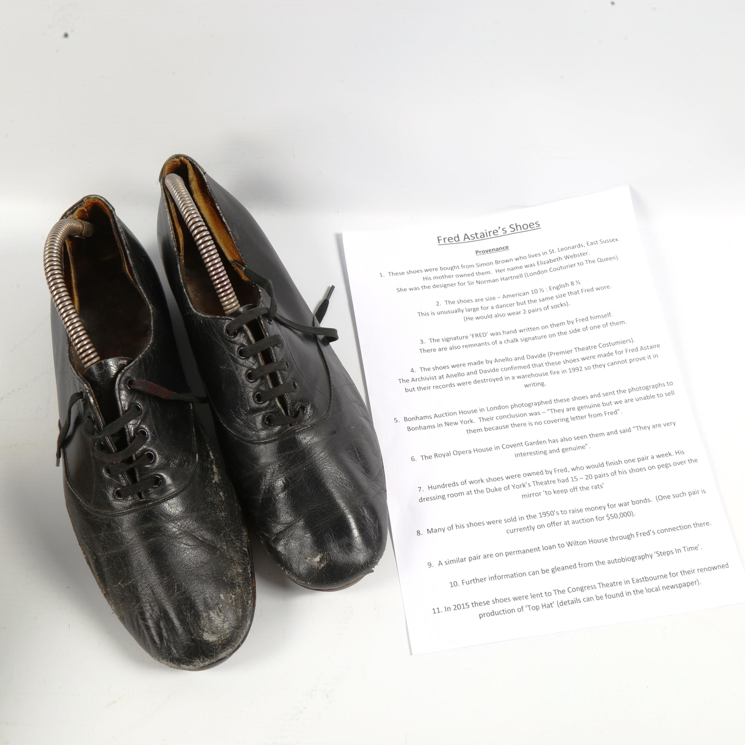 A pair of Vintage tap dancing shoes thought to have been owned by Fred Astaire, with associated provenance, in pig-skin case