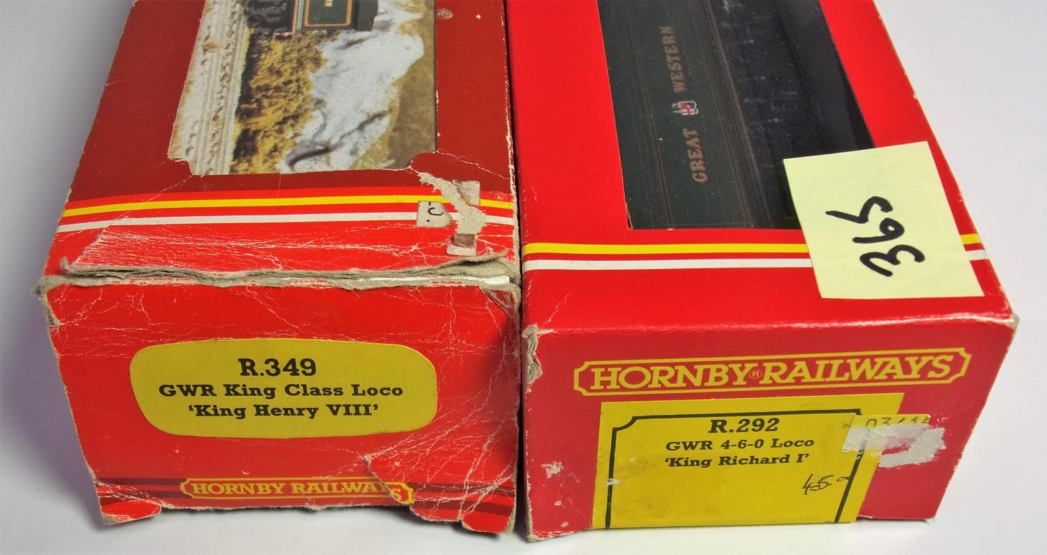 HORNBY RAILWAYS R292 GWR 4-6-0 LOCO 6027 KING RICHARD I IN GREAT WESTERN GREEN LIVERY TOGETHER WITH HORNBY R349 KING CLASS LOCO 4-6-0 6013 KING HENRY VIII GWR GREEN BOTH BOXED
