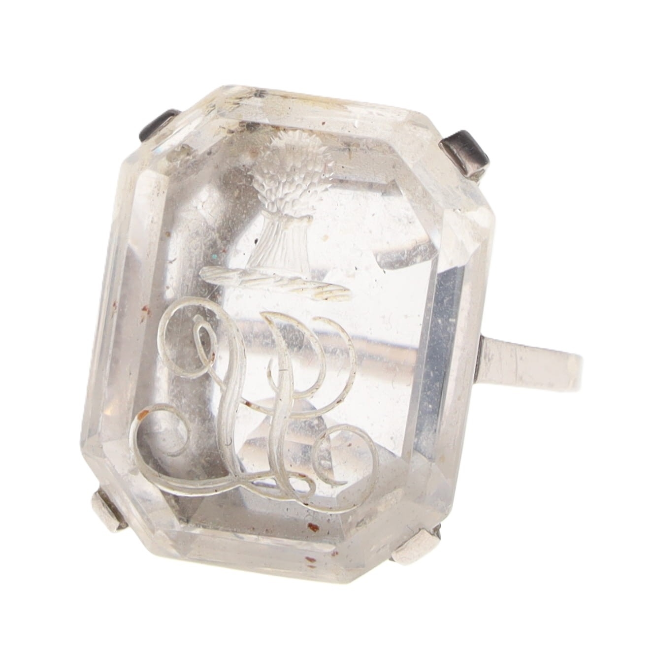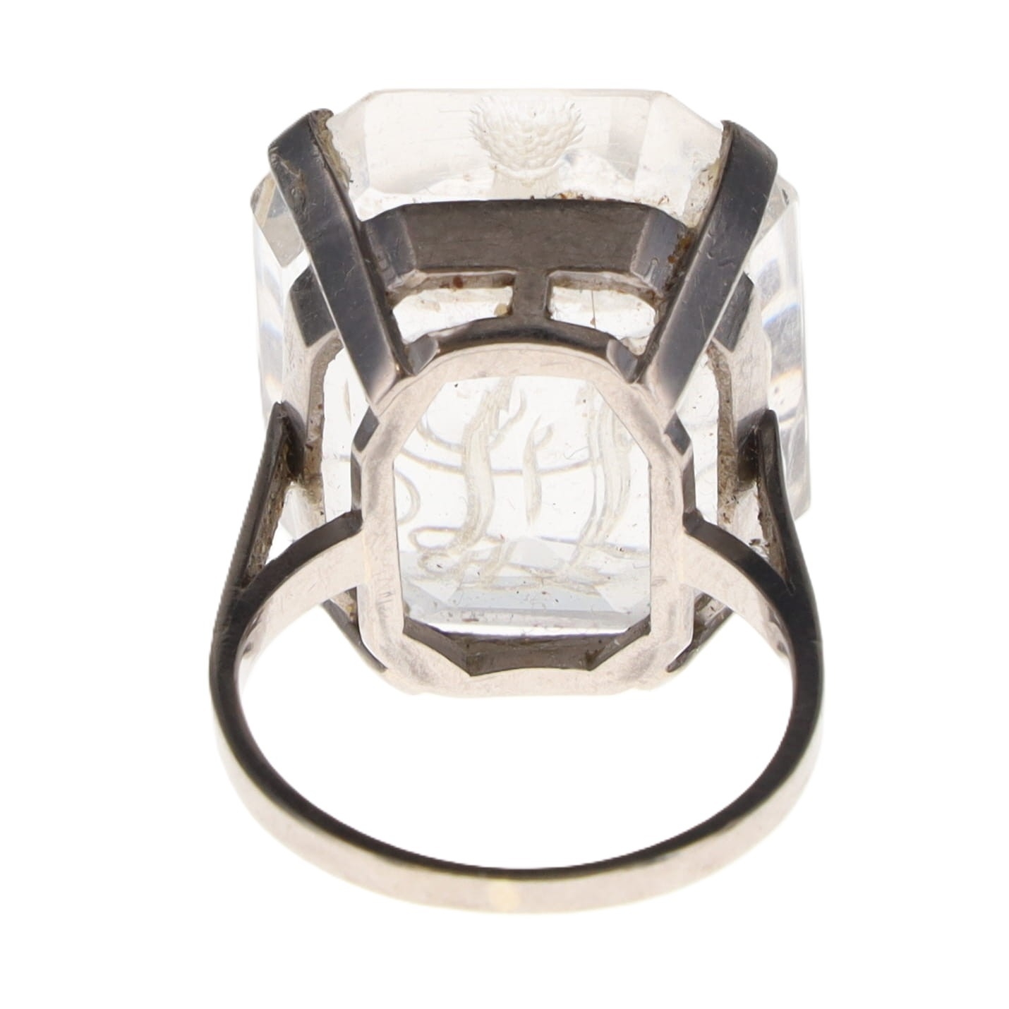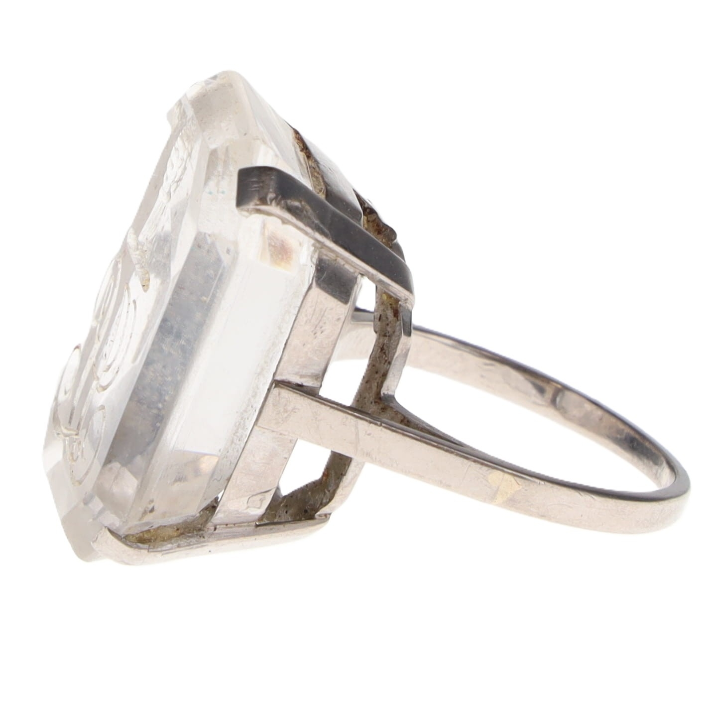 Rock Crystal Intaglio 18ct White Gold Ring, 11.3g