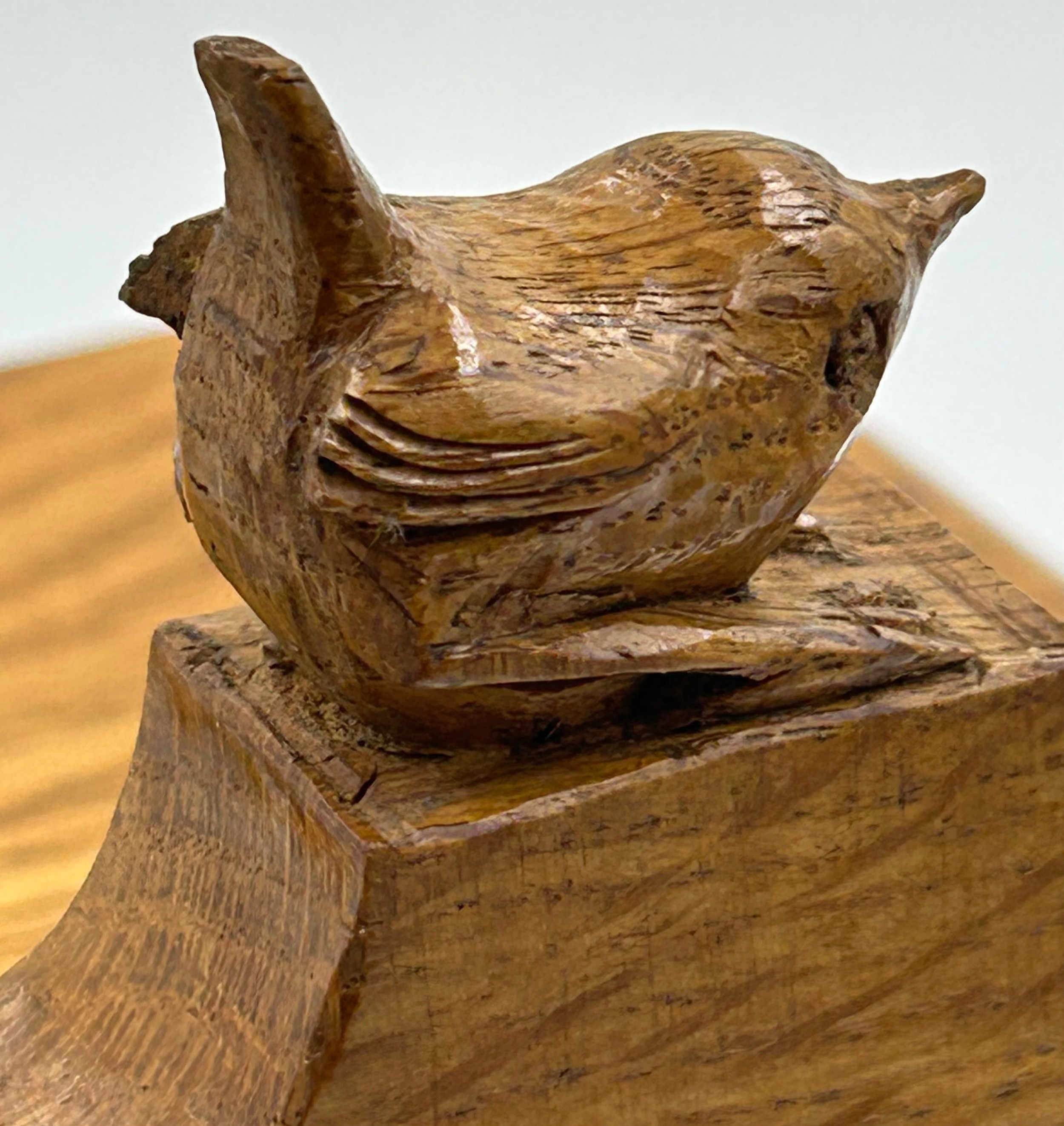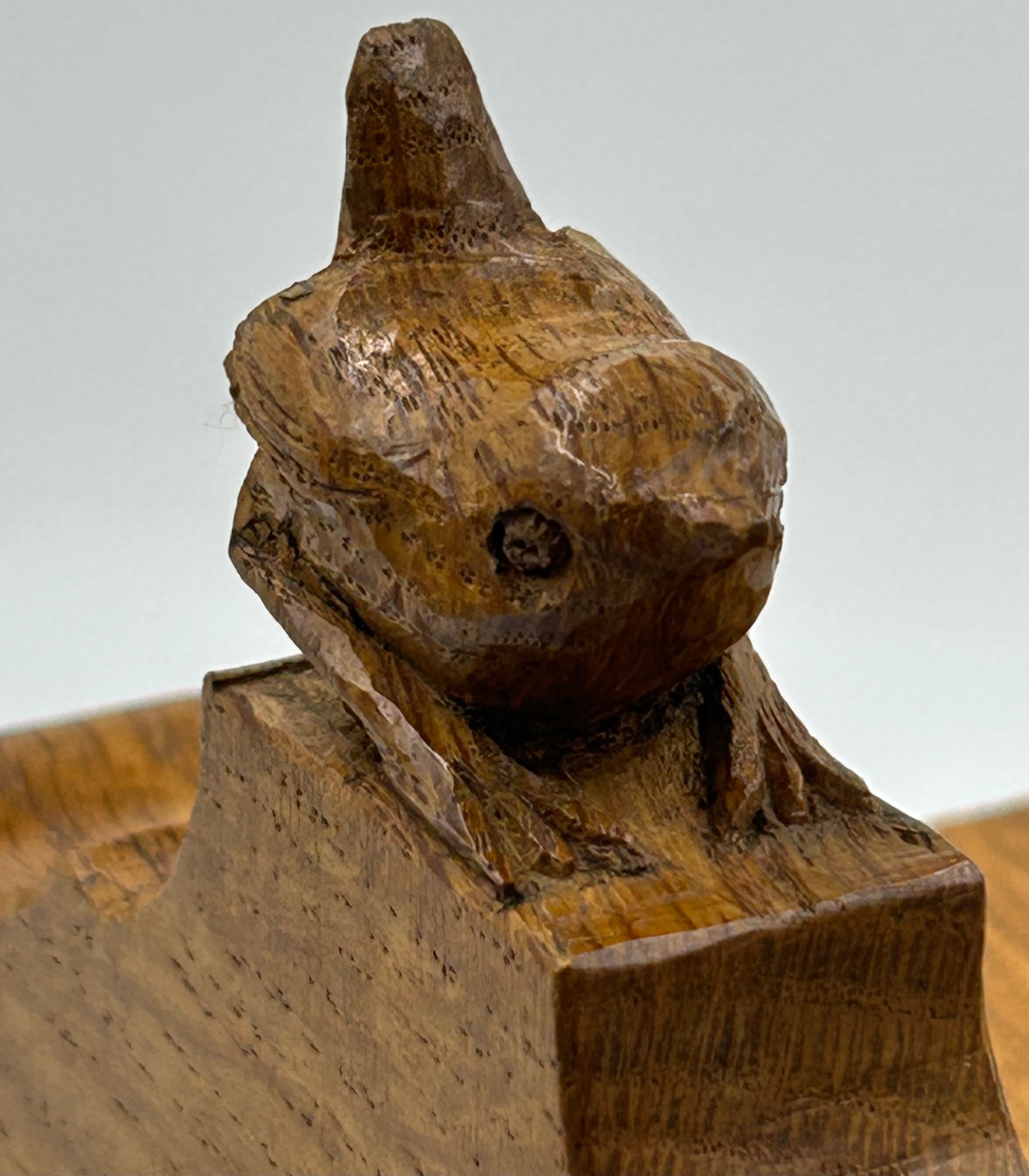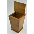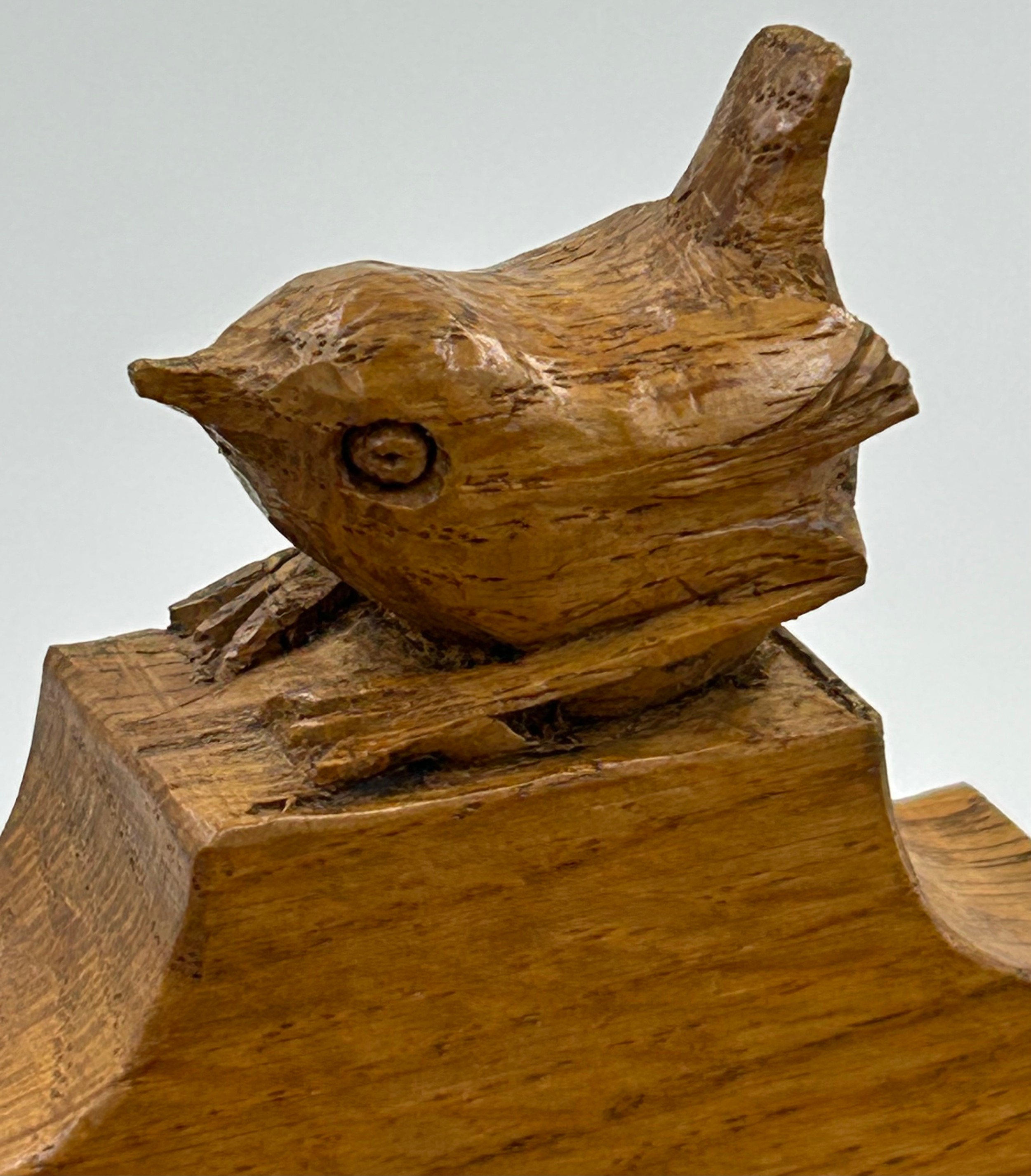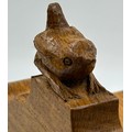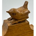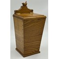 Bob "Wrenman" Hunter: An oak candlebox with signature wren to the top, lid with brass hinges, 24cm to lid, total height 31cm.