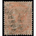 1877 4d Vermilion Pl.16. Fine used example of this very rare abnormal issue lettered EF of which only 11 examples have been recorded. Cancelled by two lightly struck London numerals, both plate numbers clearly visible. SG152. Cat. £35,000