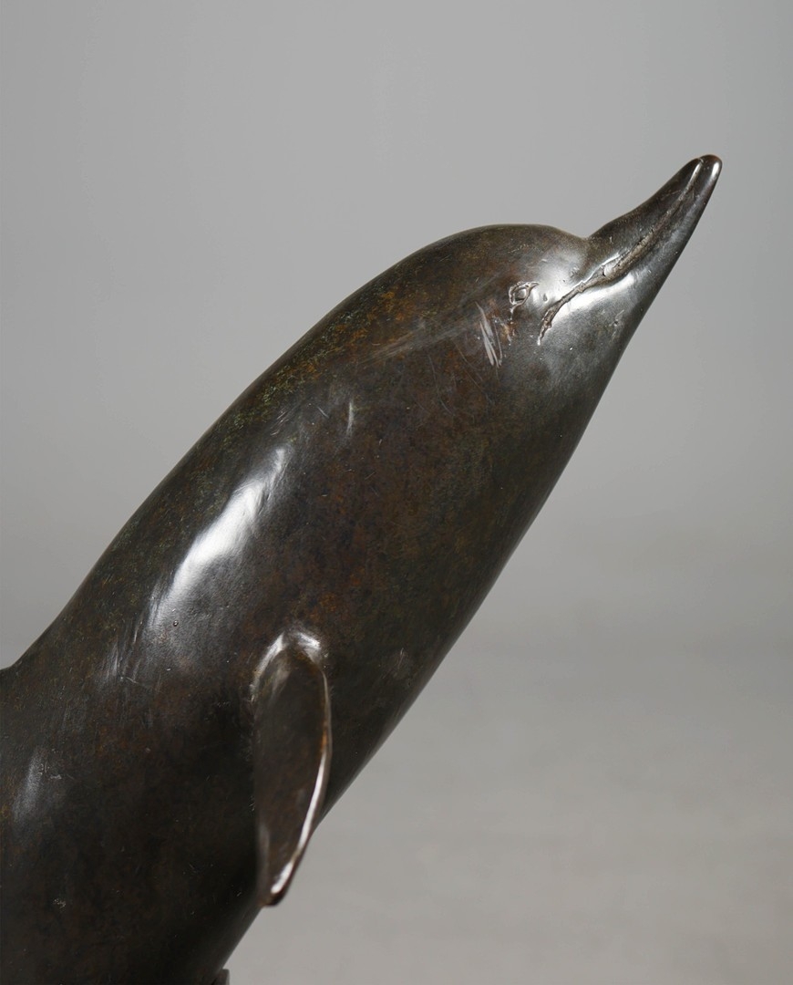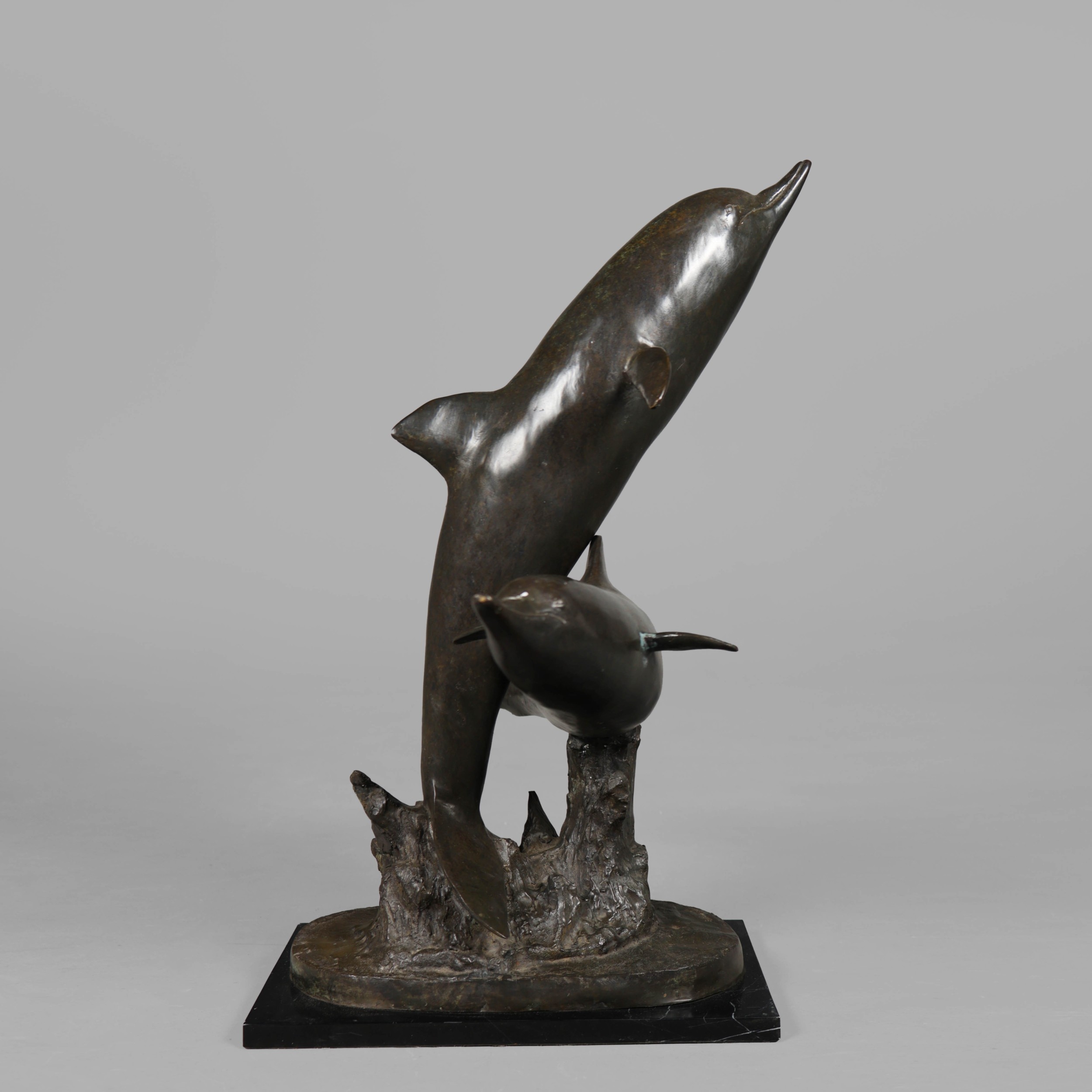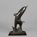 CONTEMPORARY SCHOOL STUDY OF LEAPING DOLPHINS. cast metal, 95cm H approx.