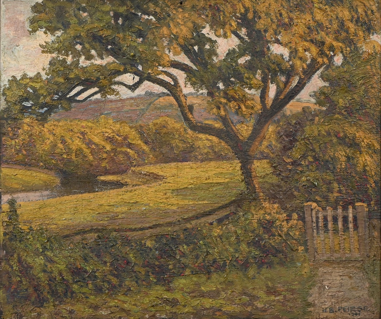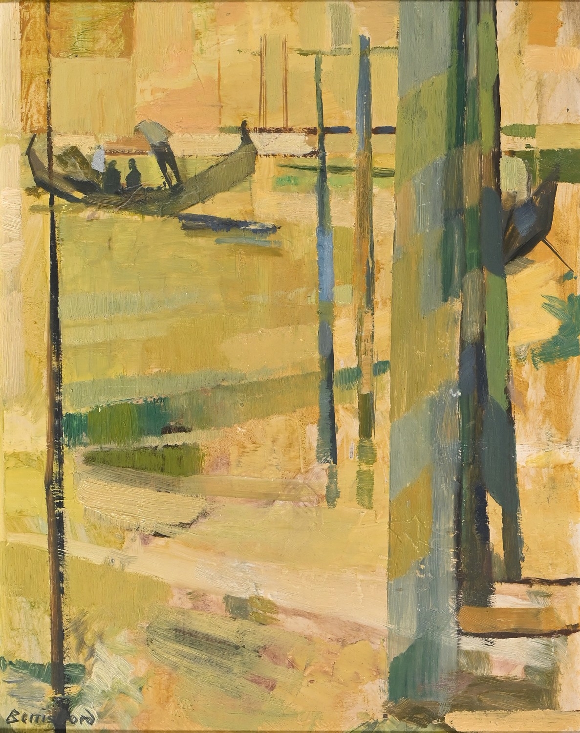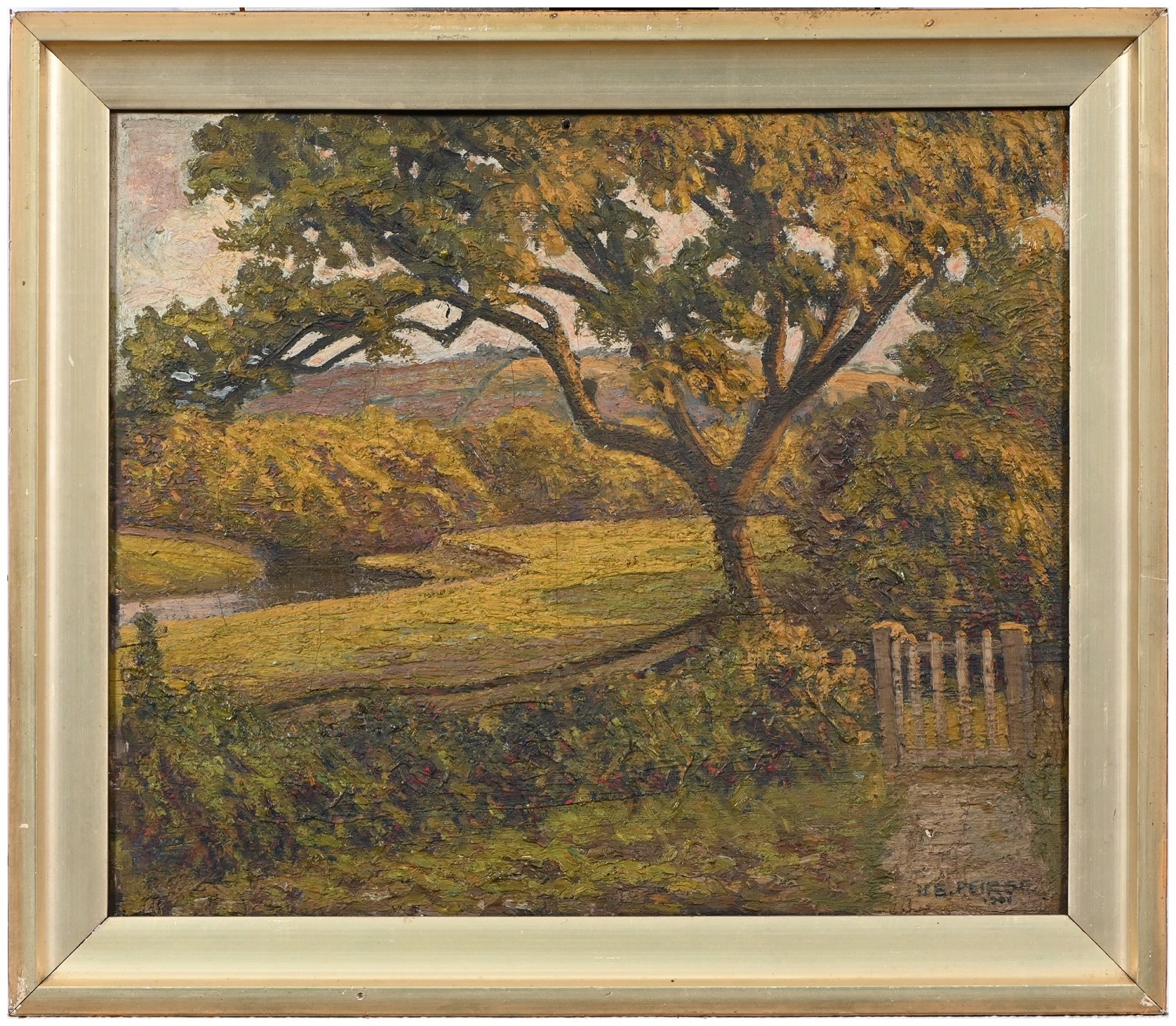 Peter Berrisford (1932-2003) - Venetian Gondola, signed, oil on board, 52 x 40cm, and H.E. Peirse - Impressionist Landscape, signed and dated 1901, oil on canvas, 29 x 34.5cm (2)
