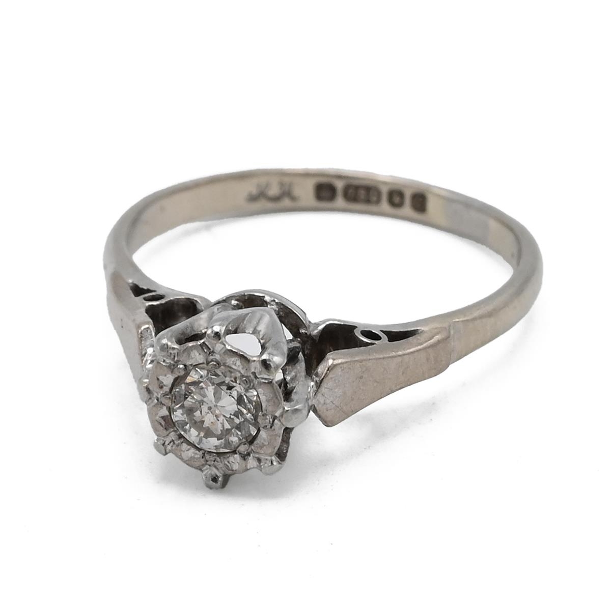 An 18ct white gold and single stone diamond ring, the brilliant cut diamond weighing approximately 0.25 carats, finger size K, 2.58 grams. (J)