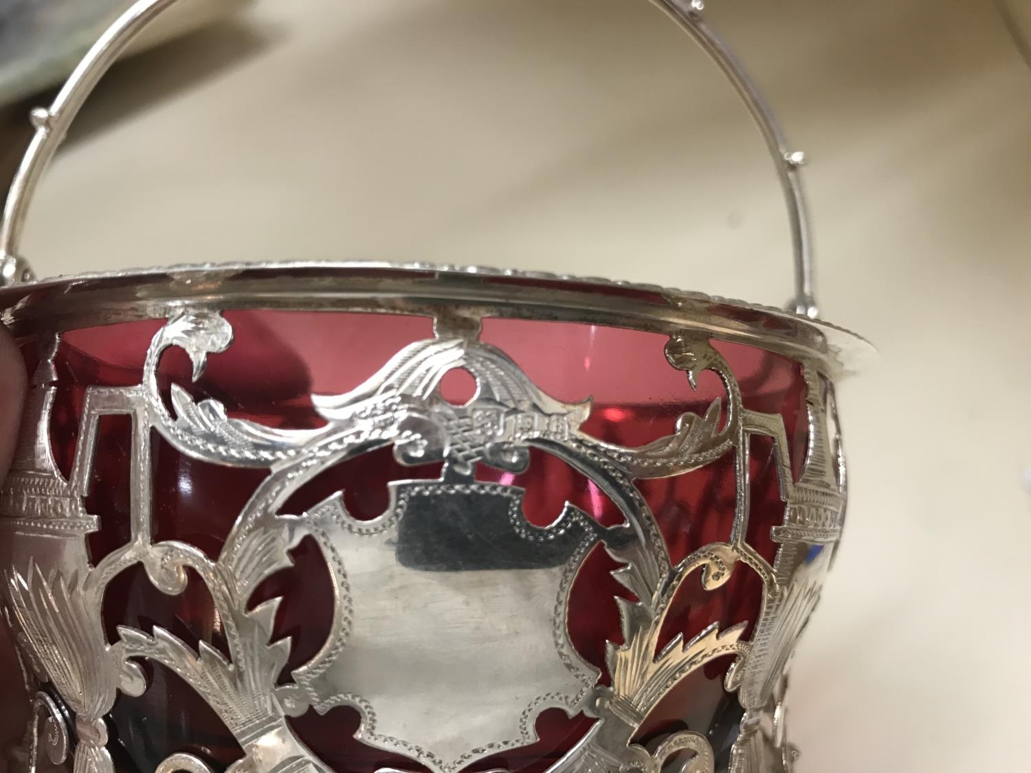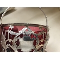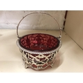 Hall Marked Silver Ornate basket with Cranberry liner by Gol...