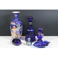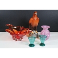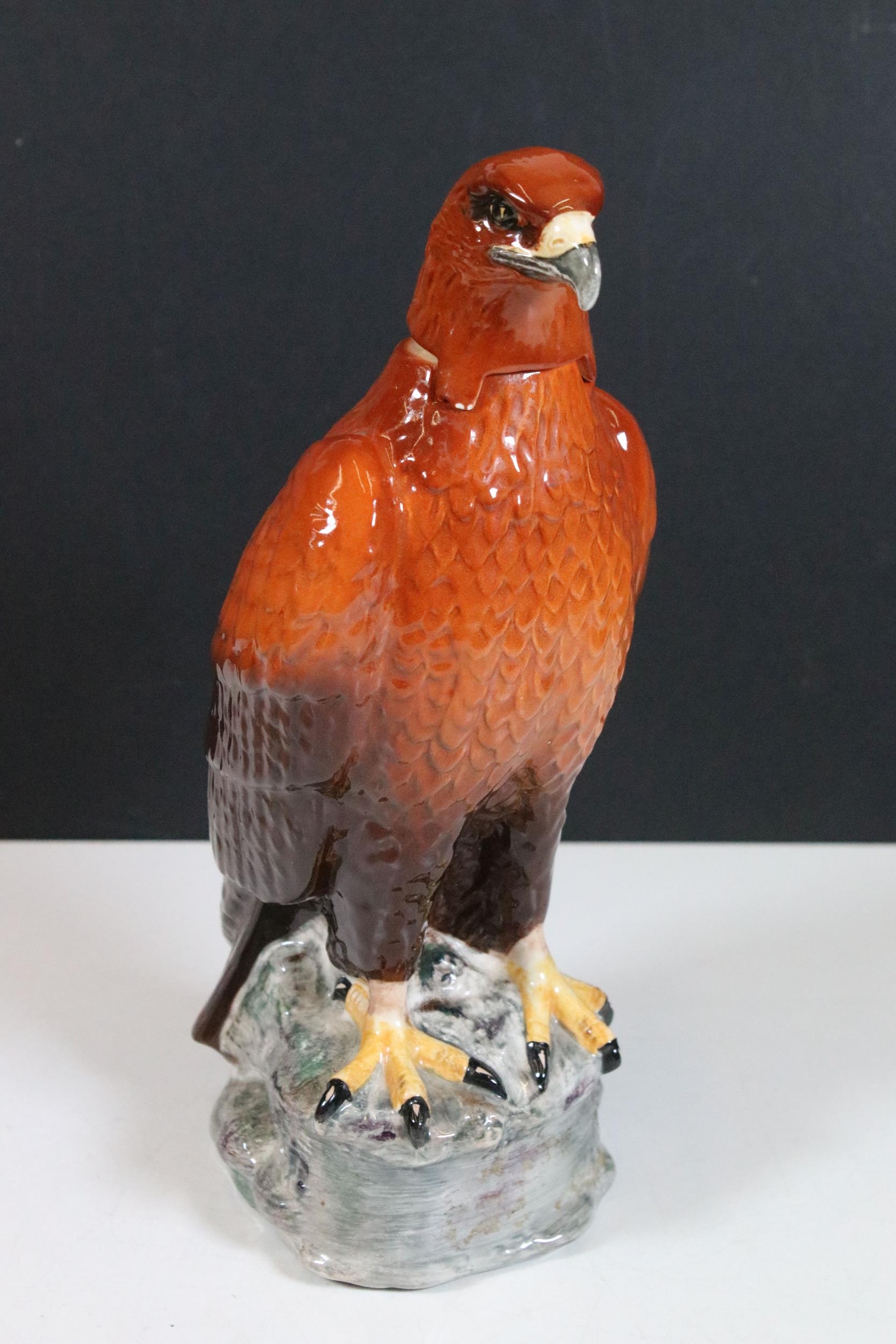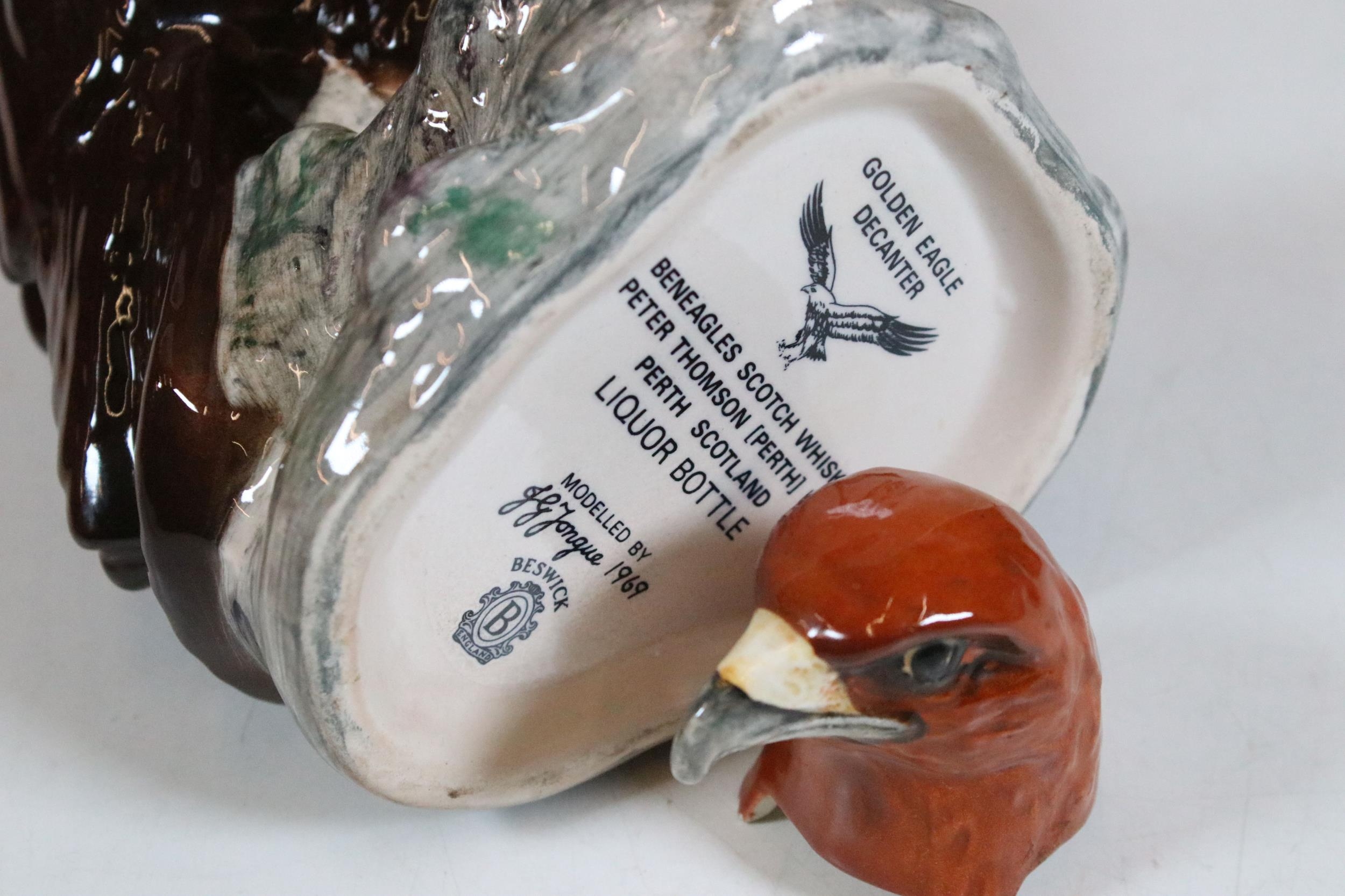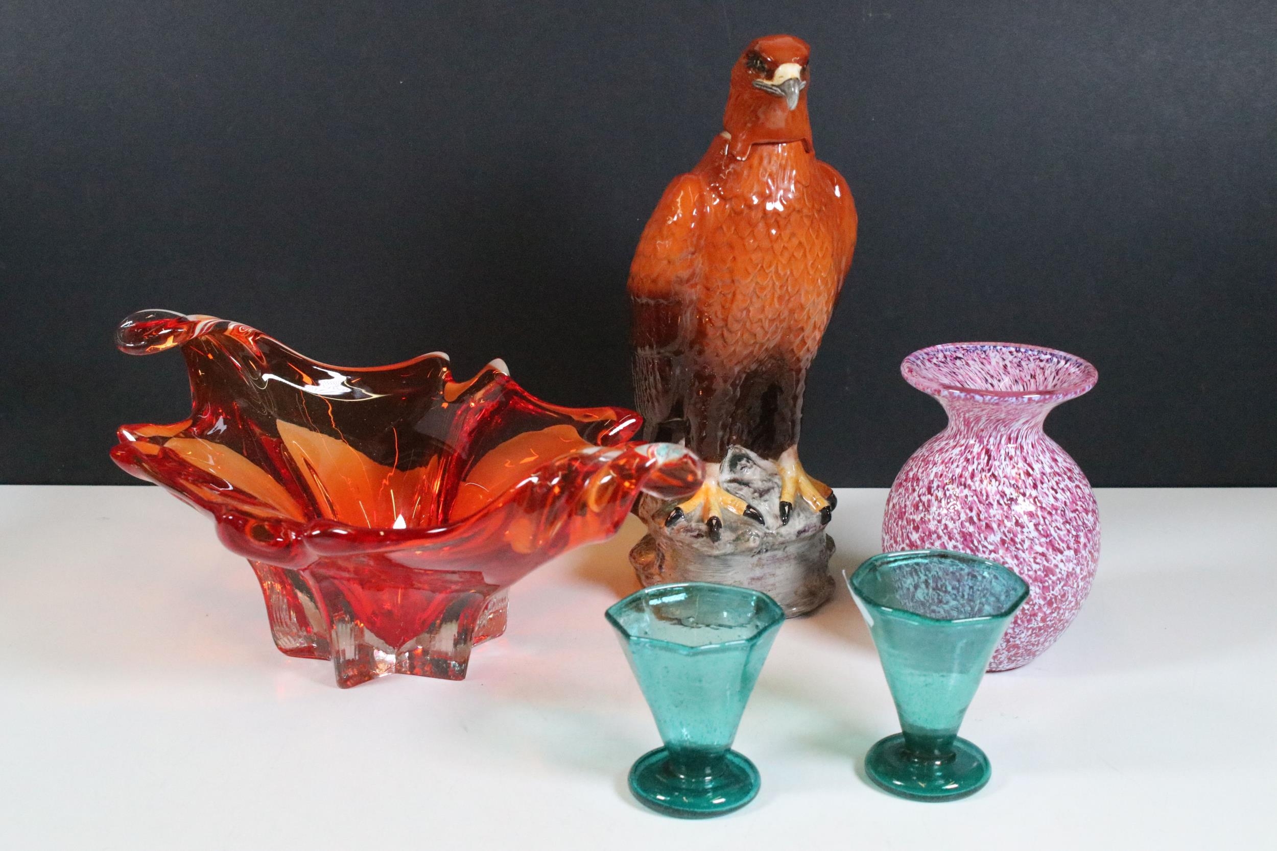 Beswick Eagle 'Beneagles Scotch Whisky' liquor bottle decanter together with a textured glaze bud vase, large glass center bowl and two octagonal small glass cup vases