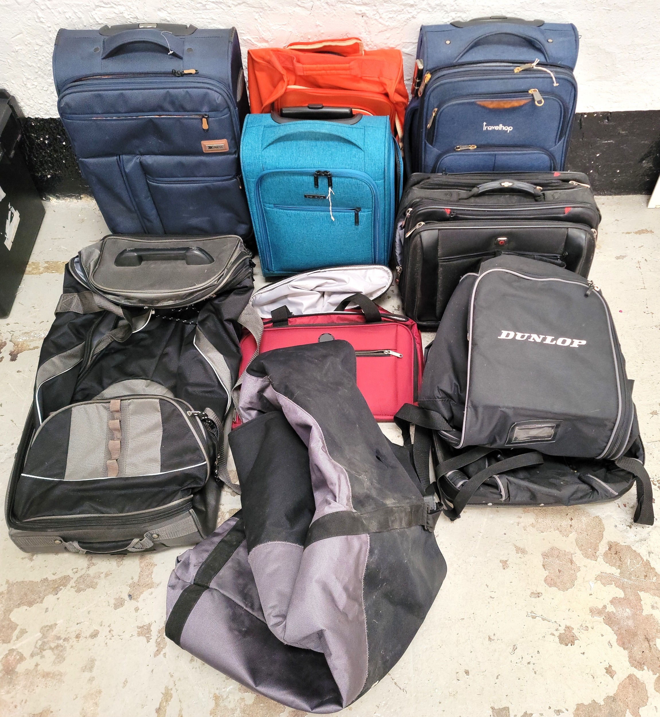 SELECTION OF THREE SUITCASES, ONE SKI BAG, ONE GOLF BAG, THREE HOLDALLS, AND A WHEELED LAPTOP BAG