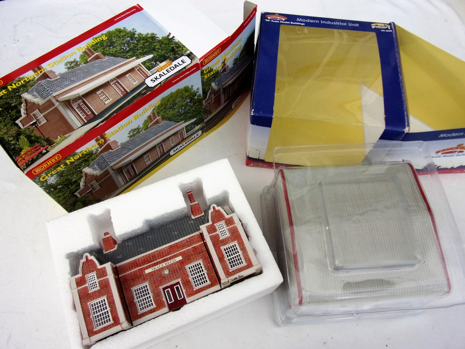 HORNBY SKALEDALE GREAT NORTHERN STATION BUILDING (1 CHIMNEY A/F), T/W BACHMANN 44-049 SCENECRAFT MODERN INDUSTRIAL UNIT, BOTH BOXED