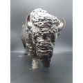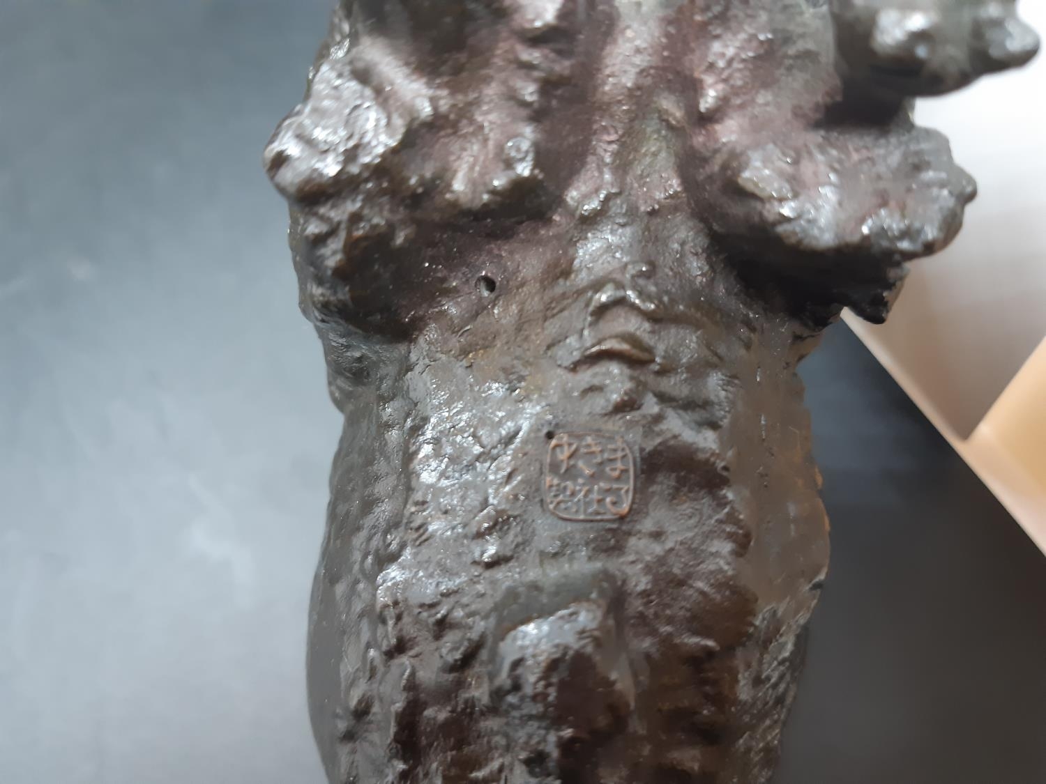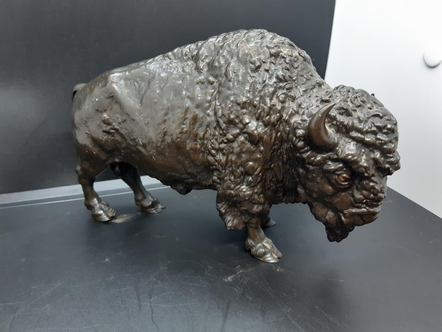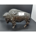 A well detailed 20th century Japanese patinated bronze sculpture of a bison with character mark to base - measuring approx. 14cm in height and 20cm in width