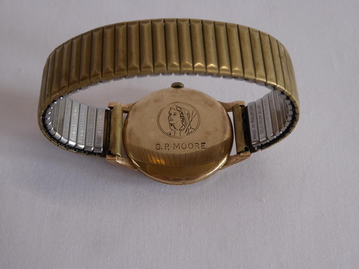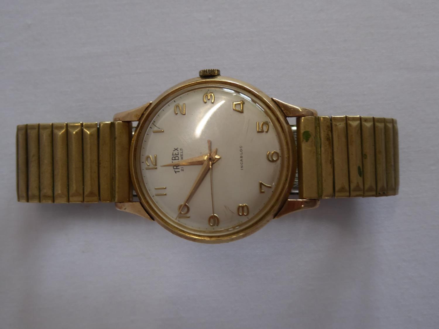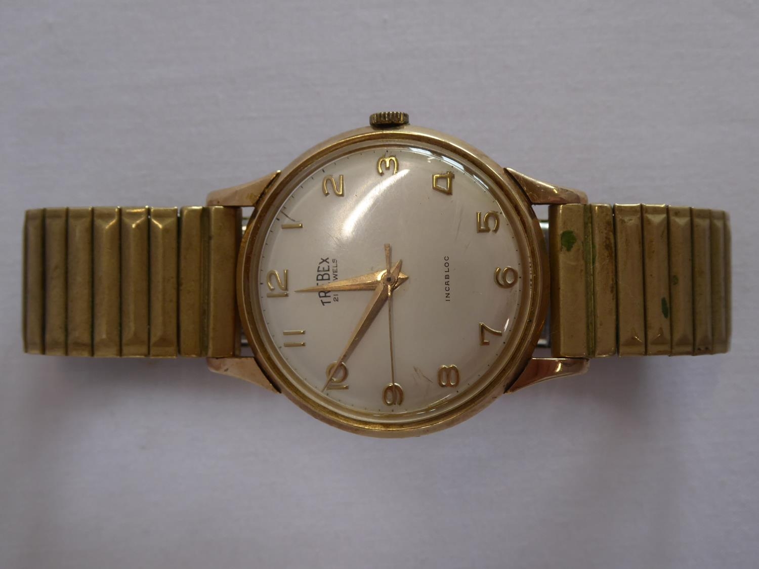 Trebex ?gold cased gent's wristwatch (engraved) on metal bracelet strap