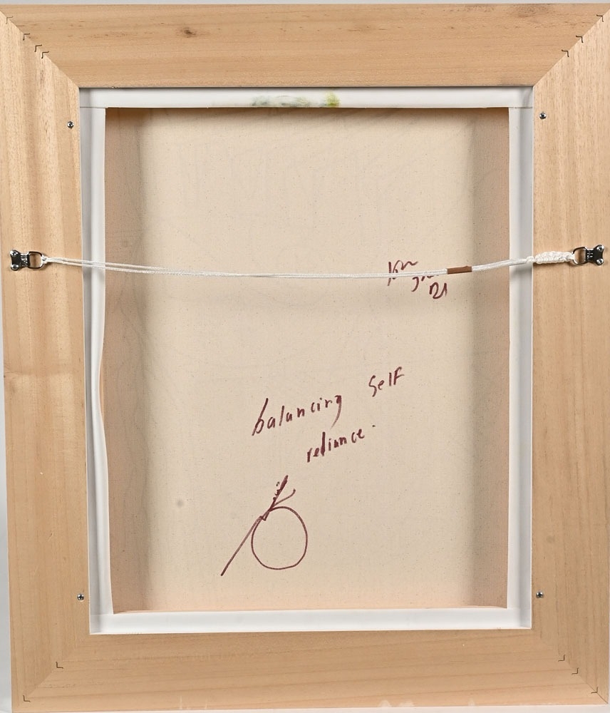 Abdullah Qandeel (born 1988), oil on canvas "Balancing Self Reliance". 51 x 62 cm, framed. NOTE: Abdullah Qandeel born 1988 in Jeddah Saudi Arabia, he lives and works in New York creating passionate and energetic large scale abstract paintings which he has exhibited across the world in exhibitions in Monte Carlo, New York and Jeddah. ARR.