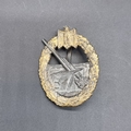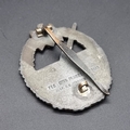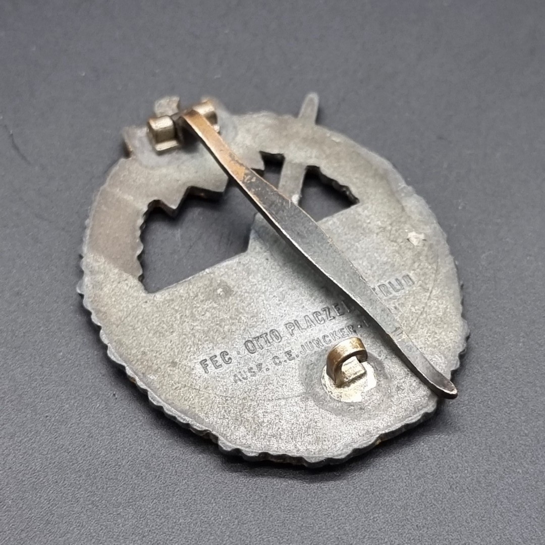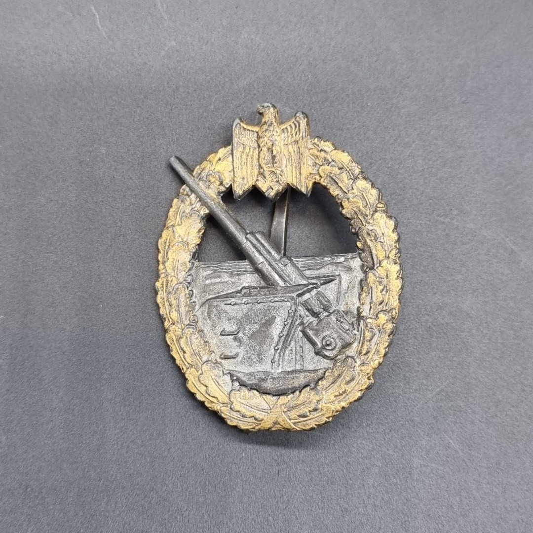 A WWII German WWII Kriegsmarine Coastal Artillery badge, marked 'Fec Otto Placzek Berlin Ausf C E Juncker Berlin', 54mm high.