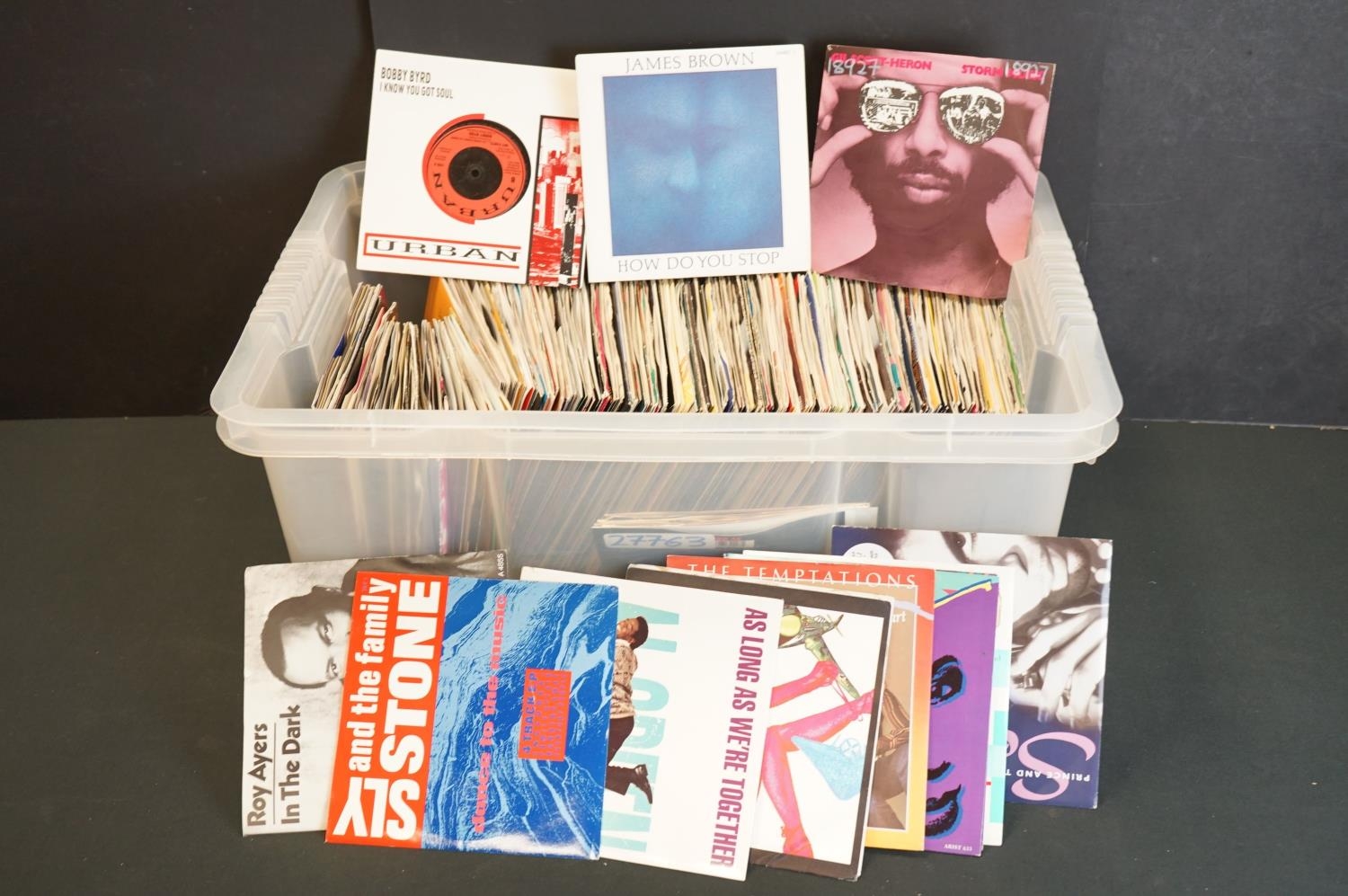 Vinyl - Over 150 Northern Soul, Soul, Funk, Boogie, Pop 7" singles including Bobby Byrd, James Brown, Gil Scott Heron, Sly & The Family Stone, Roy Ayers, George Clinton, The Temptations, Aretha Franklin, Prince, Ben E King. Mainly in picture sleeves (Ex), Vinyl Ex. From the Granada Television / Yorkshire Television music library, therefore most have library stickers/numbers to sleeve or vinyl or both.