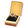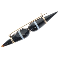 Victorian Carved Sardonyx Black Enamel Split Pearl Mourning Ring with Box, 4.9g