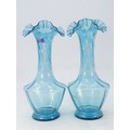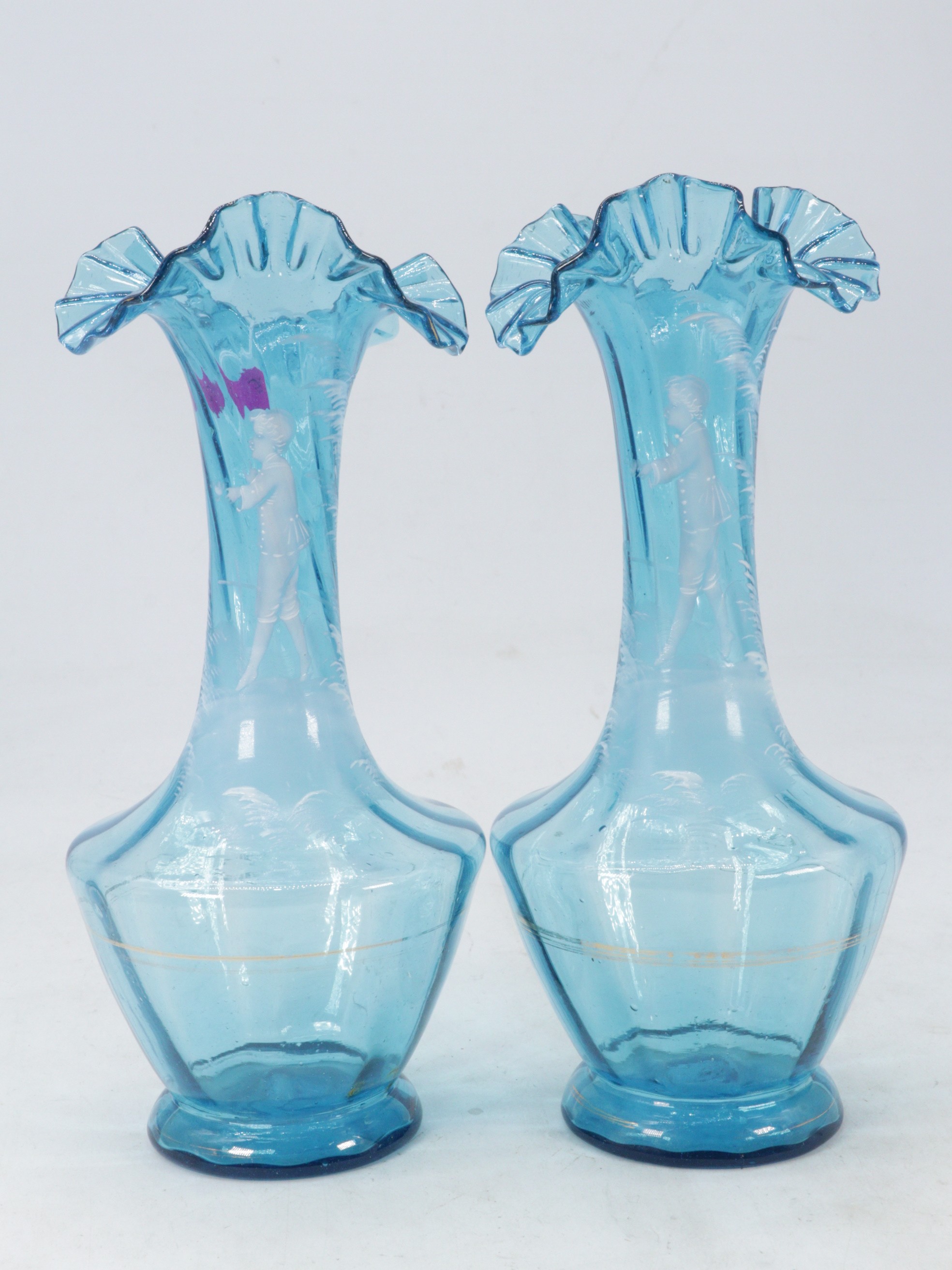 Pair of blue blown glass vases Mary Gregory style figures (approx. 27cm)