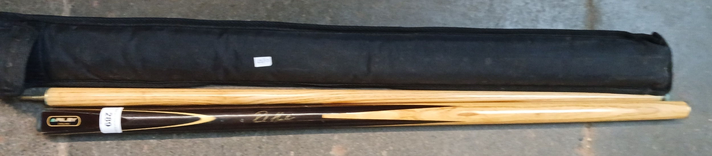 A 2 piece Riley snooker cue bearing the signature Paul Hunter